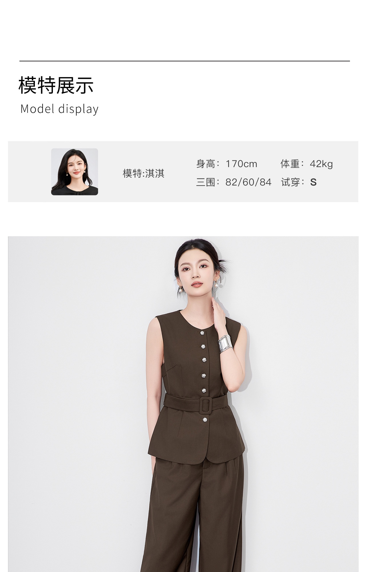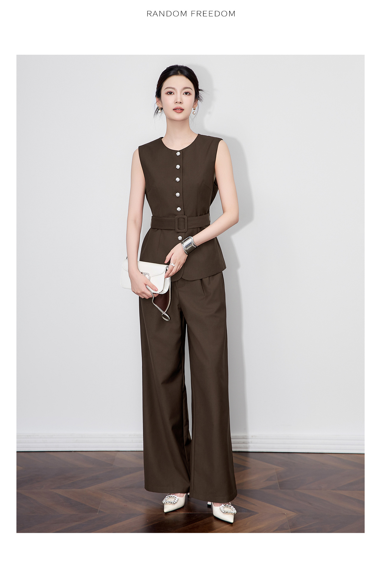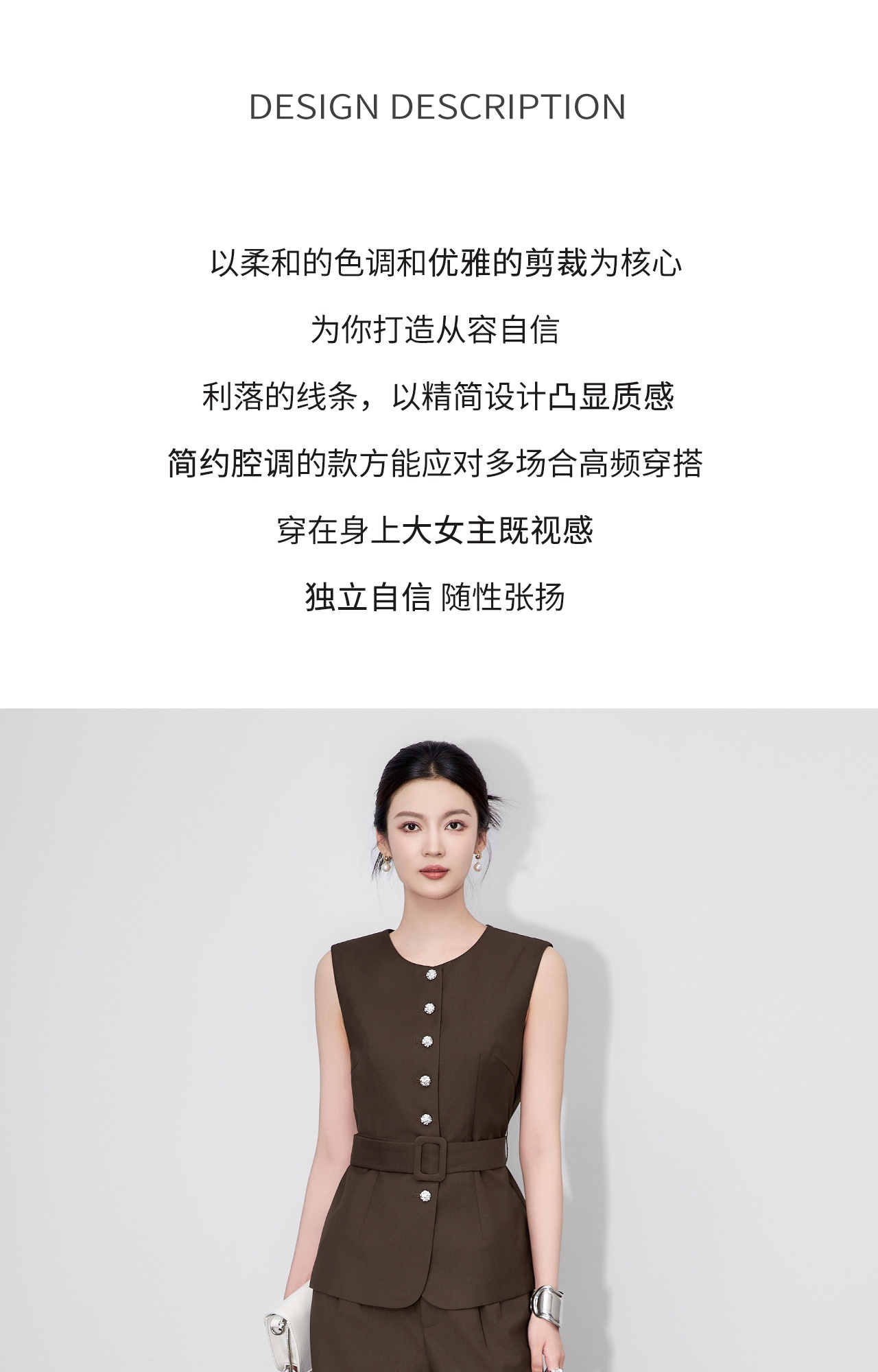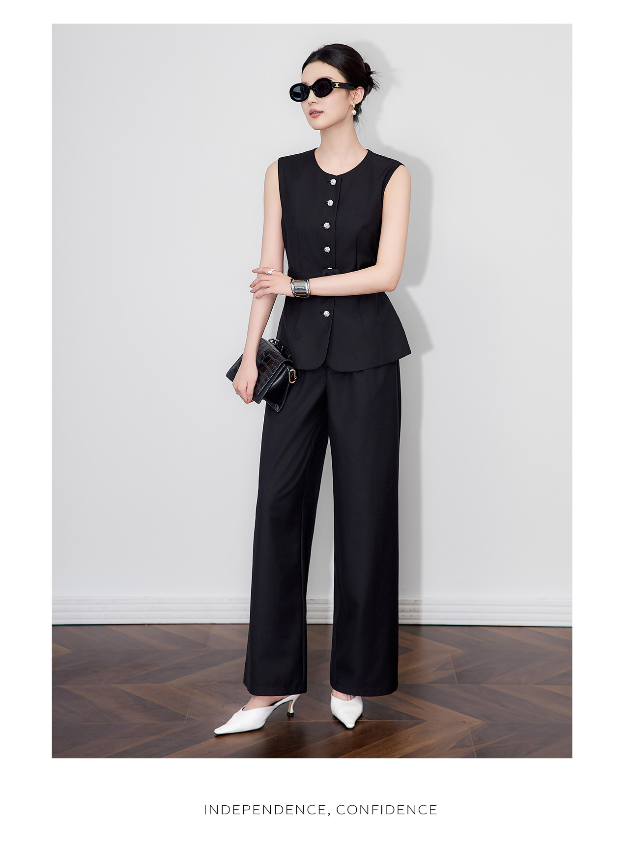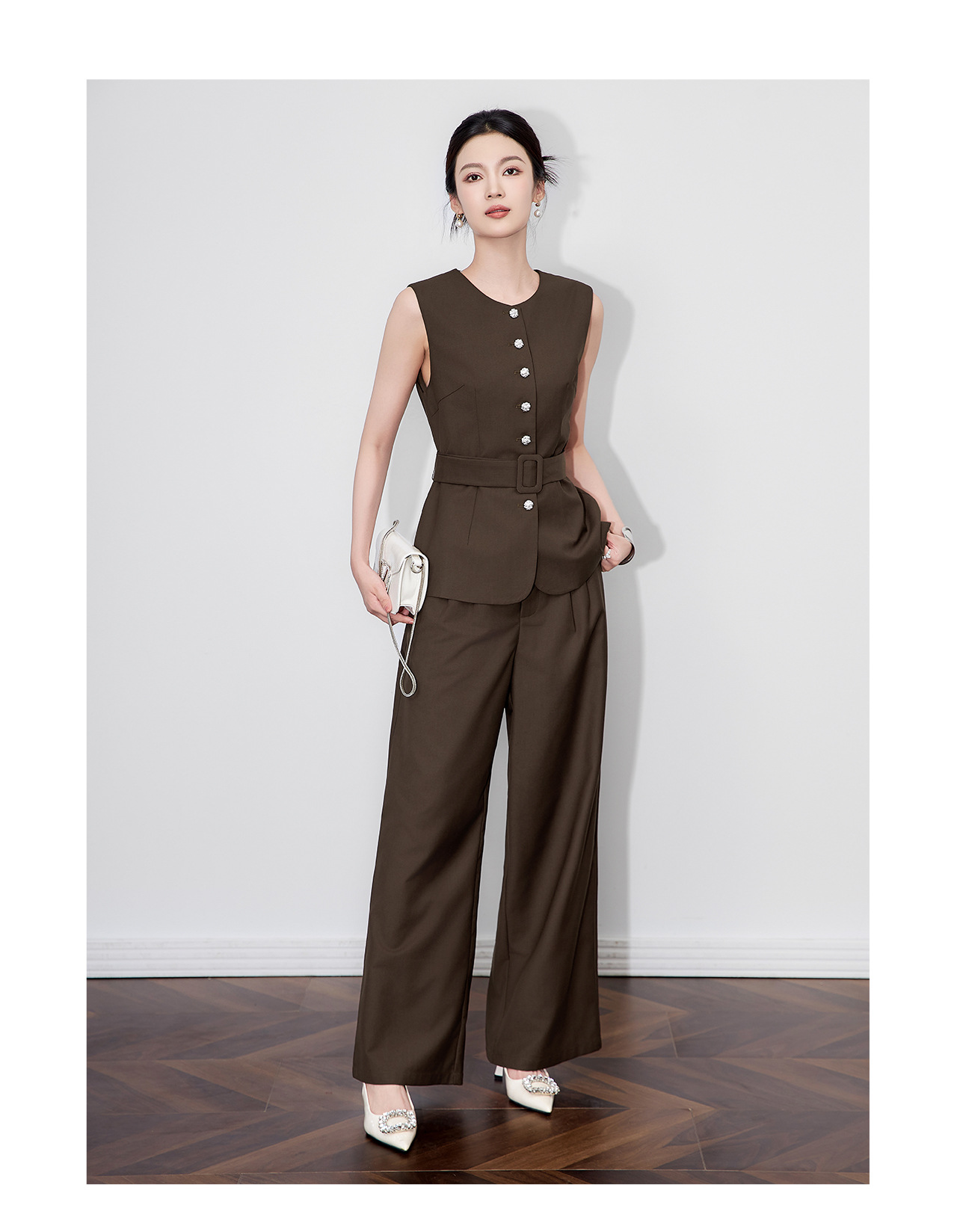 「高货wl」全新升级【铂金会员413/天猫559/差价146】(99249)洛诗琳秋季气质老钱风银扣马甲优雅通勤直筒阔腿裤两件套