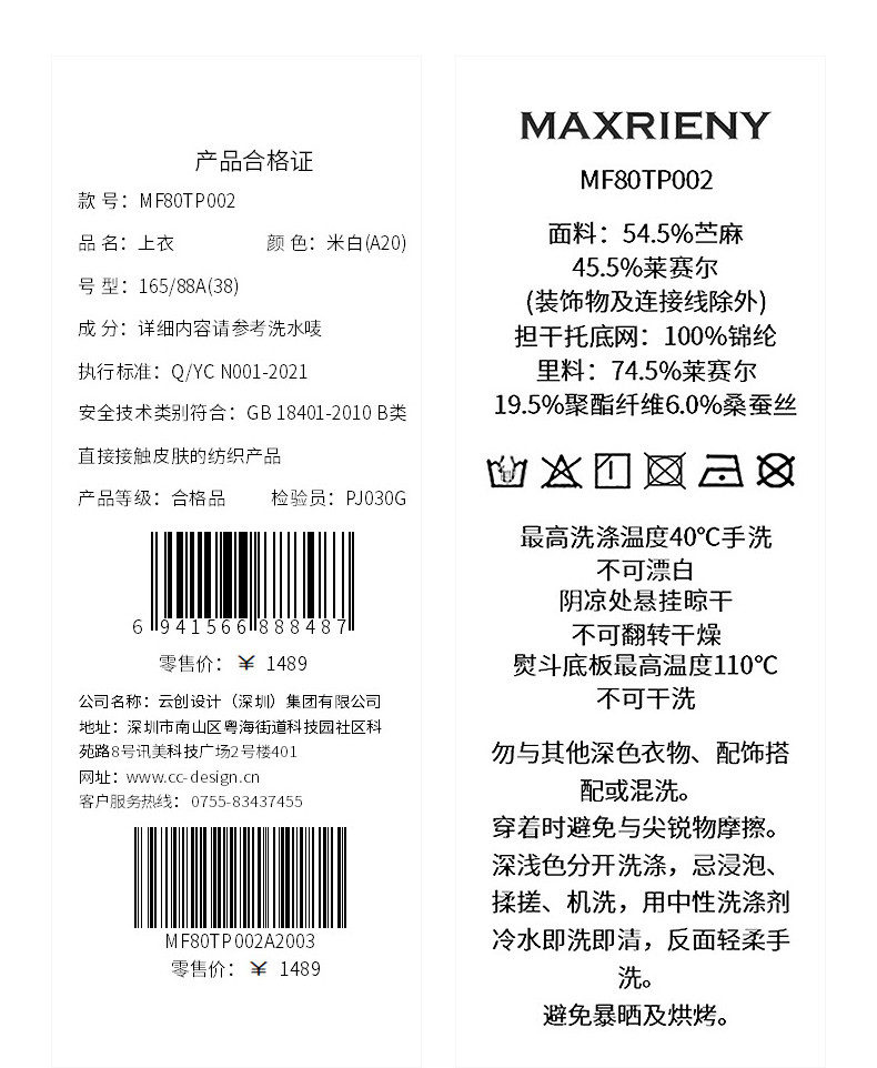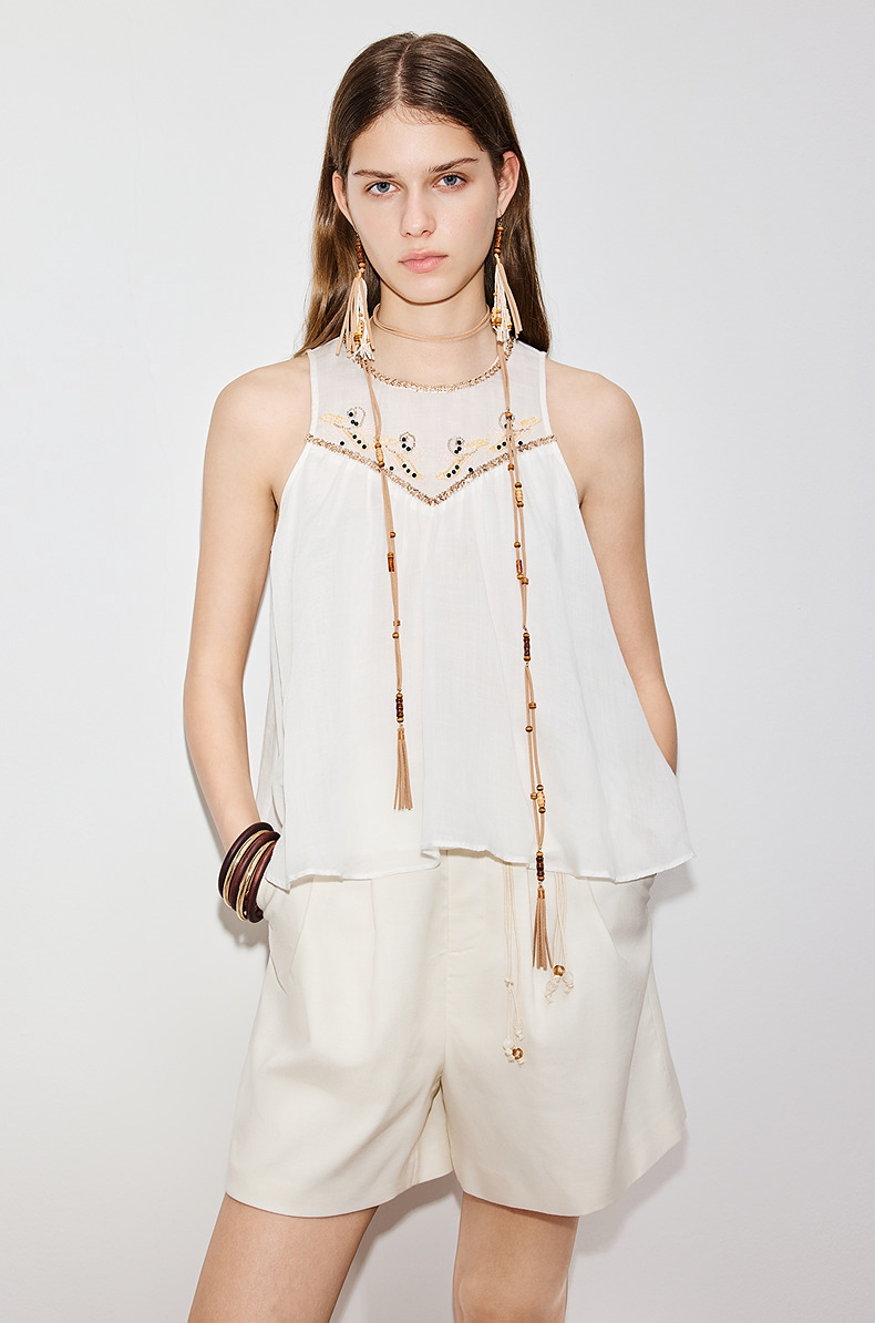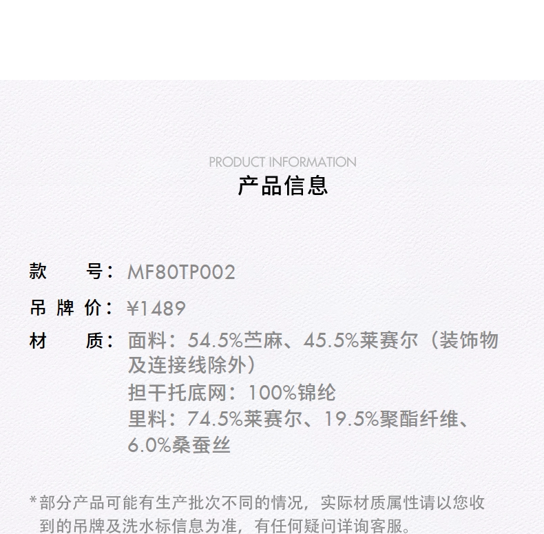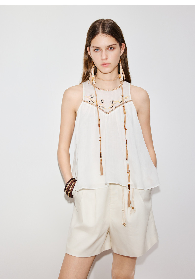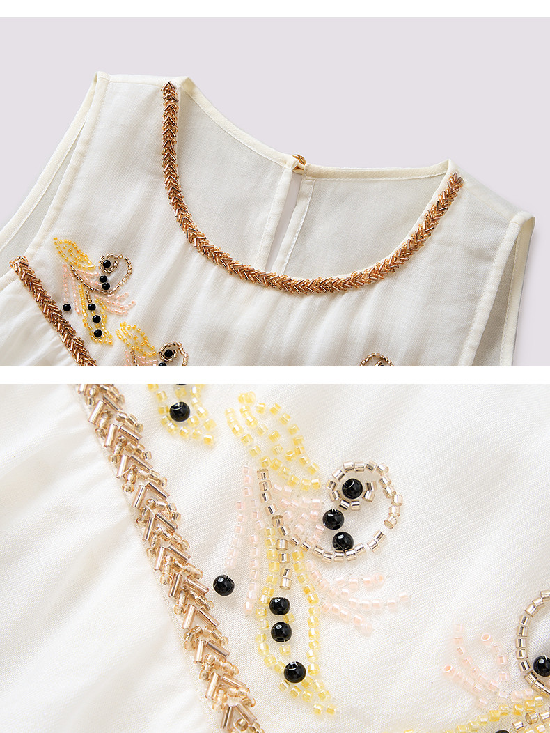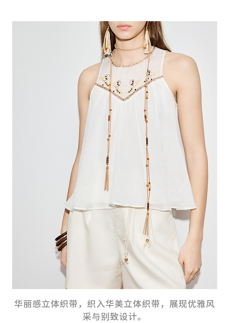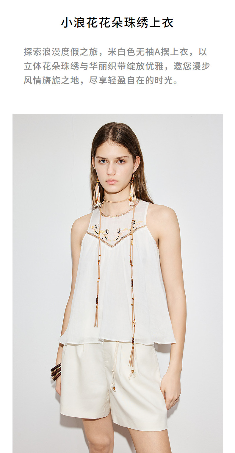 MAXRIENY米白色衬衫2026年春季新款立体花朵珠绣无袖苎麻薄款上衣(货号:MF80TP002)