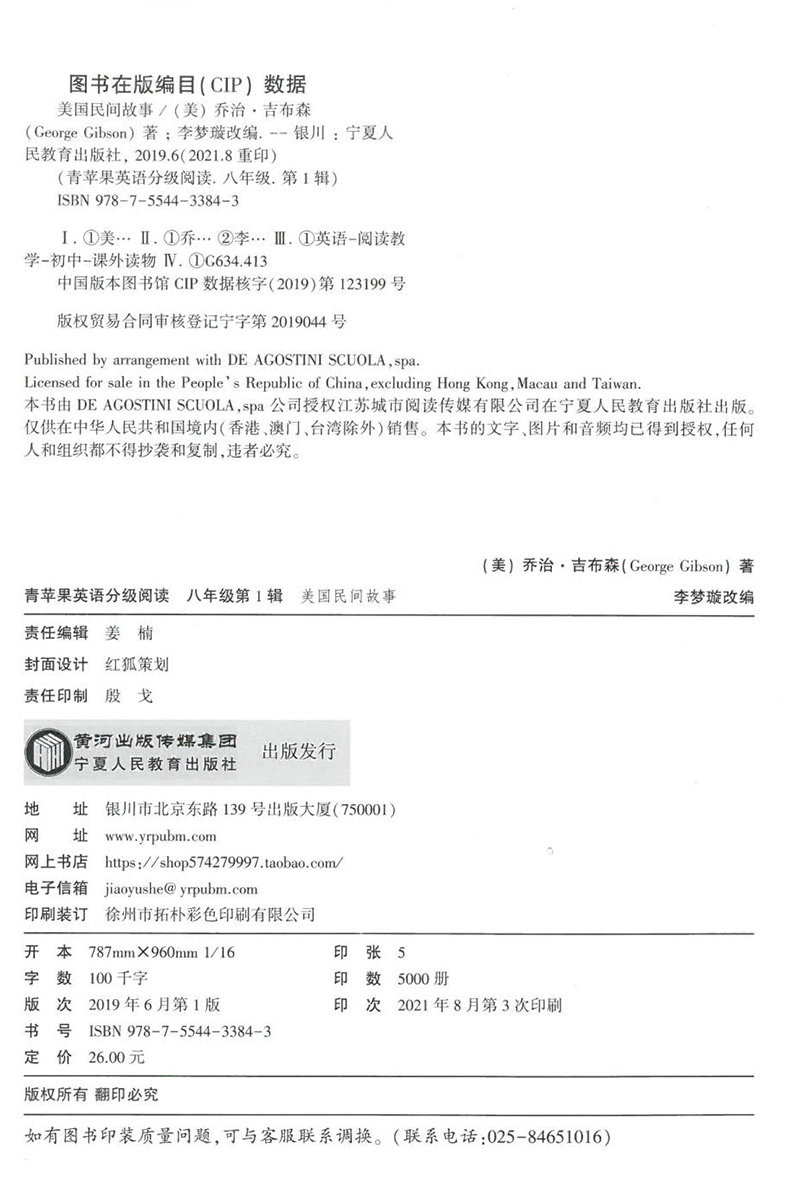 八年级上册全7本 套装 青苹果英语分级阅读 美国民间故事等