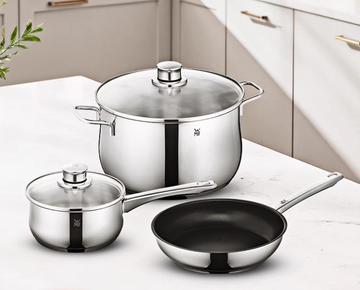 德国WMF无涂层不锈钢平底锅煎锅三件套