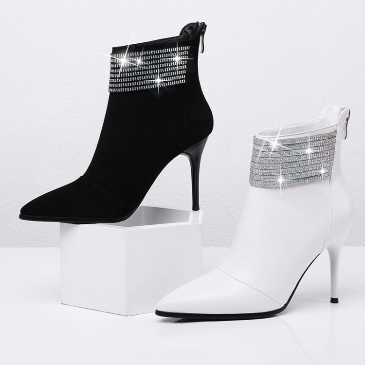 OLD-92B-25羊猄皮水钻细跟裸靴尖头高跟短靴