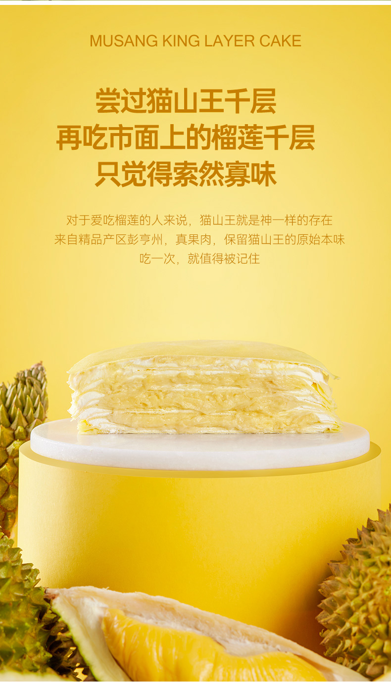 【榴芒一刻】猫山王榴莲千层500g果肉金黄层层爆浆 GH