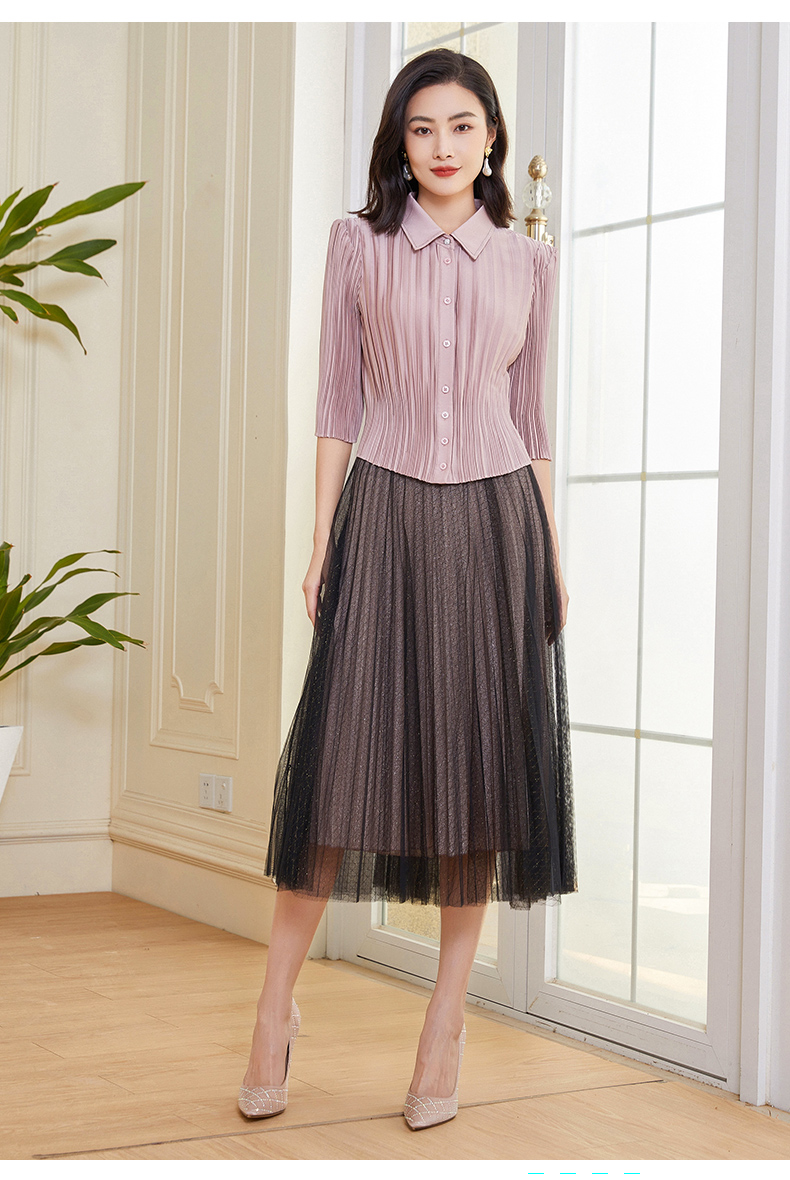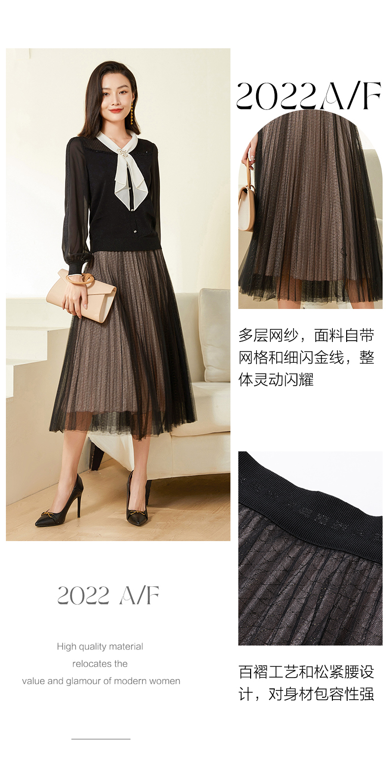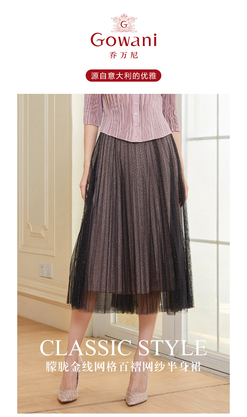 乔万尼半身裙新款高腰雪纺轻奢高级感网纱法式半裙EF3D888
