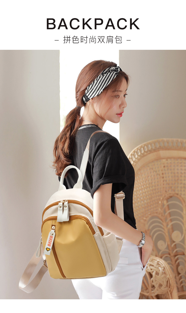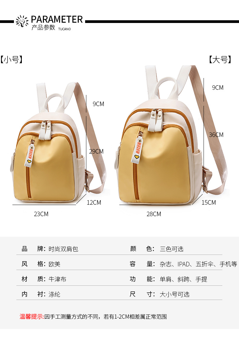 雀说包包牛津布双肩包新款背包女超火时尚大容量撞色书包女包AL1625