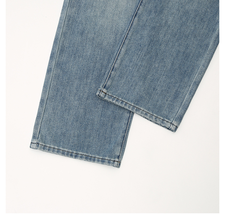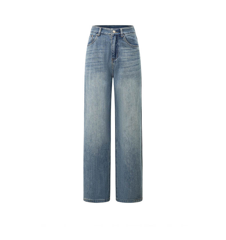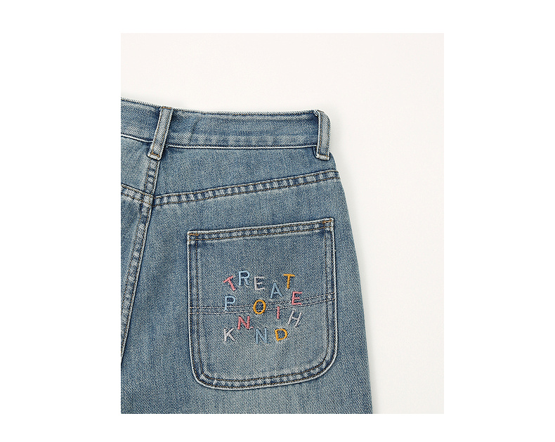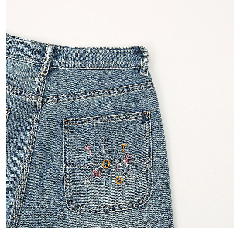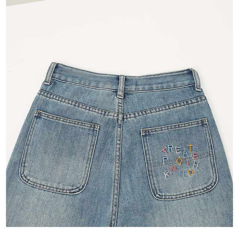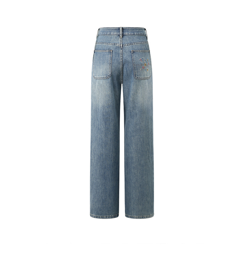 会员福利【单扣袢+撞色刺绣】拉夏贝尔/La Chapelle彩色字母刺绣牛仔裤高腰显瘦百搭宽松长裤