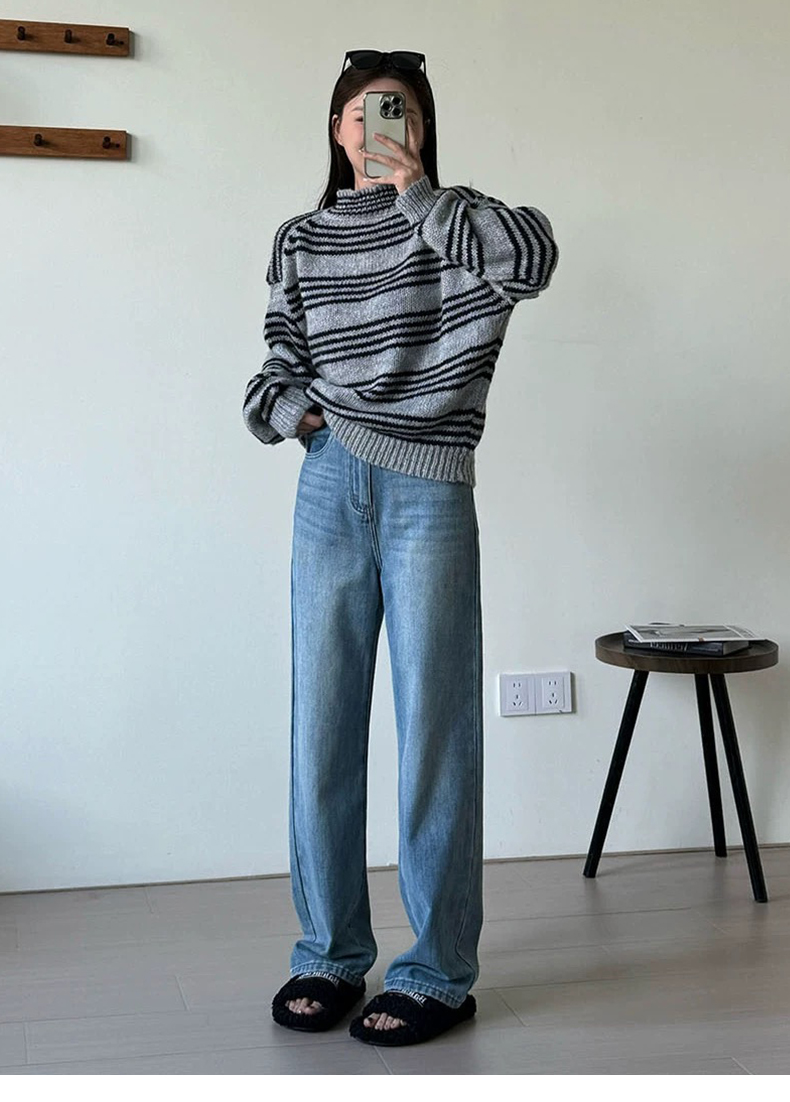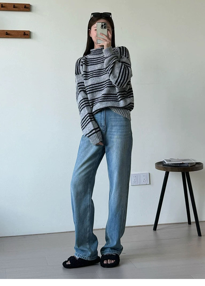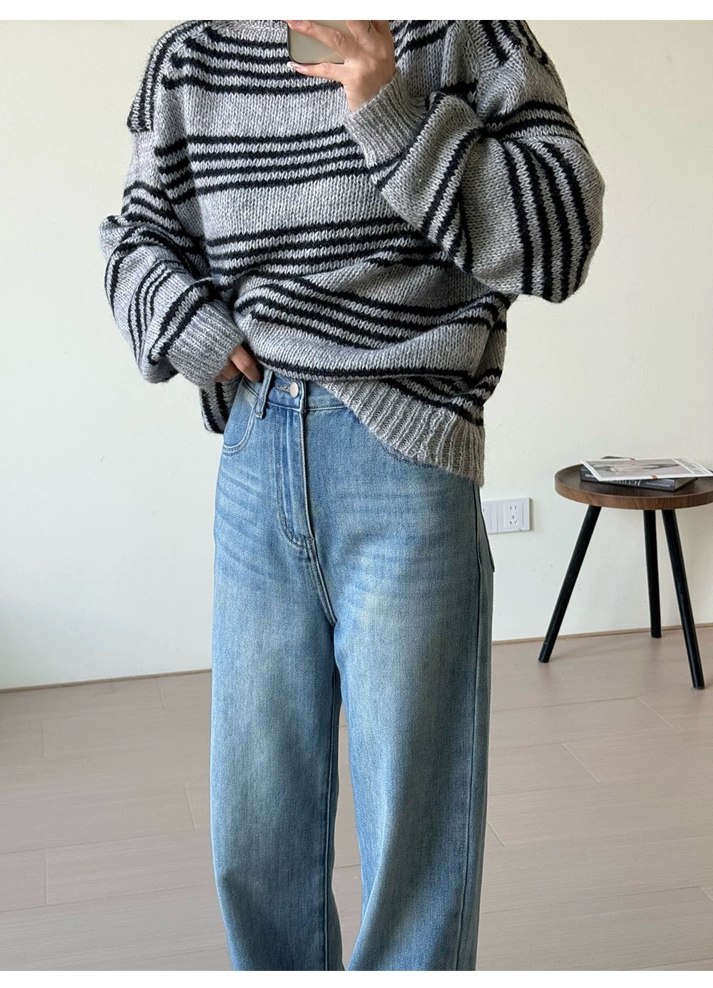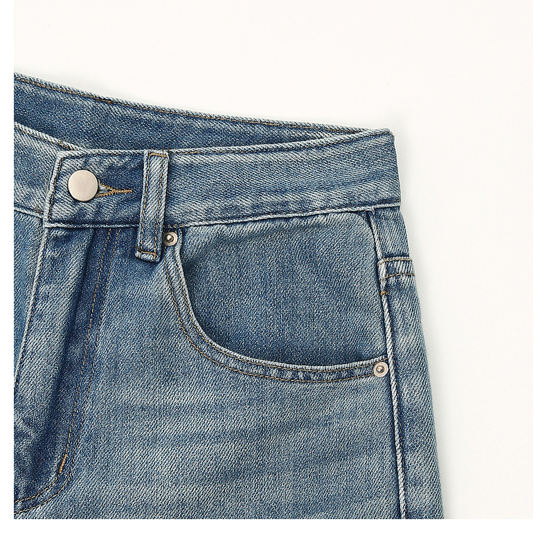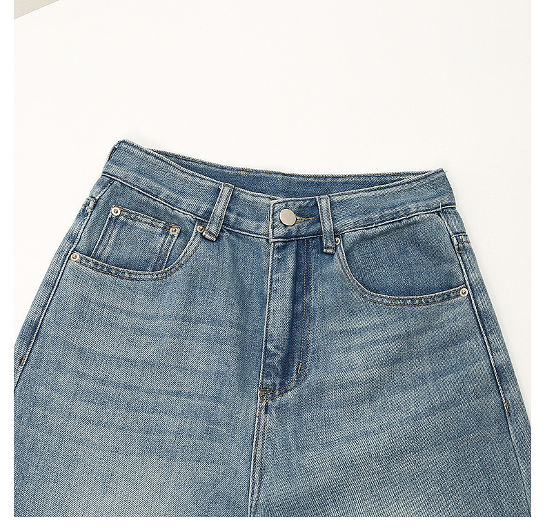 会员福利【单扣袢+撞色刺绣】拉夏贝尔/La Chapelle彩色字母刺绣牛仔裤高腰显瘦百搭宽松长裤