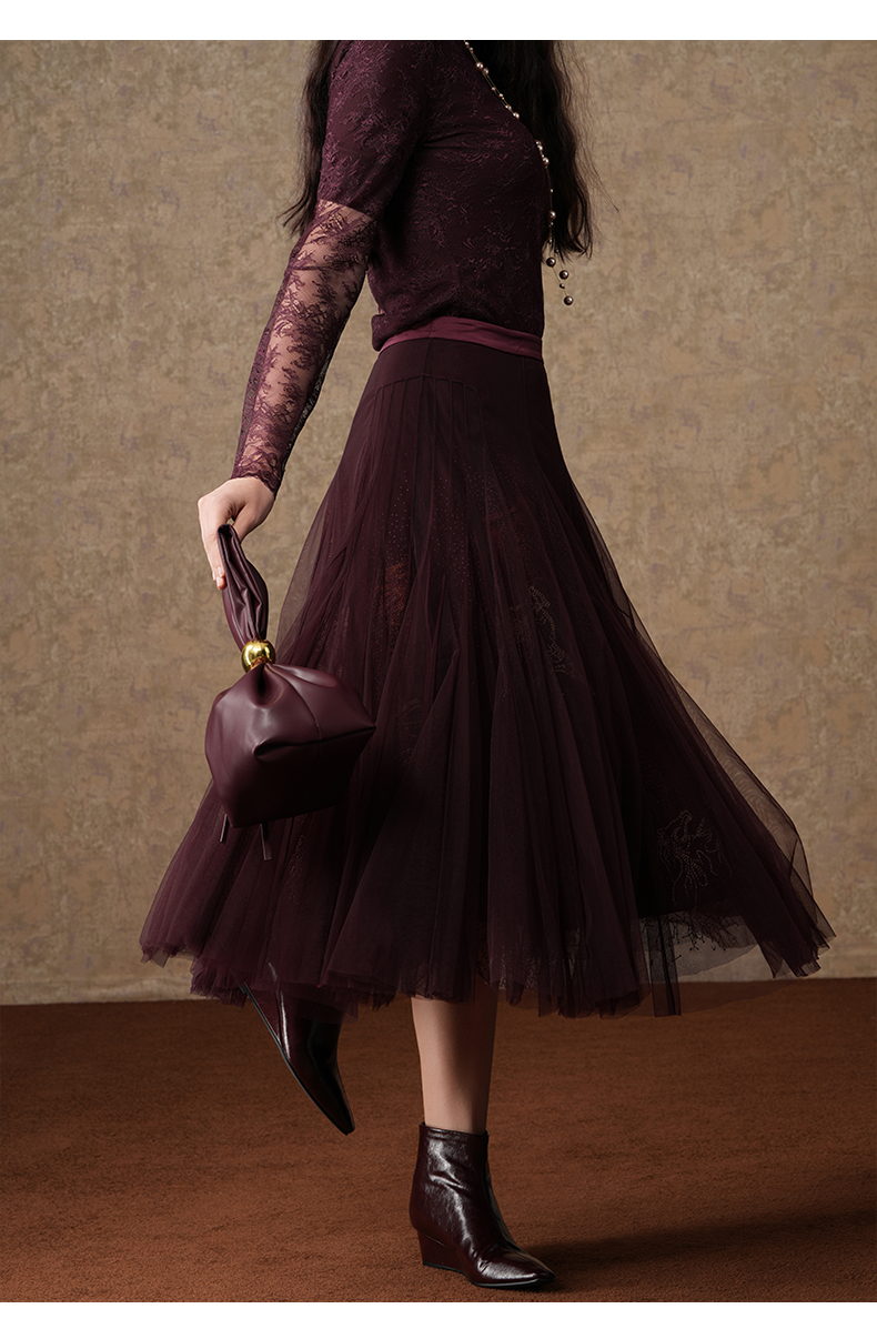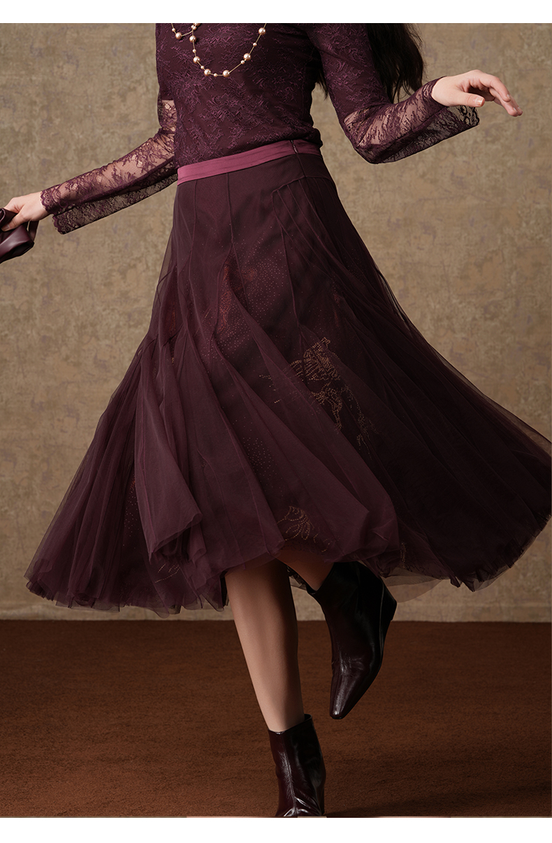 乔万尼网纱半身裙a字半裙百搭减龄设计EM4D525