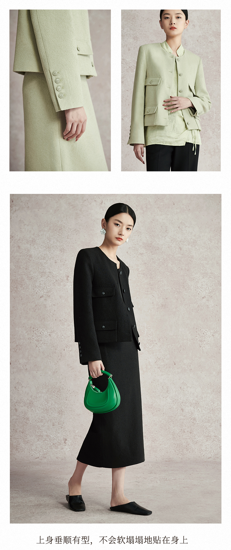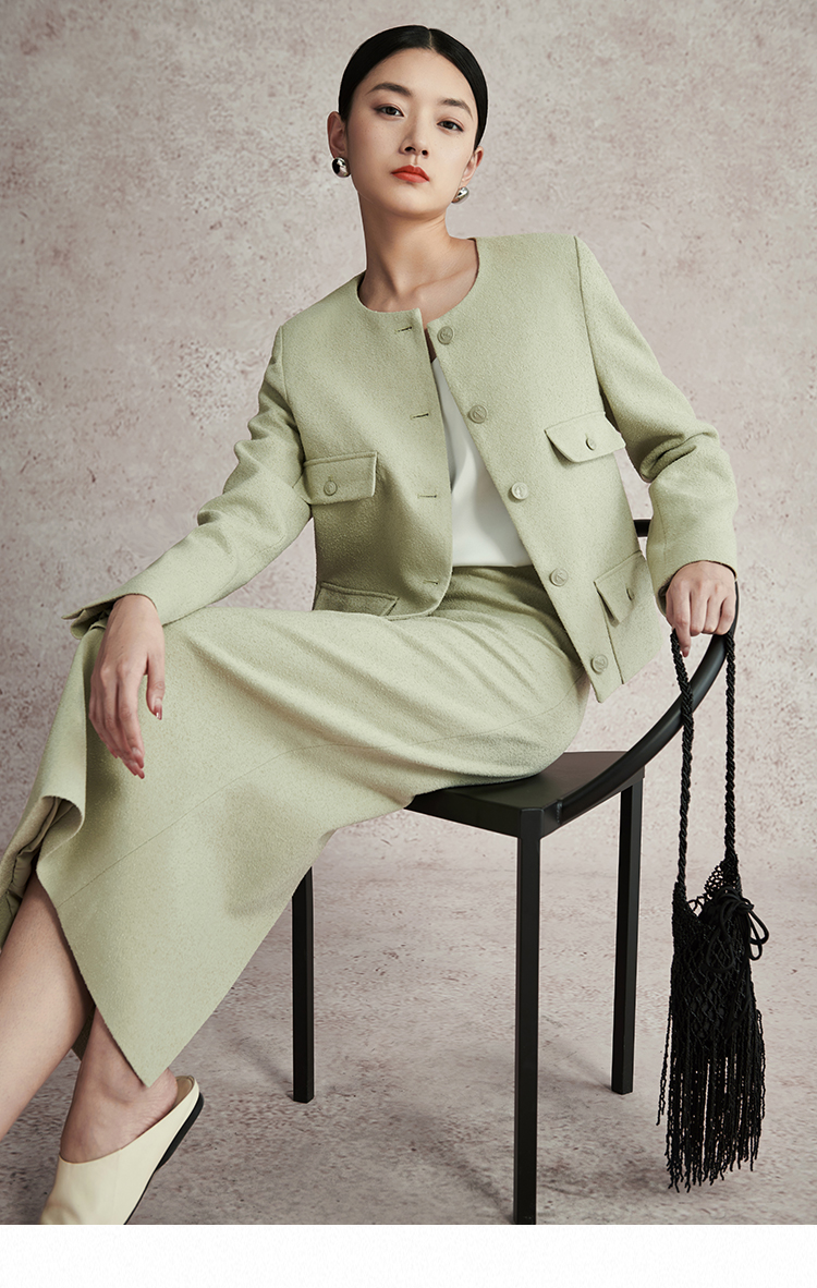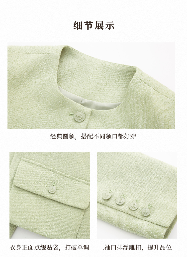 璞宿PUSU2023春季新款小香风短外套女垂感修身风铃裙简约时尚套装