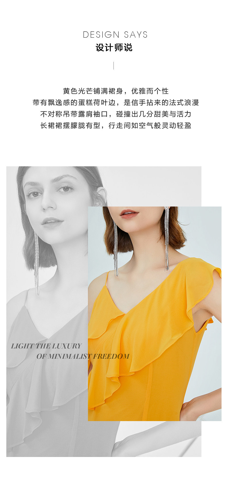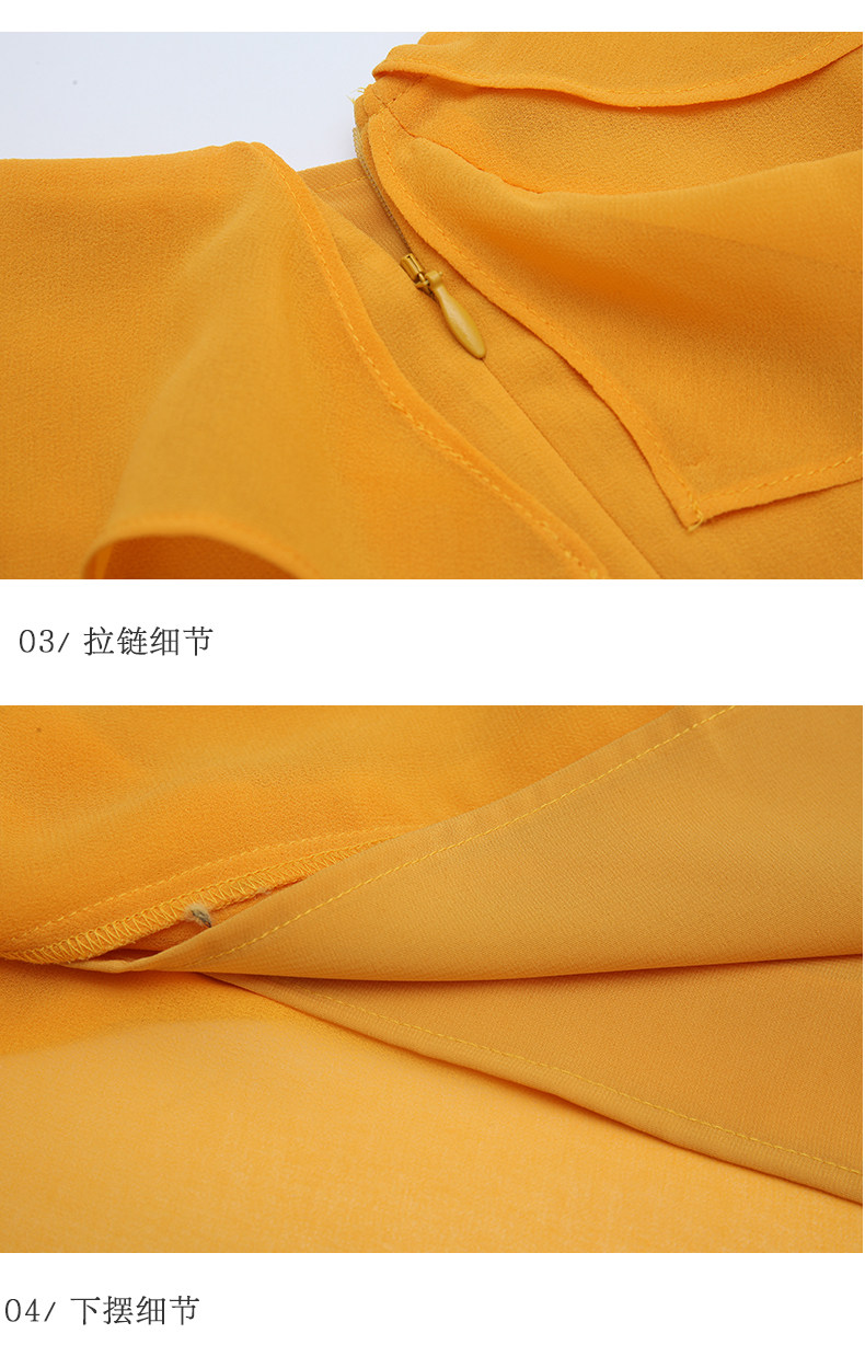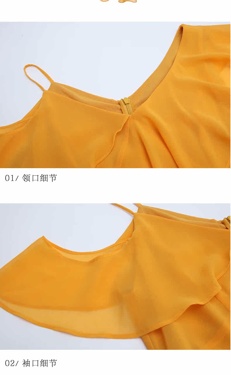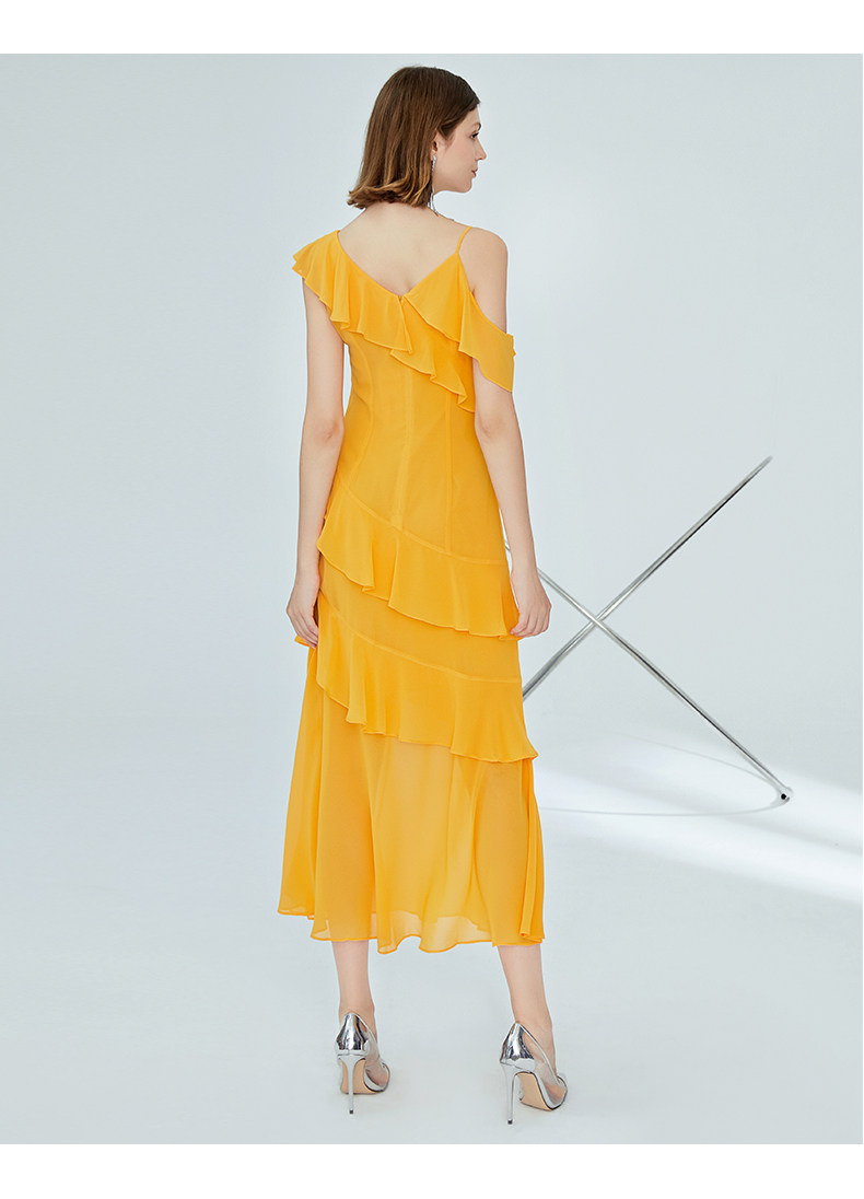 VIMAGE纬漫纪女装夏季新品蛋糕荷叶边斜肩雪纺连衣裙长款薄V1177708