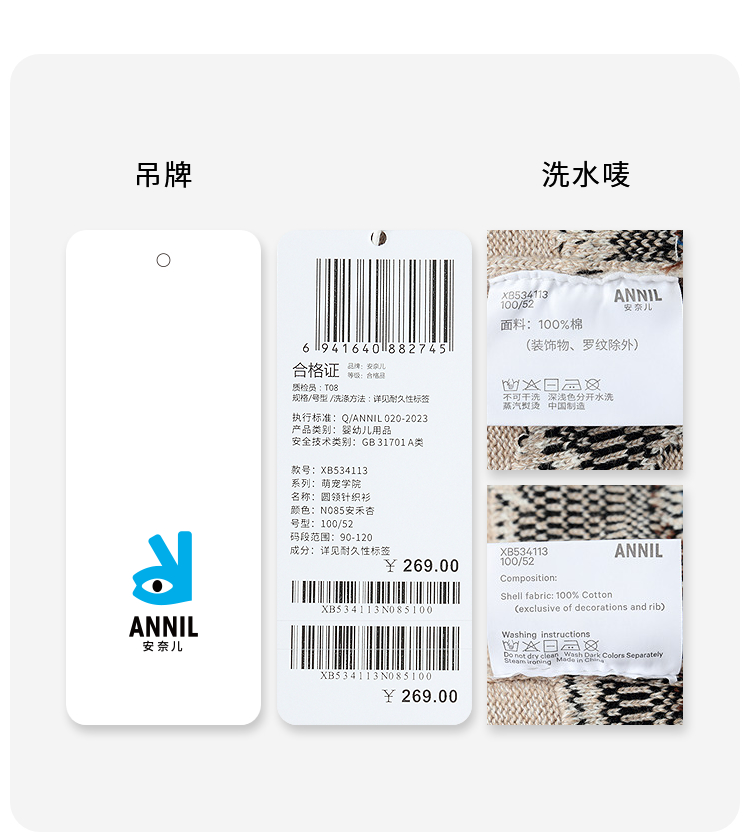 【实体店同款】男童圆领针织衫秋季新款安奈儿童装XB534113