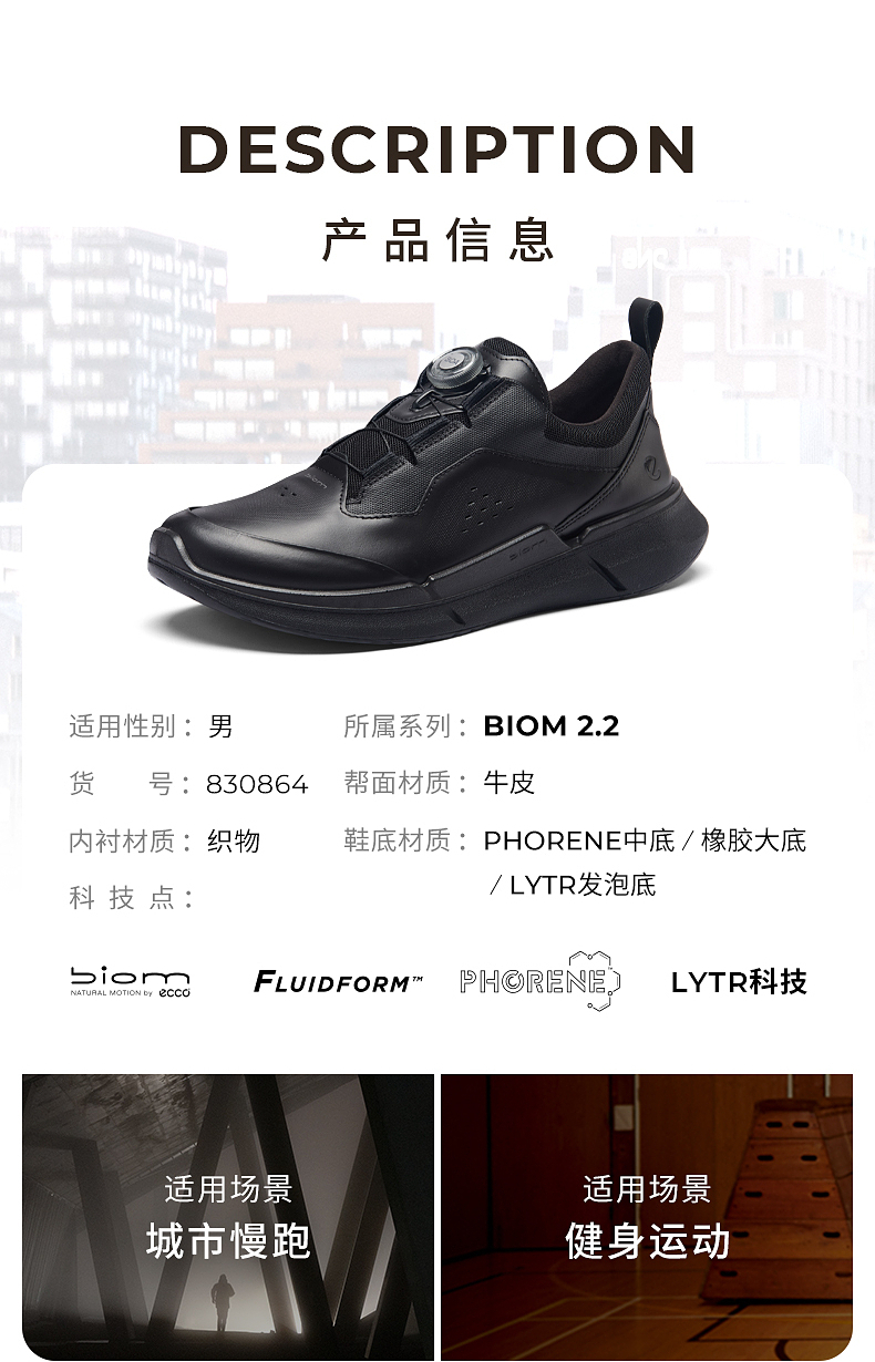 ECCO爱步 男士运动鞋 25年新款免系带健身男鞋 健步BIOM2.2 830864