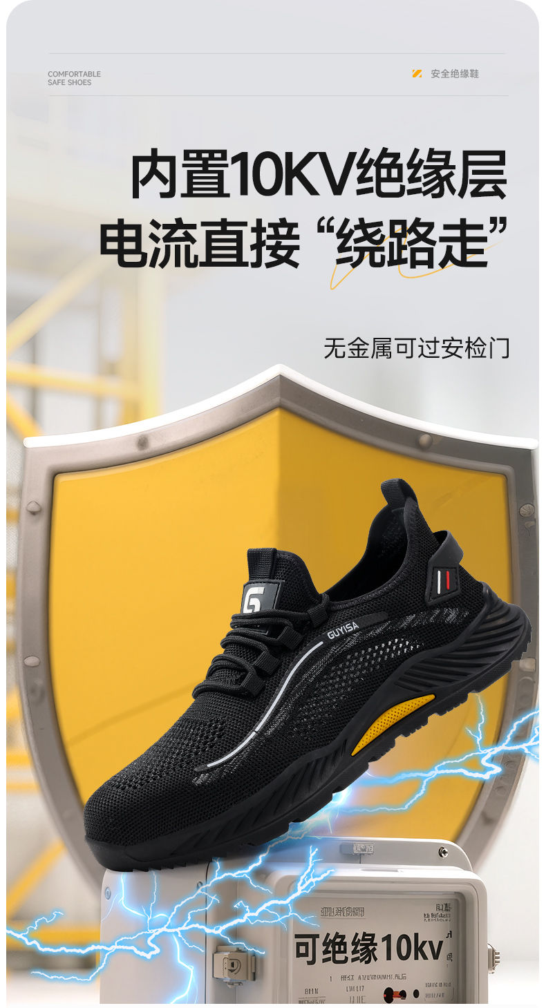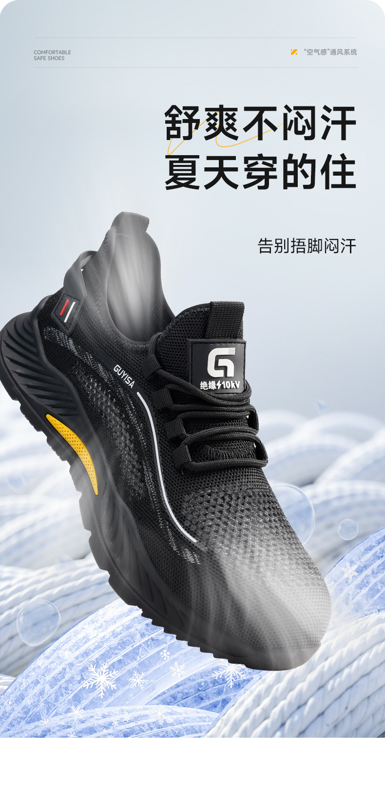 新款夏季透气绝缘10KV塑包头劳保鞋凯夫拉底中底防刺橡胶底防砸防刺
