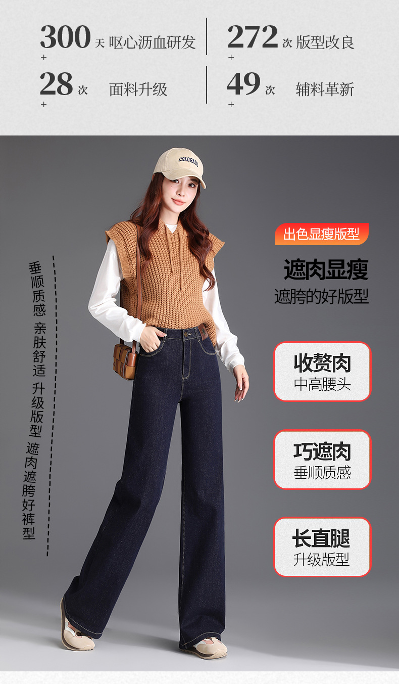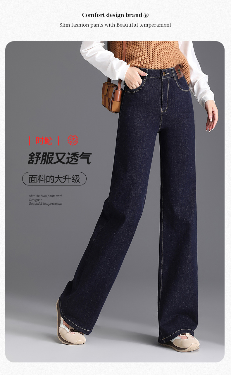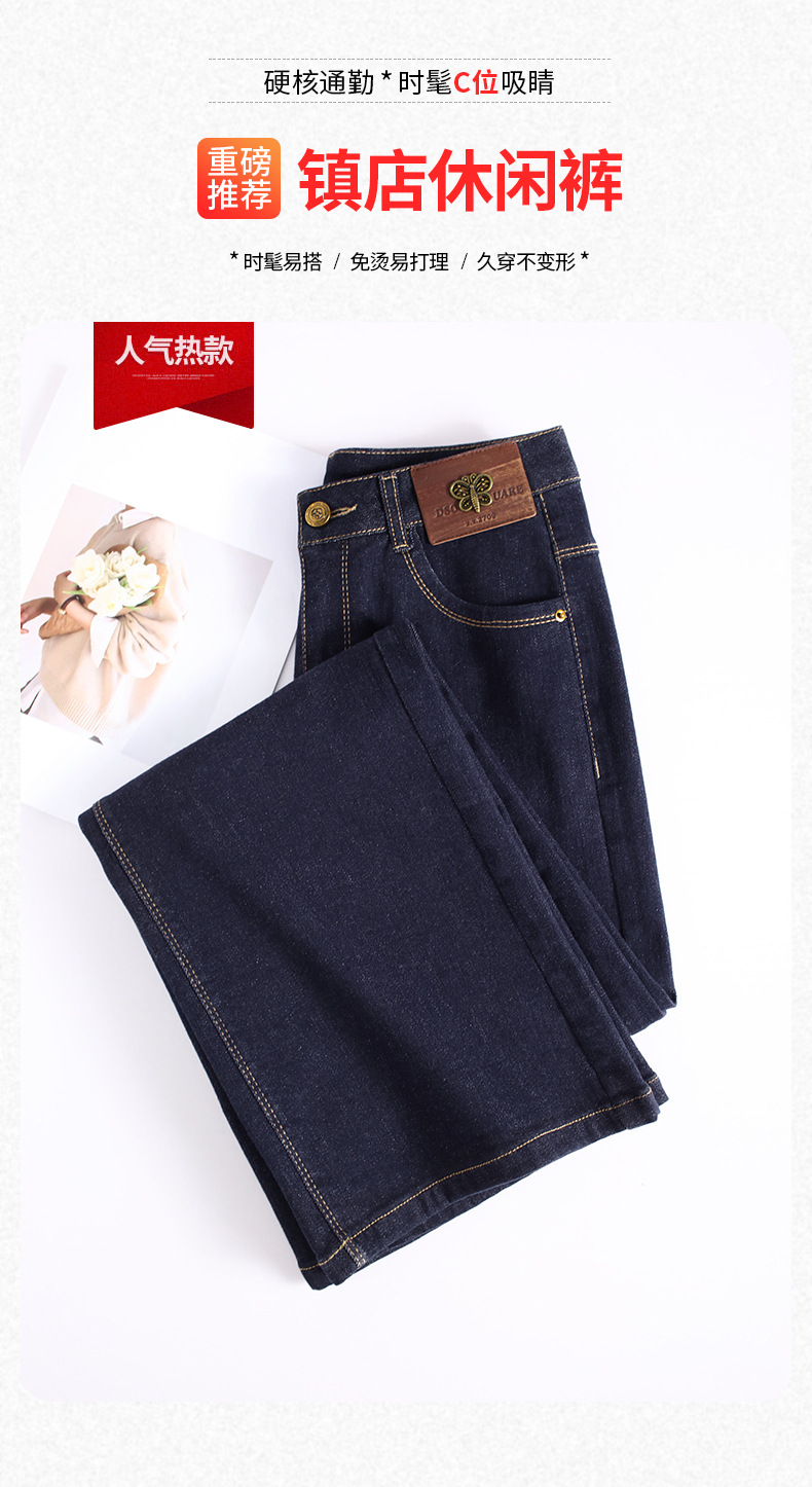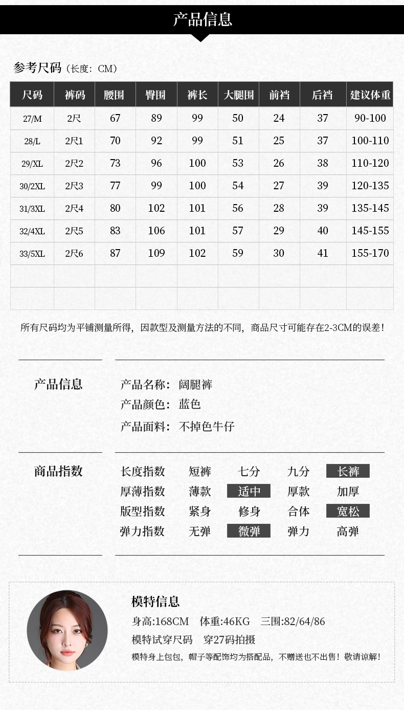 蓝色牛仔裤气质优雅,阔腿裤宽松直筒大码女装长裤QYM-GFL-9667-Y