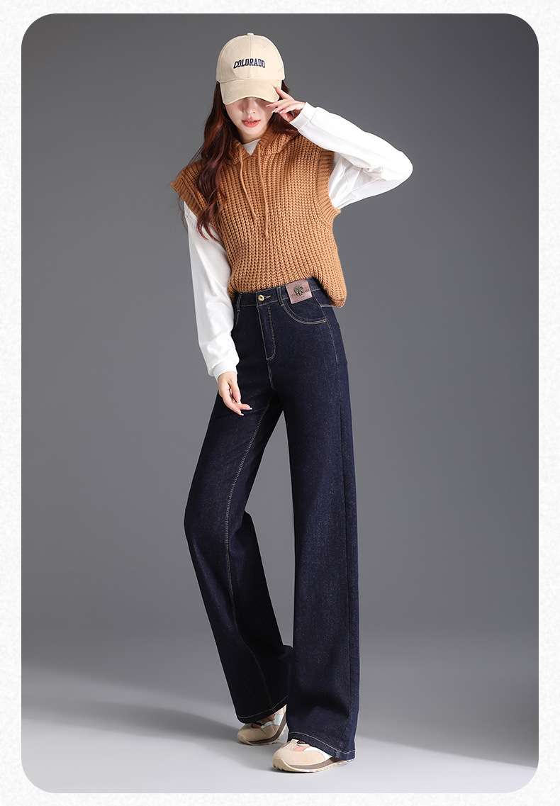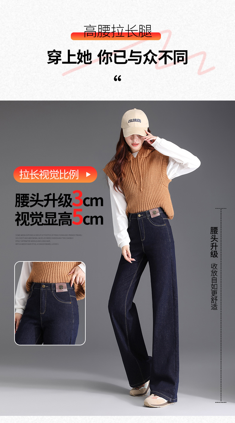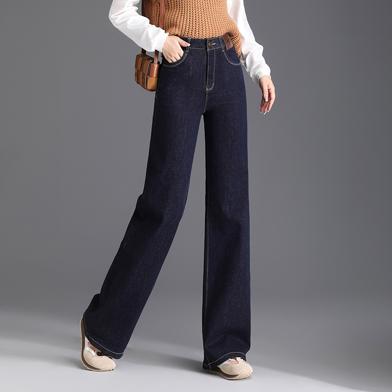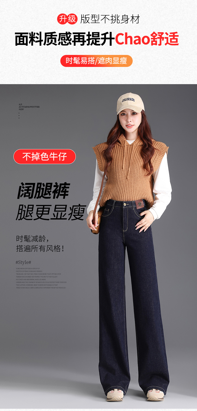 蓝色牛仔裤气质优雅,阔腿裤宽松直筒大码女装长裤QYM-GFL-9667-Y