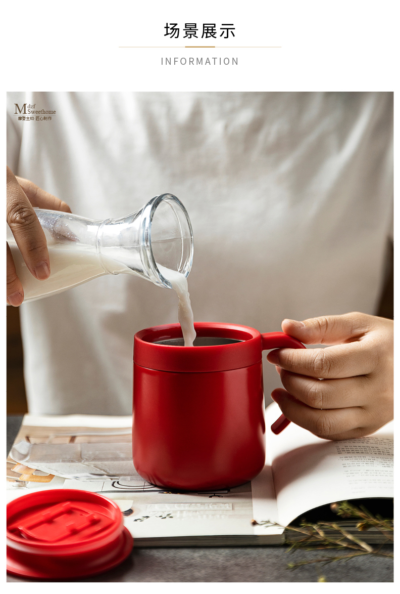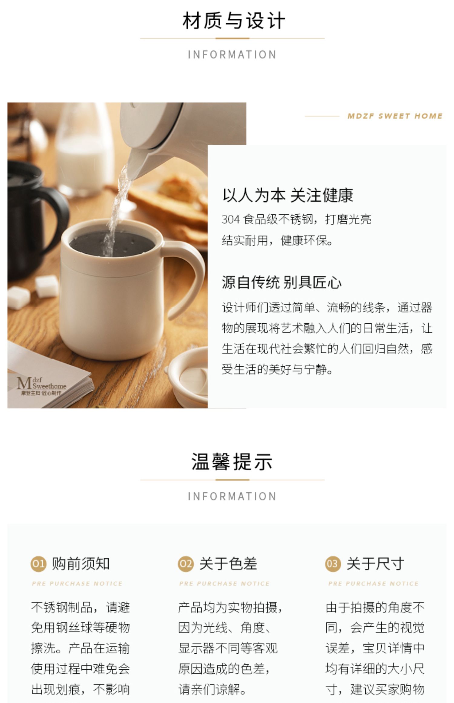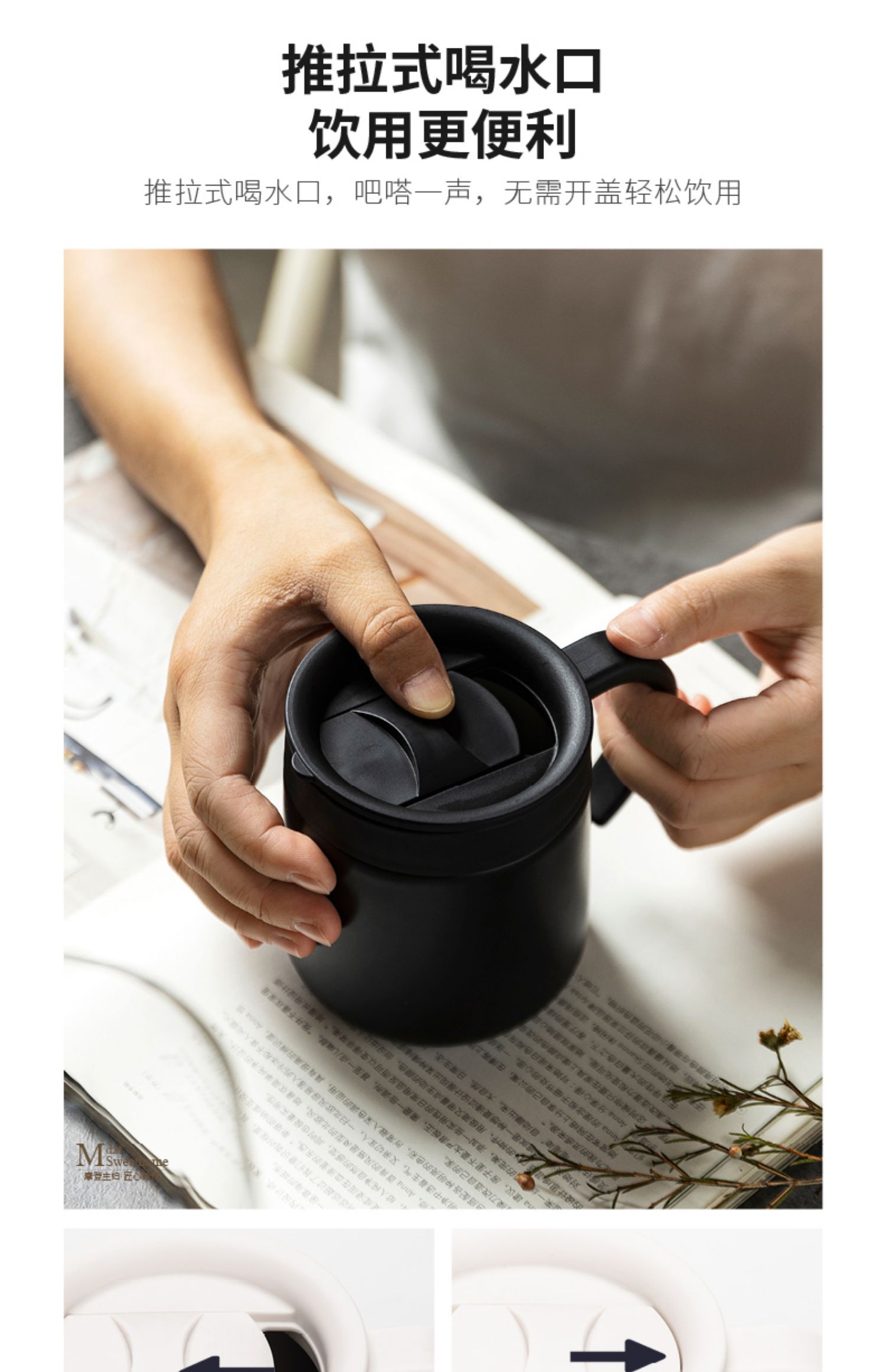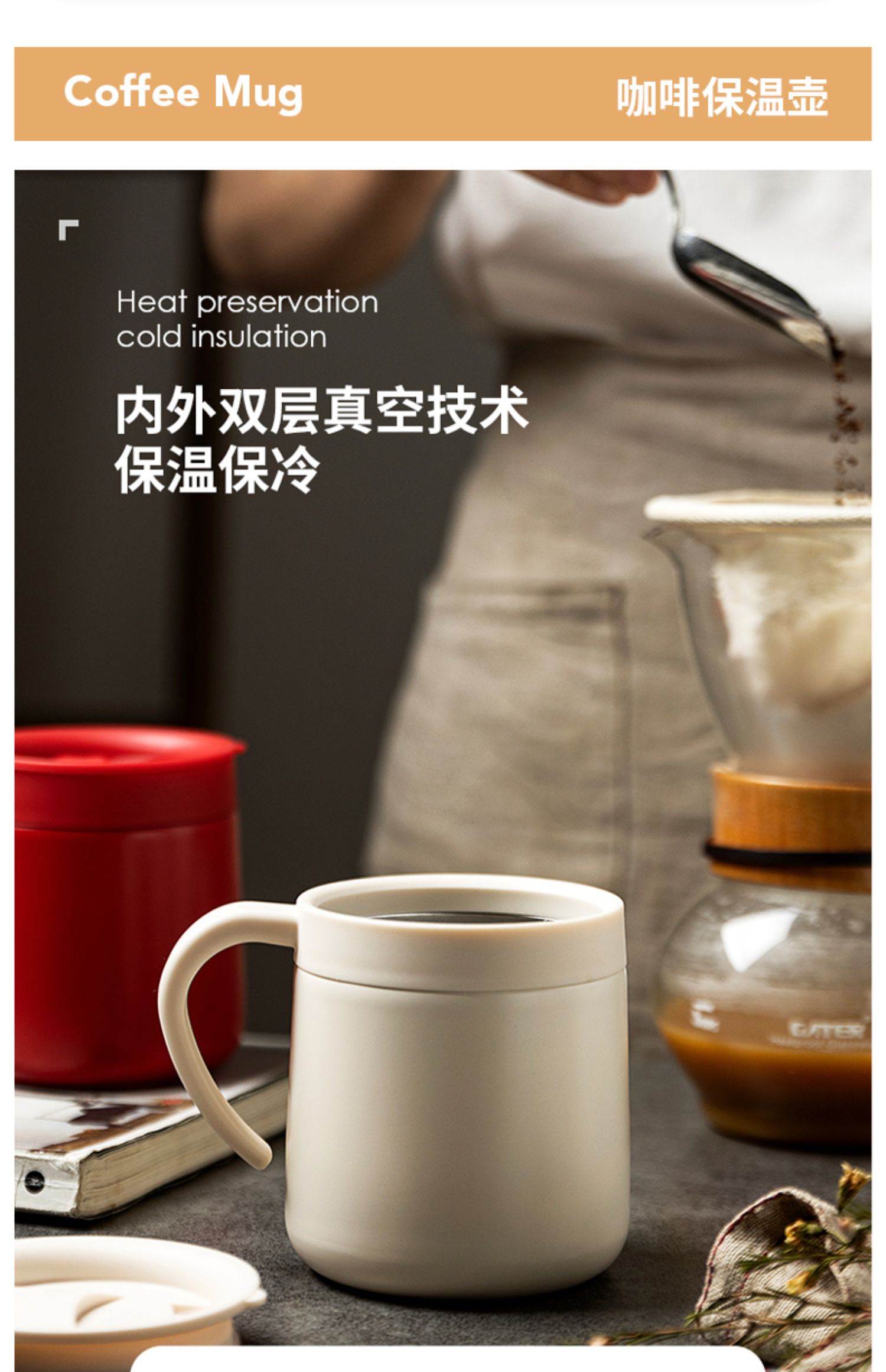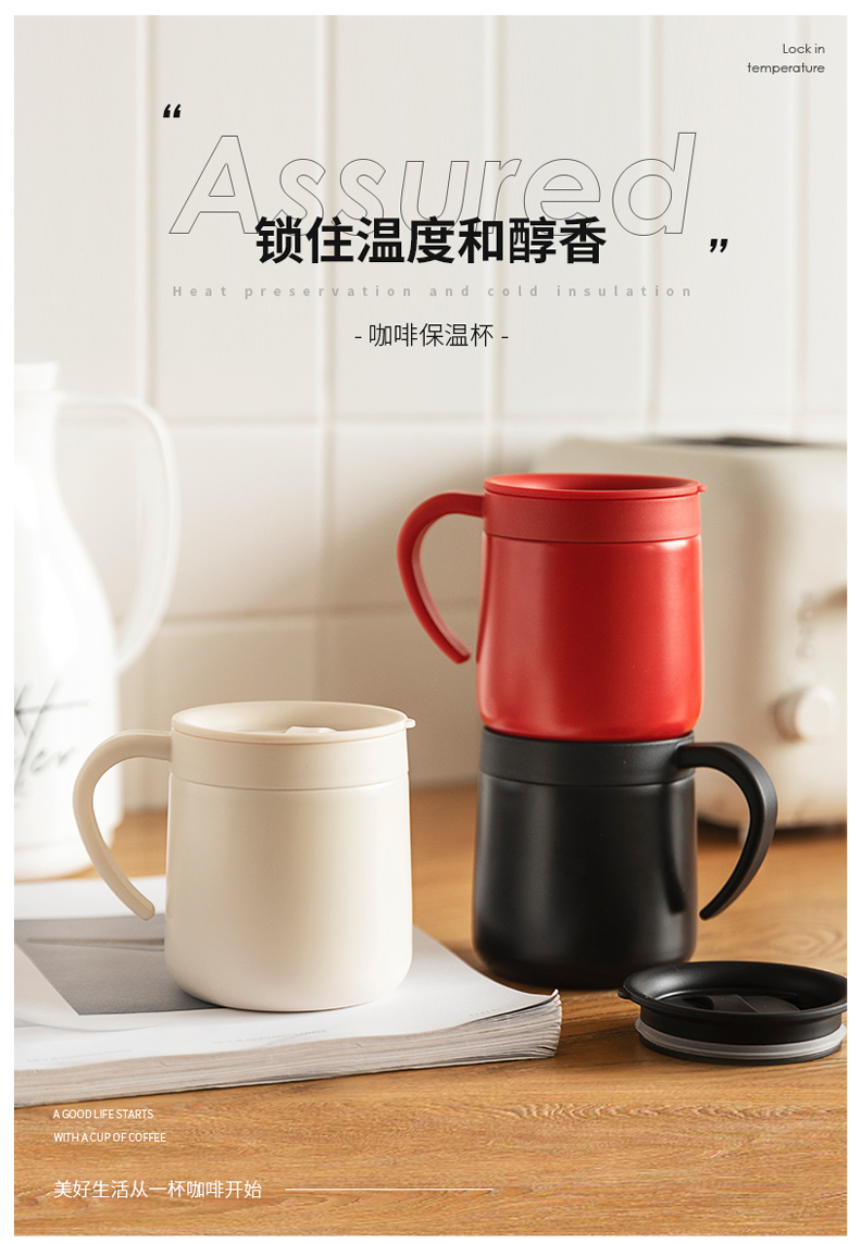 摩登主妇咖啡杯保温杯女保冷马克杯不锈钢水杯带盖办公室保温杯子