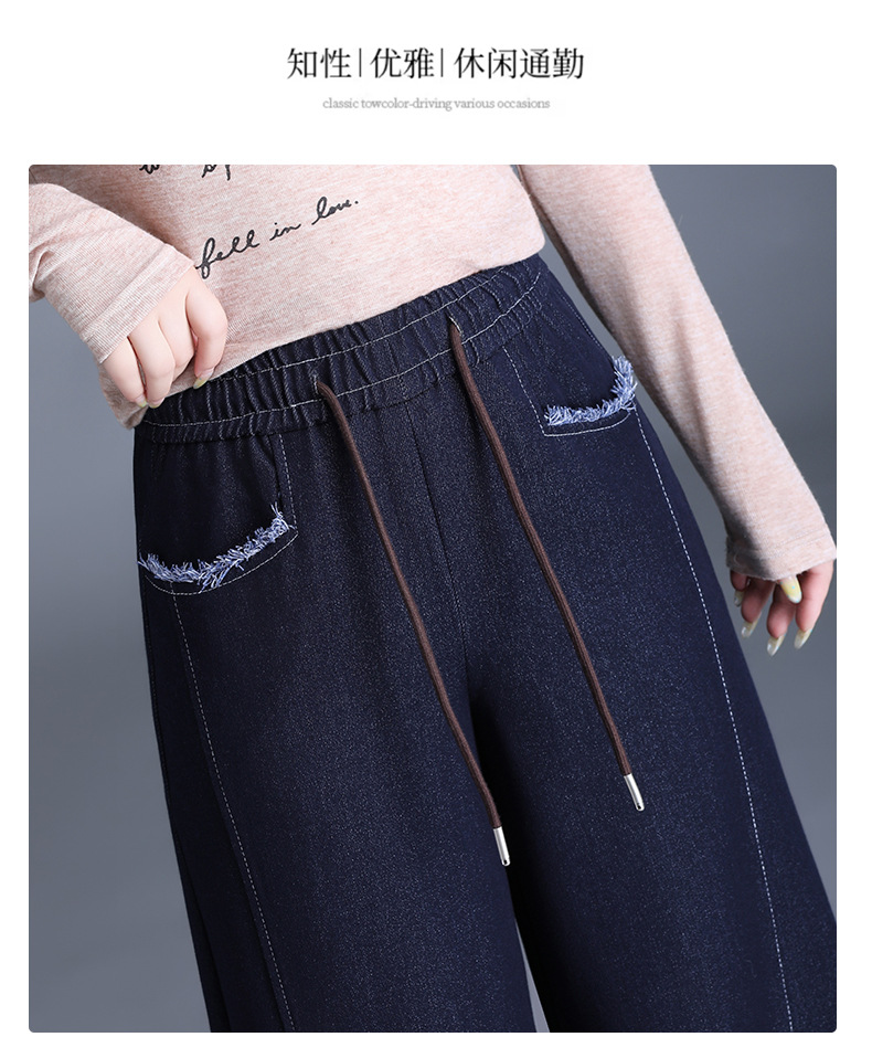 YM 9845洋气百搭松紧腰抽绳牛仔裤时尚加绒保暖高腰阔腿裤 商品图3