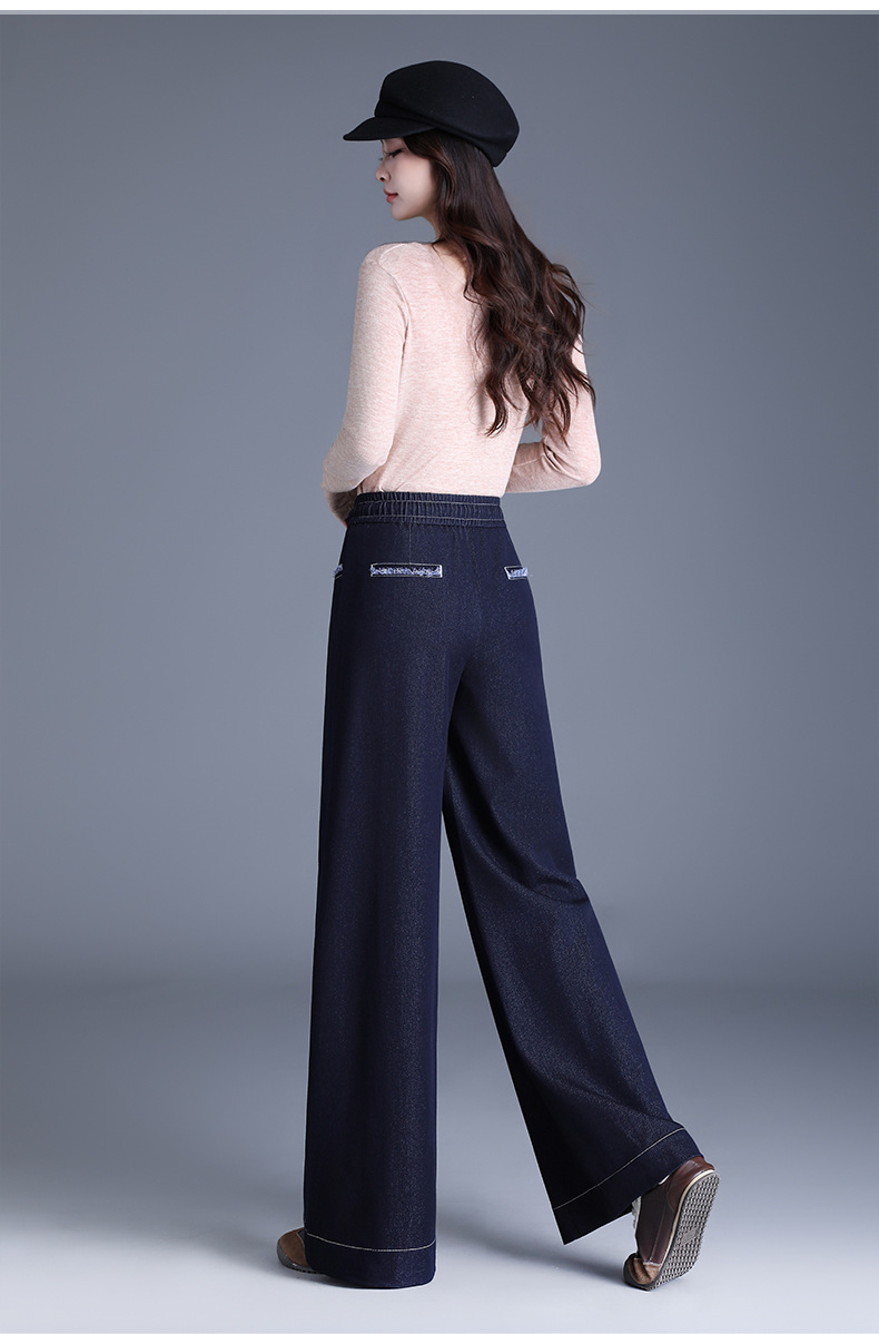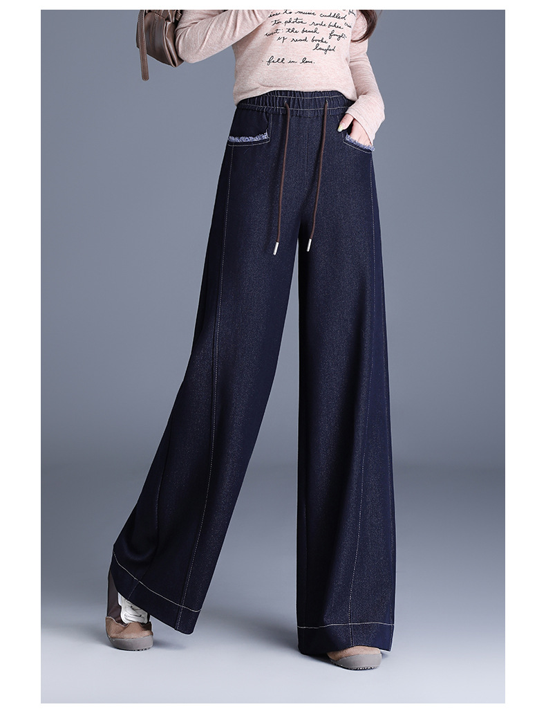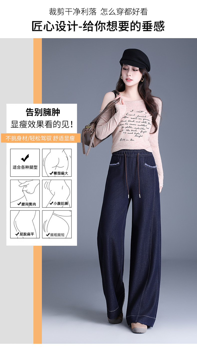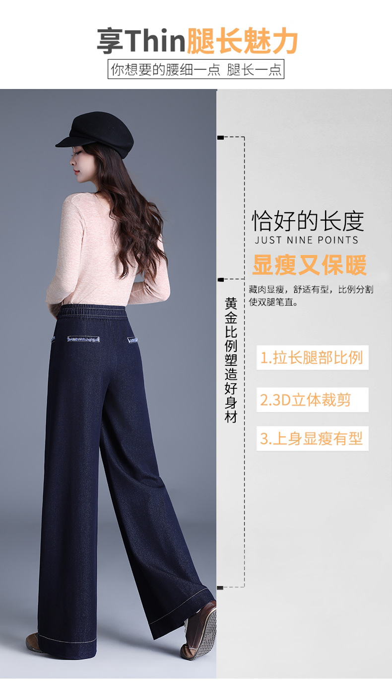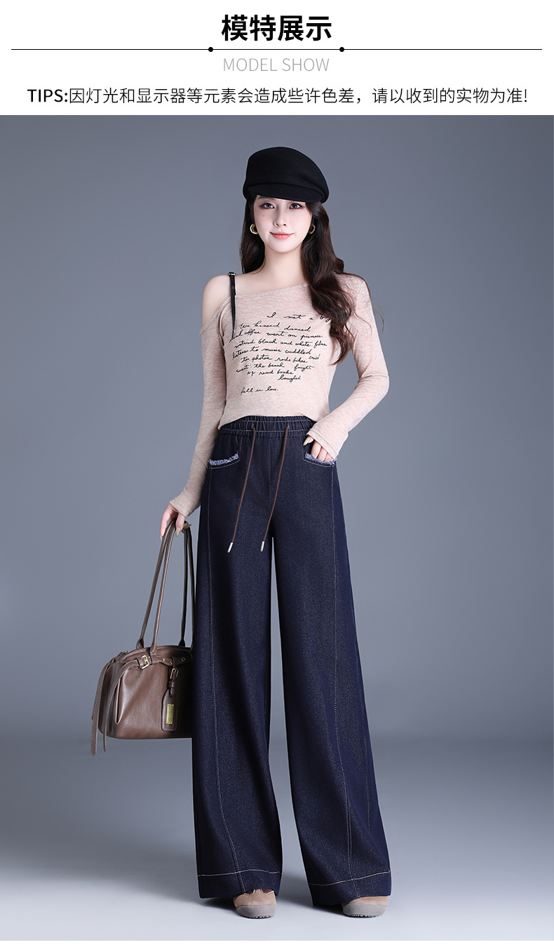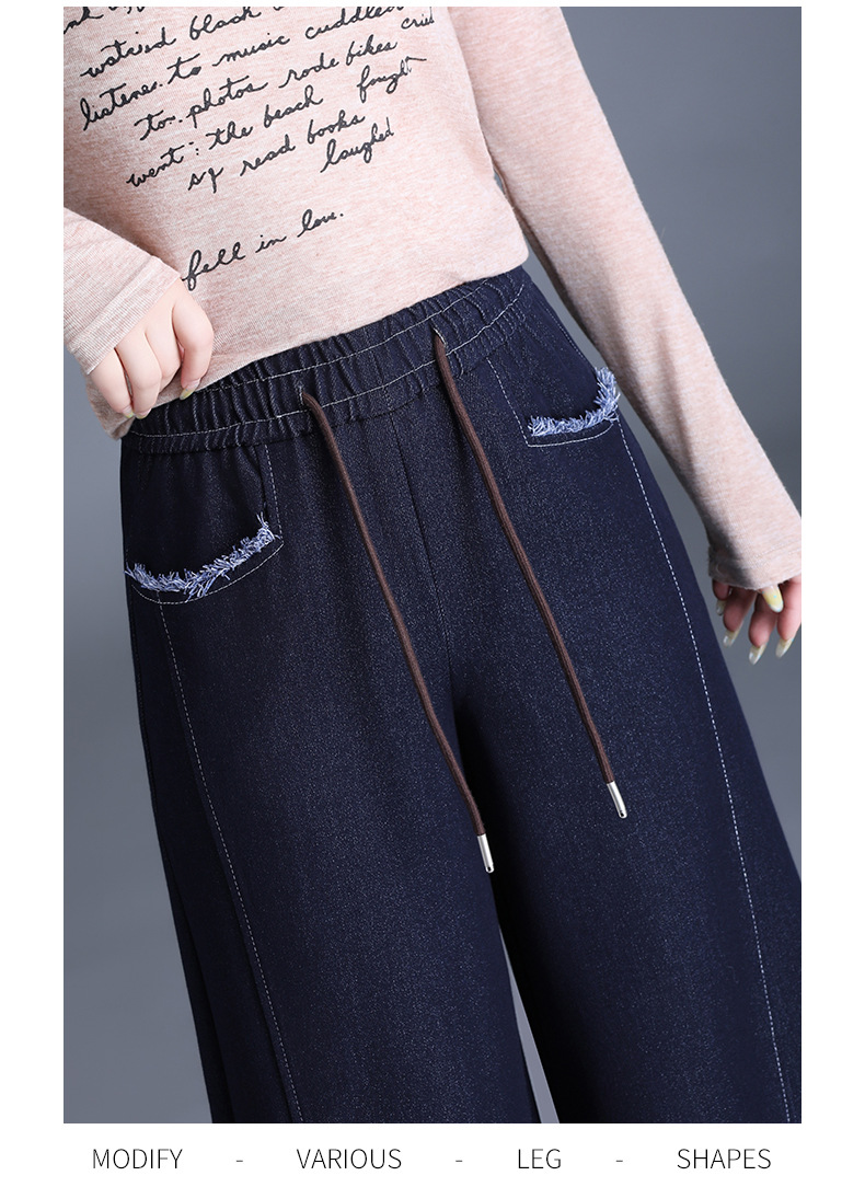YM 9845洋气百搭松紧腰抽绳牛仔裤时尚加绒保暖高腰阔腿裤 商品图4
