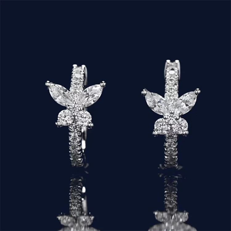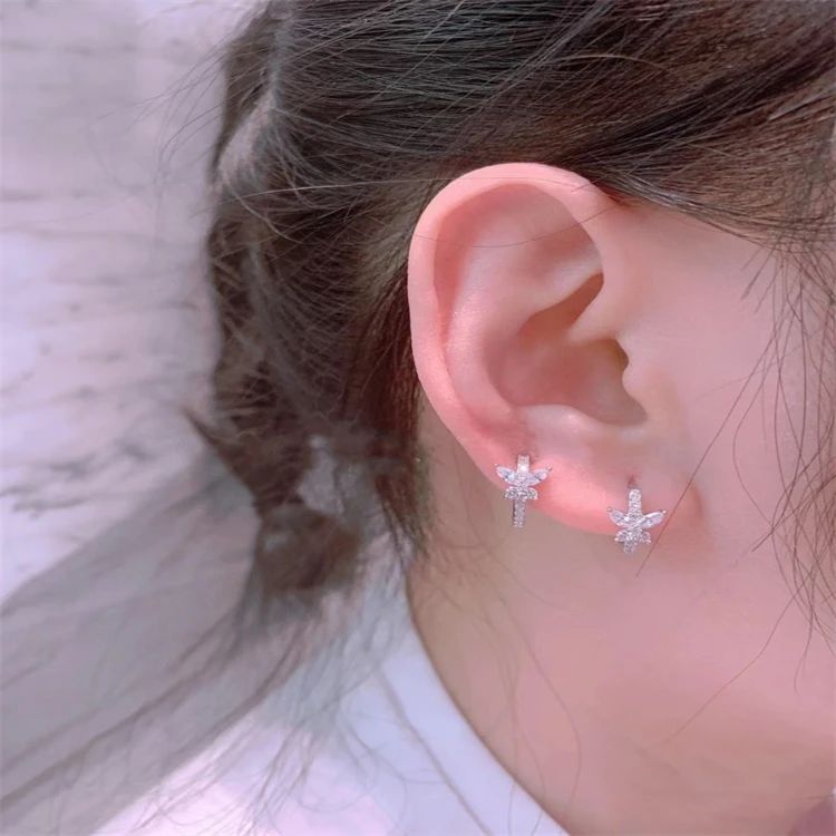 Apm新款蝴蝶系列!马眼形及圆形锆石幻化成精致小巧蝴蝶或形单影只或群聚纷飞,创造出多样叠戴创意!亮丽银白色演绎优雅小蝴蝶,戴上之后阳光透过蝴蝶和耳圈闪耀无比,真的巨美巨美!!直径1cm,正面有一只小蝴蝶,满钻耳圈的设计,带上去小小的正好卡在耳垂位置,灯光下非常非常闪!高级又精致,blingbling的爆闪的那种!925银针!