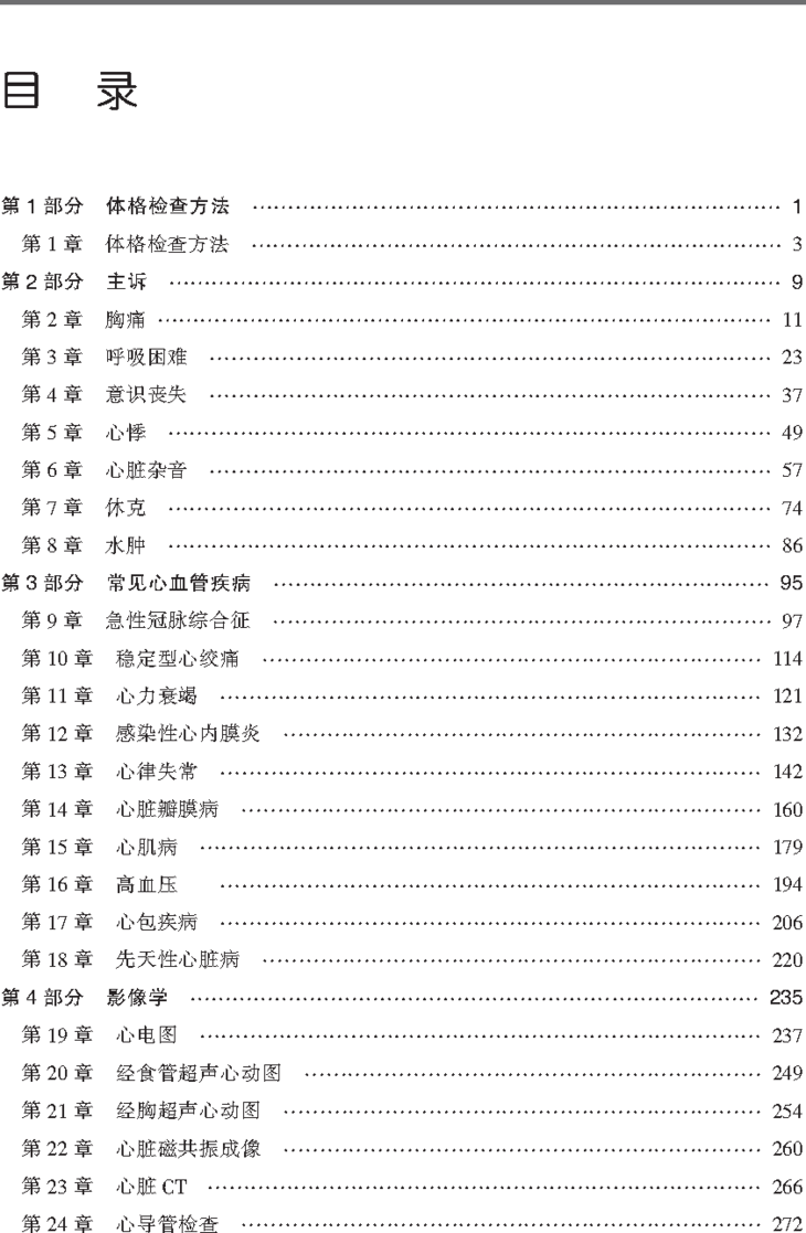 本书为心脏病学临床指导性用书,主要从体格检查、患者主诉分析、常见心血管疾病分类、辅助检查、介入治疗及药物治疗6部分对临床心血管疾病诊疗进行了系统介绍,各章辅以要点、图表和流程图等形式阐释了心脏病学的基本概念和重要临床表现,是一本适用于广大心血管内科医生和医学生的案头必备书。