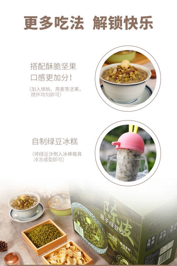 【斌哥优选】陈皮莲子绿豆沙。夏日解暑下火,滋补正当时。5年新会陈皮,每口都能尝到绿豆和陈皮的清香