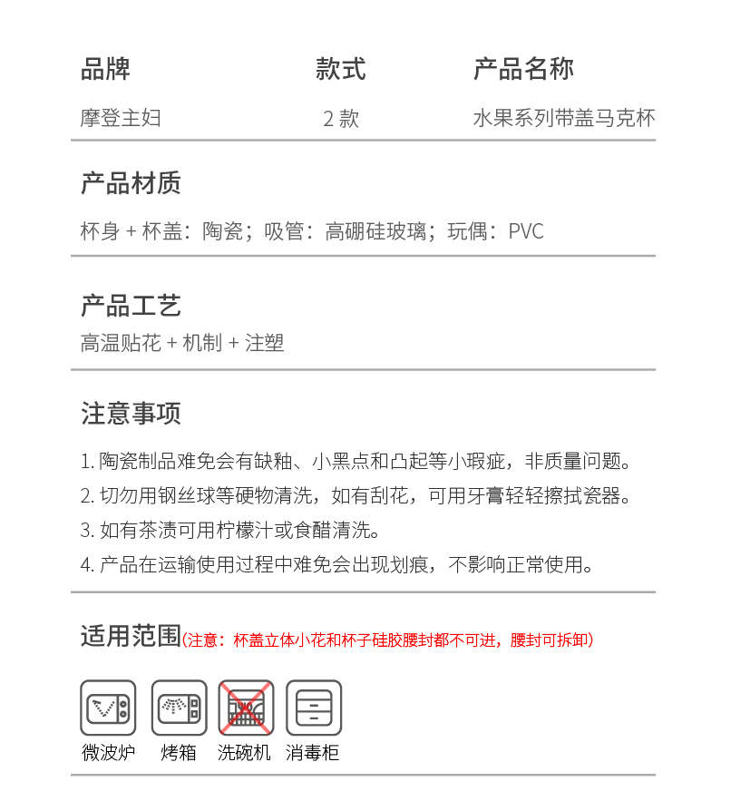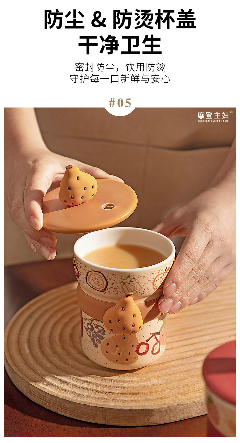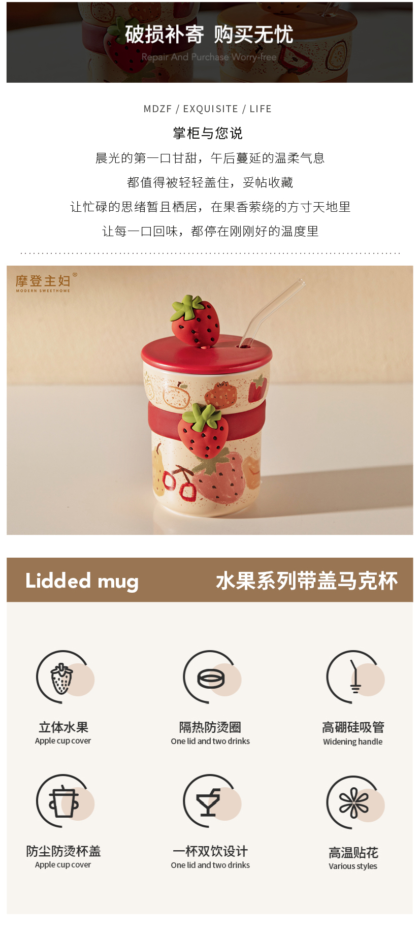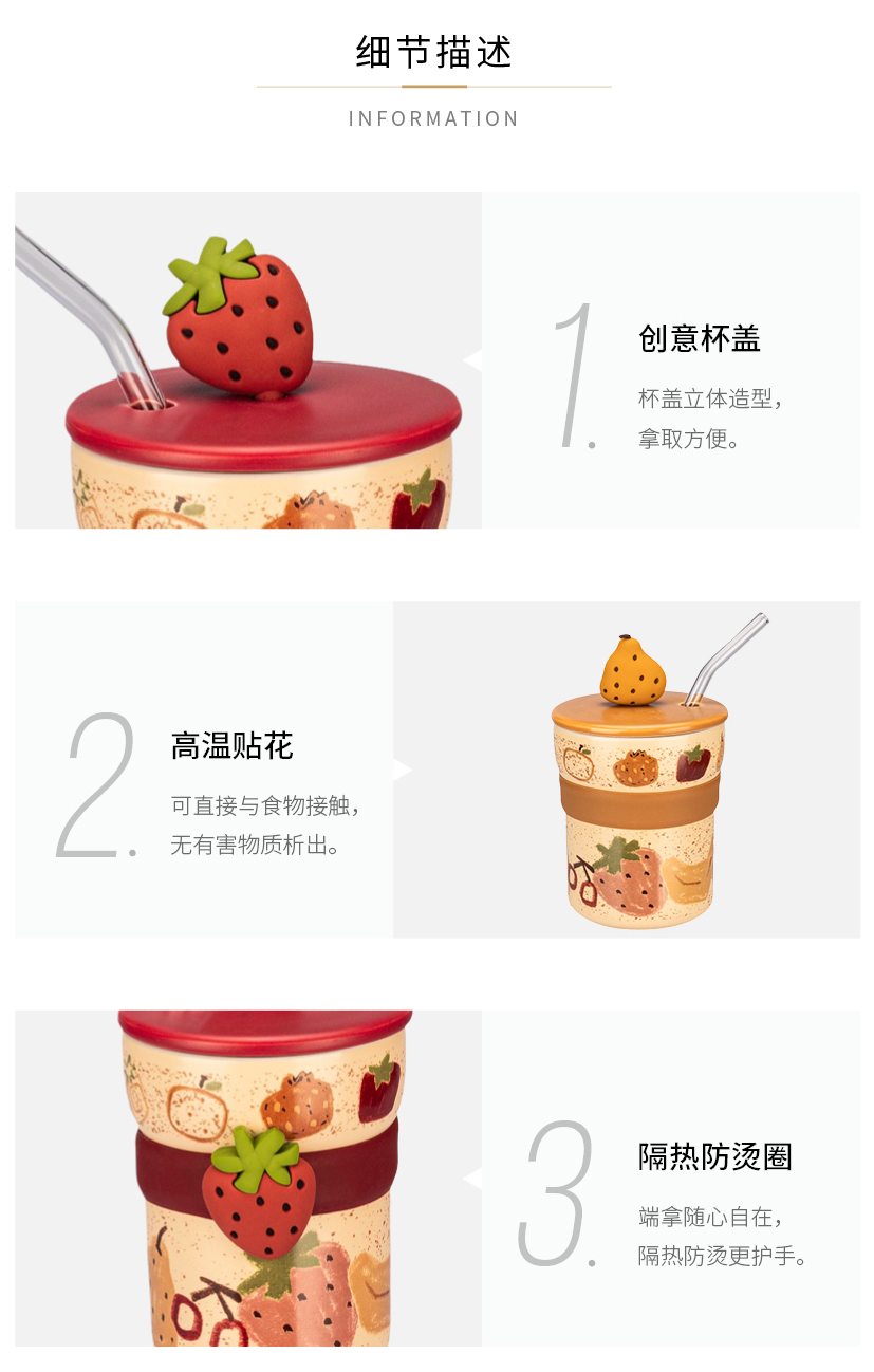 摩登主妇带盖陶瓷马克杯本命年马年新年礼物家用吸管水杯咖啡杯子