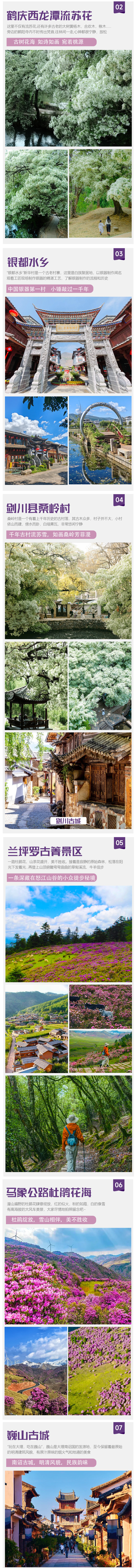 2. 【行程所列首道景点及门票】:鹤庆西龙潭、银都水乡、桑岭村、剑川古城、兰坪罗古箐、马象公路杜鹃花、巍山古城、南涧土林、哀牢山景区套票(石门峡+金山原始森林)、绿汁江大桥、绿汁公园、绿汁凤凰花、昆明蓝花楹;