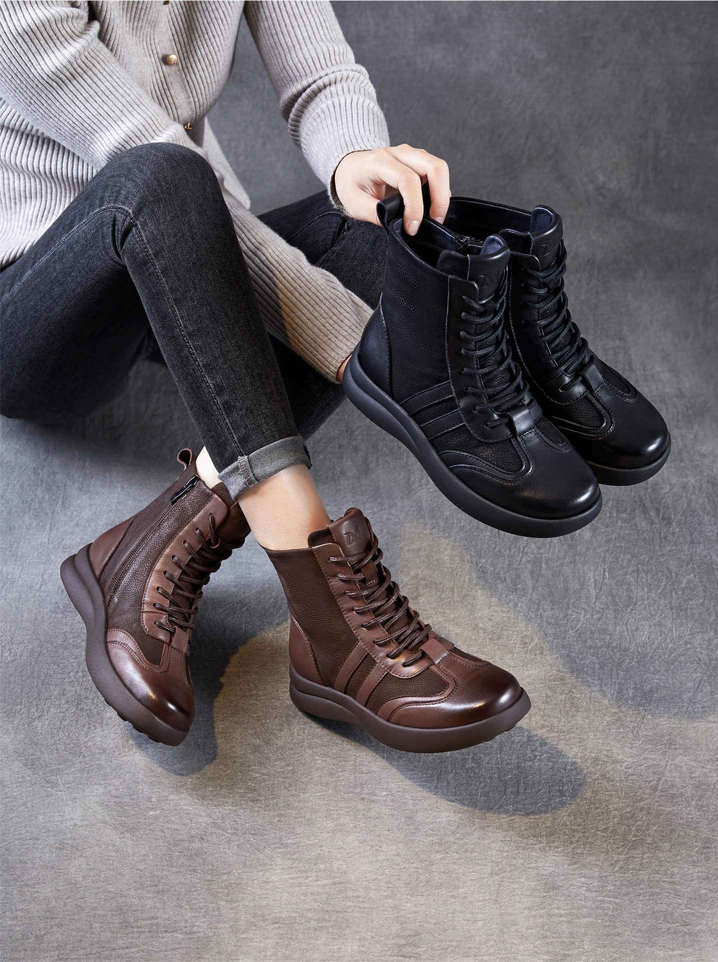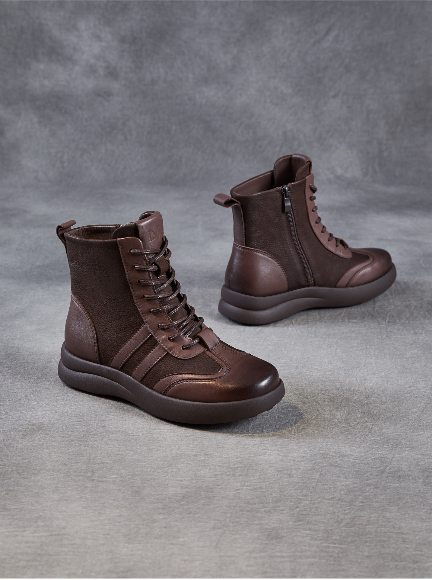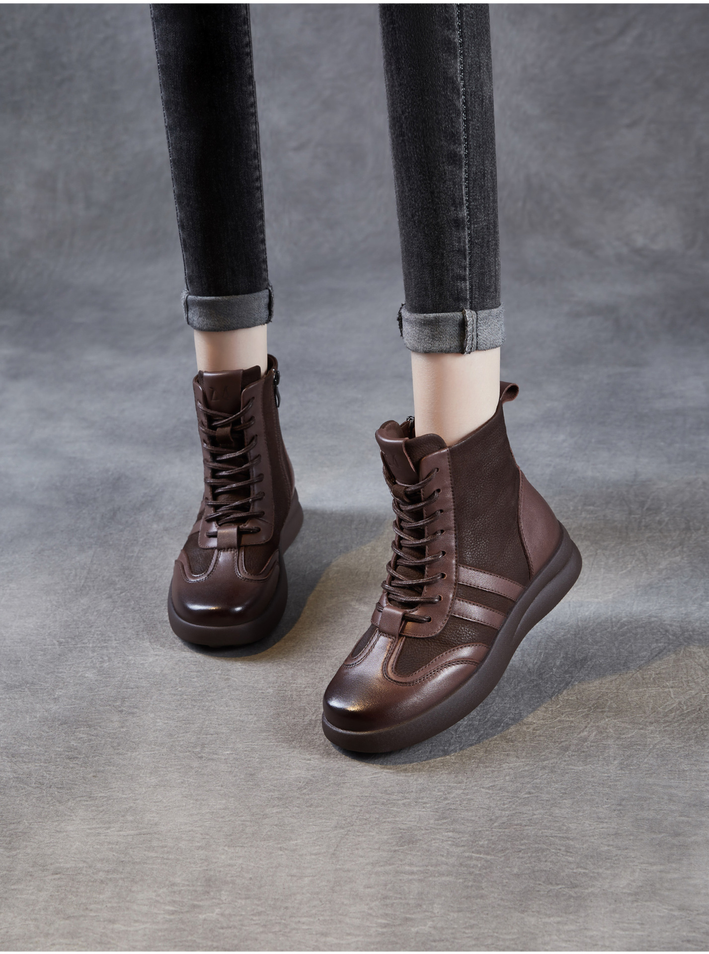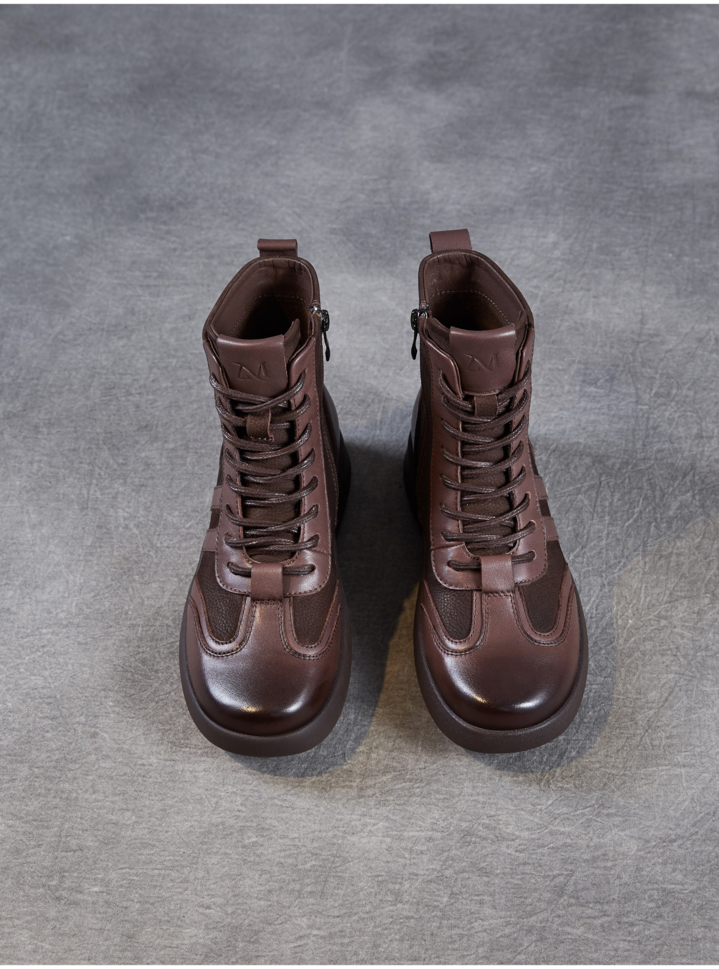 头层牛皮马丁靴靴,复古休闲百搭短筒系带真皮德训女鞋ZM258703