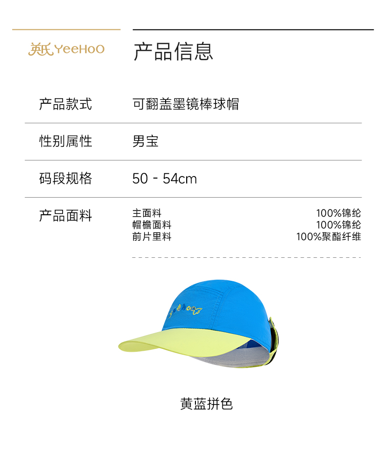 【商场同款】英氏儿童帽子男童夏季防晒太阳帽撞色百搭遮阳鸭舌帽