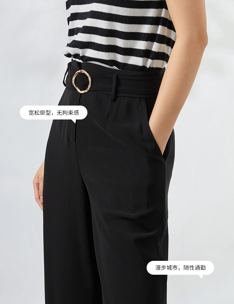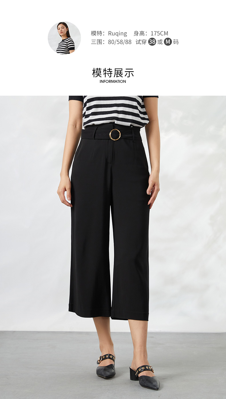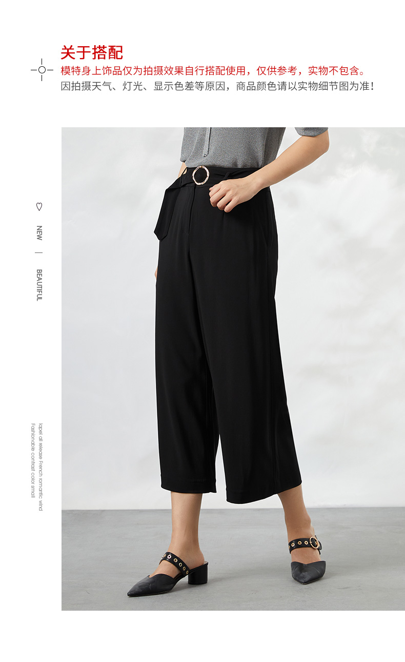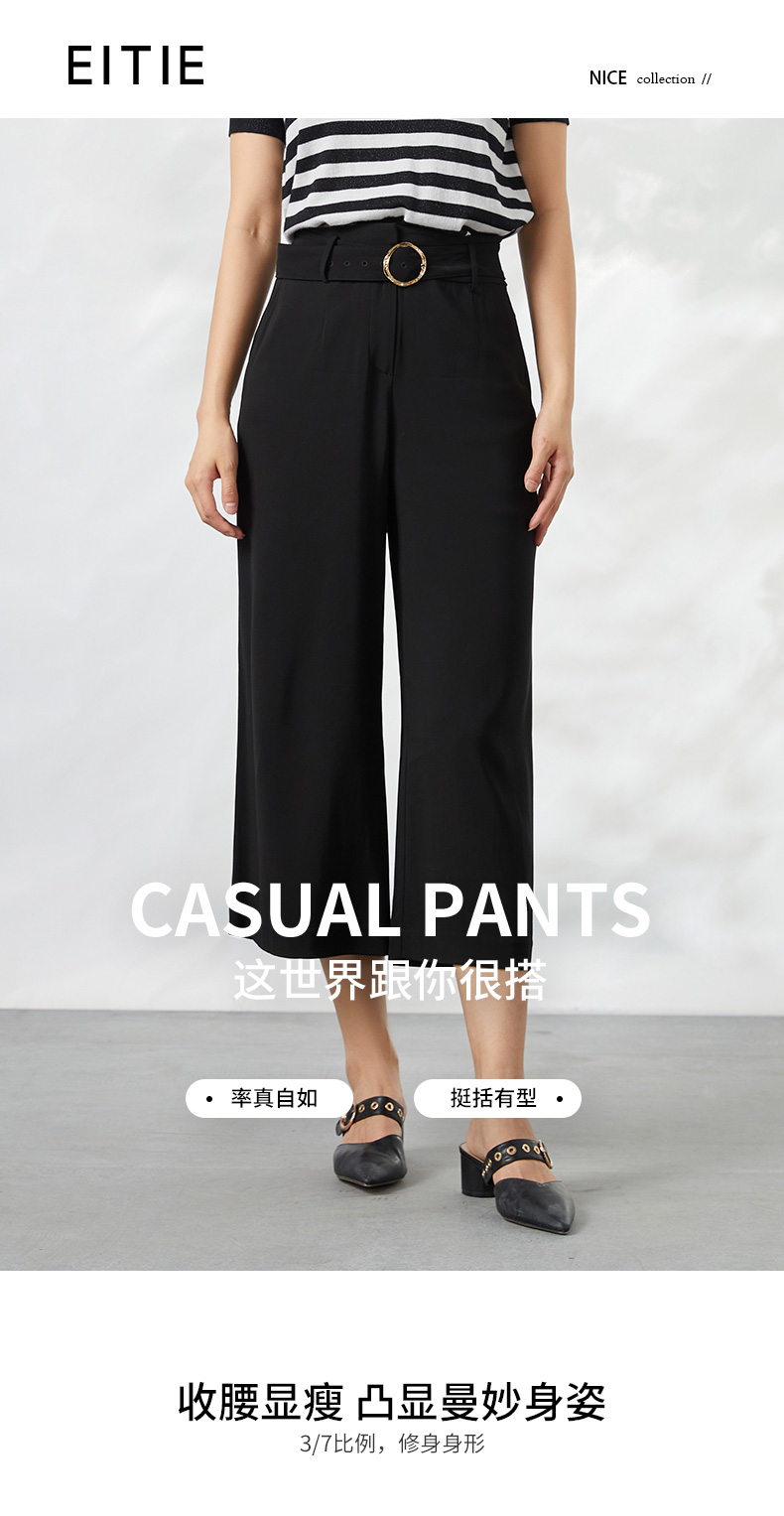 下架-EITIE爱特爱纯色通勤显瘦简约阔腿裤九分裤6605310裤子