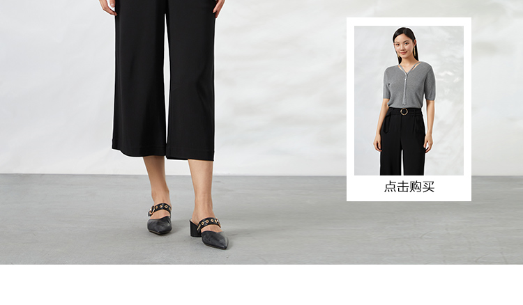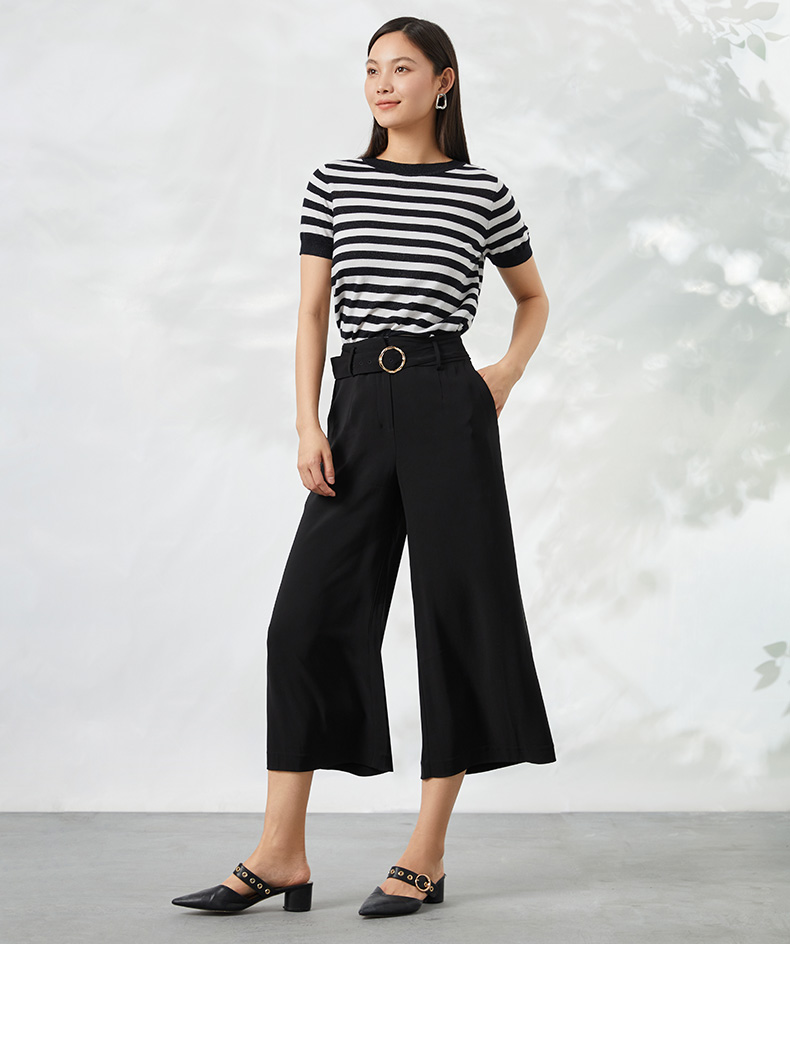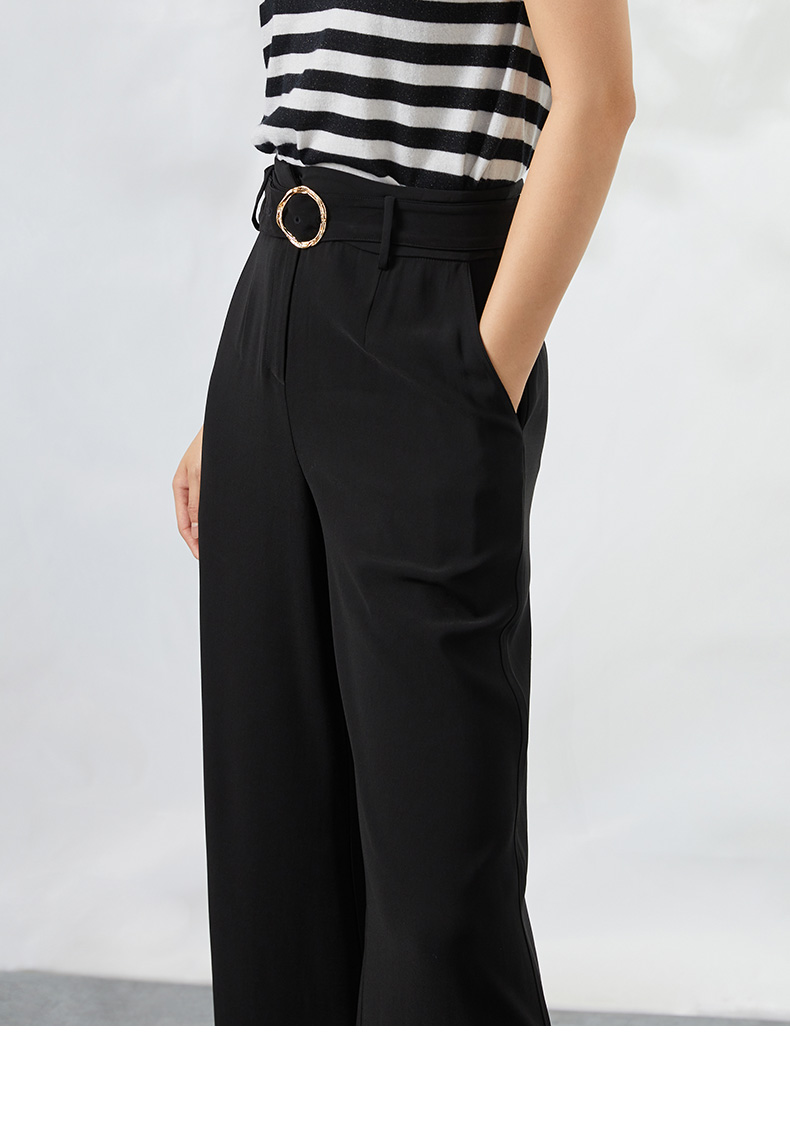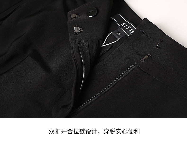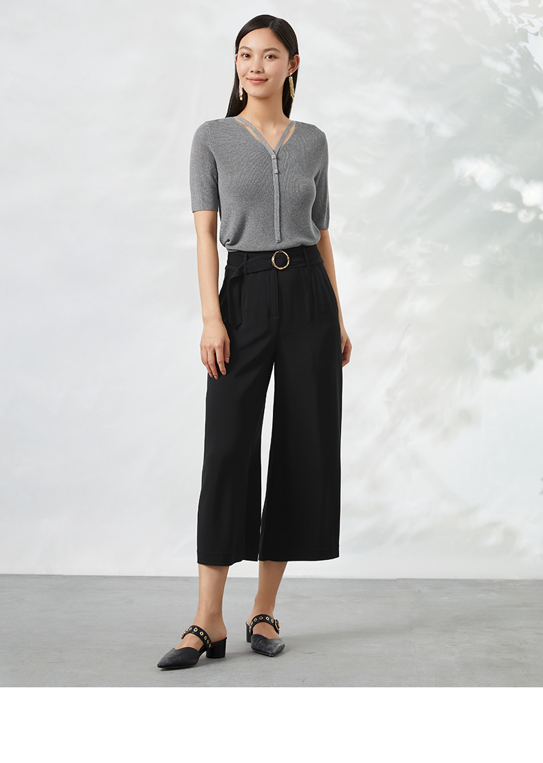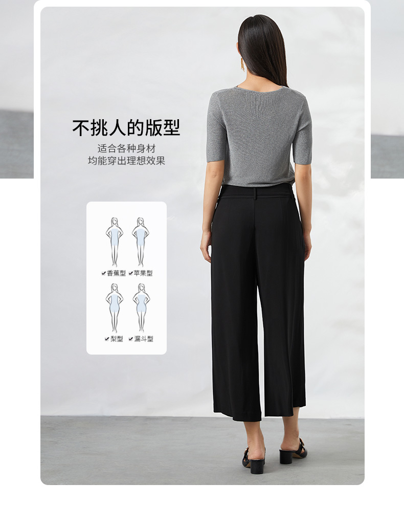 下架-EITIE爱特爱纯色通勤显瘦简约阔腿裤九分裤6605310裤子