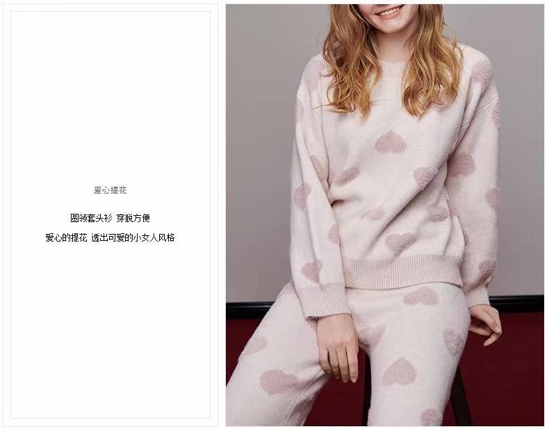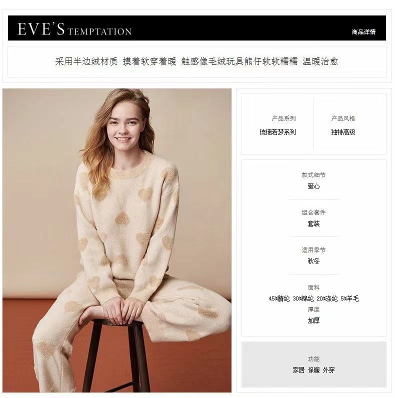 百货世界-夏娃的诱惑2022年新款长袖睡衣女秋冬款加厚加绒家居服套装两件套 均码(适合80-130斤)