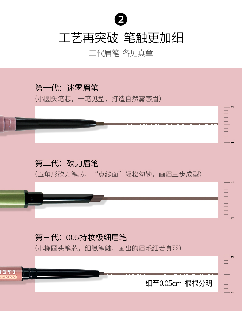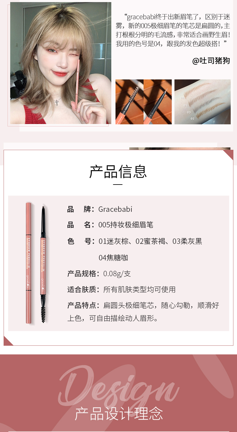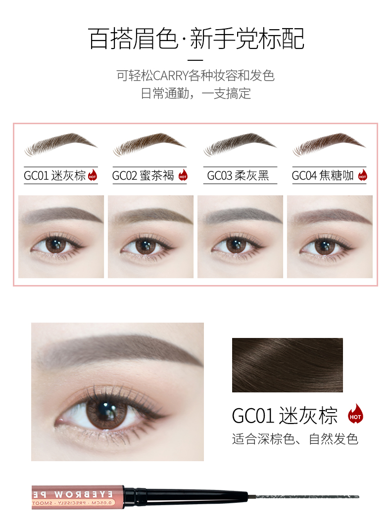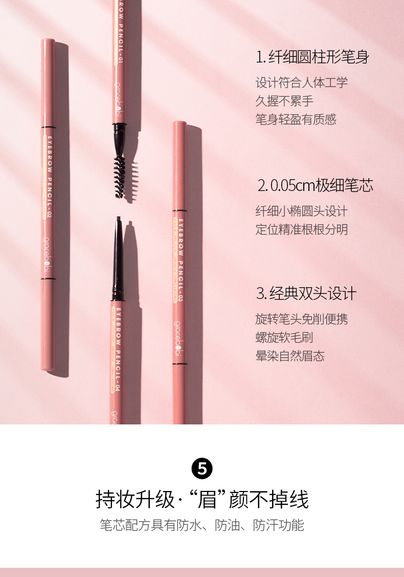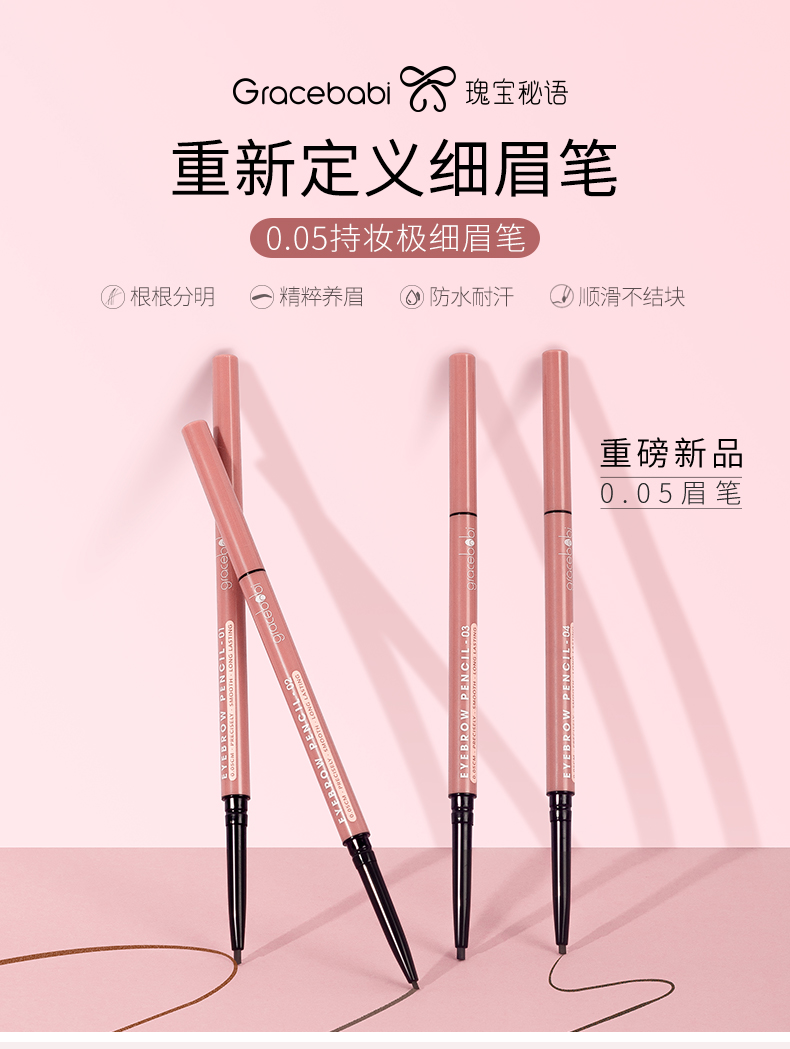 【品牌爆款-三支装】Gracebabi 005极细眉笔持久不脱色防水防汗初学者超细头