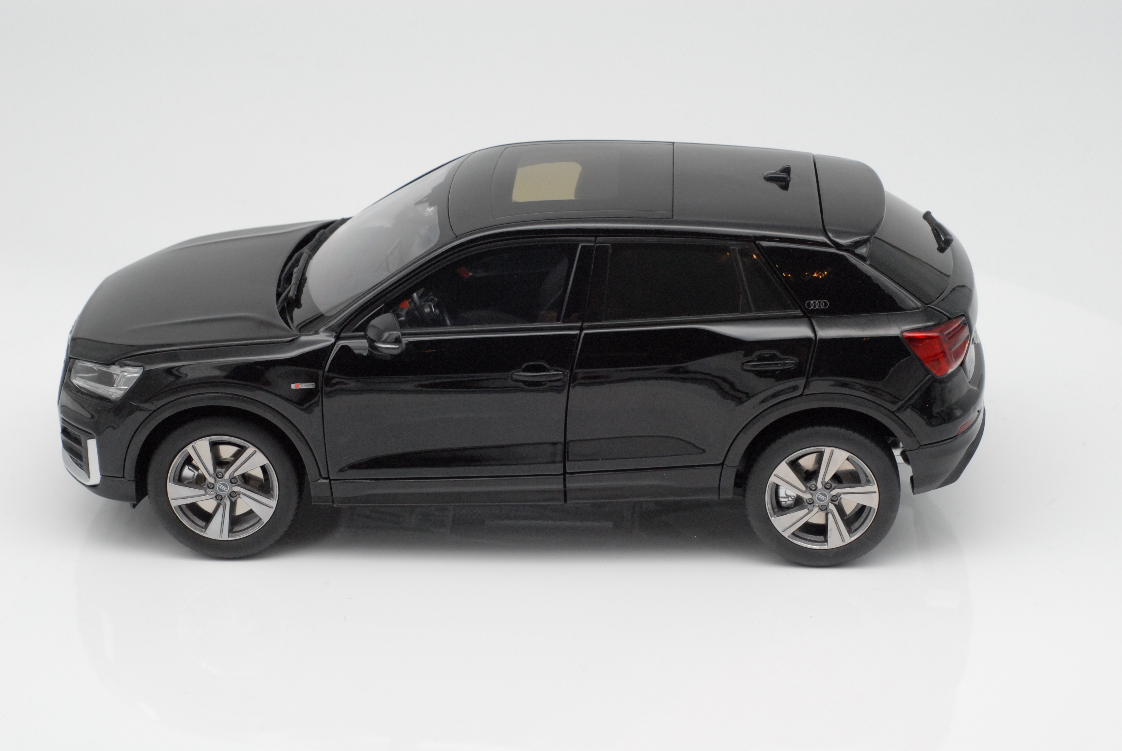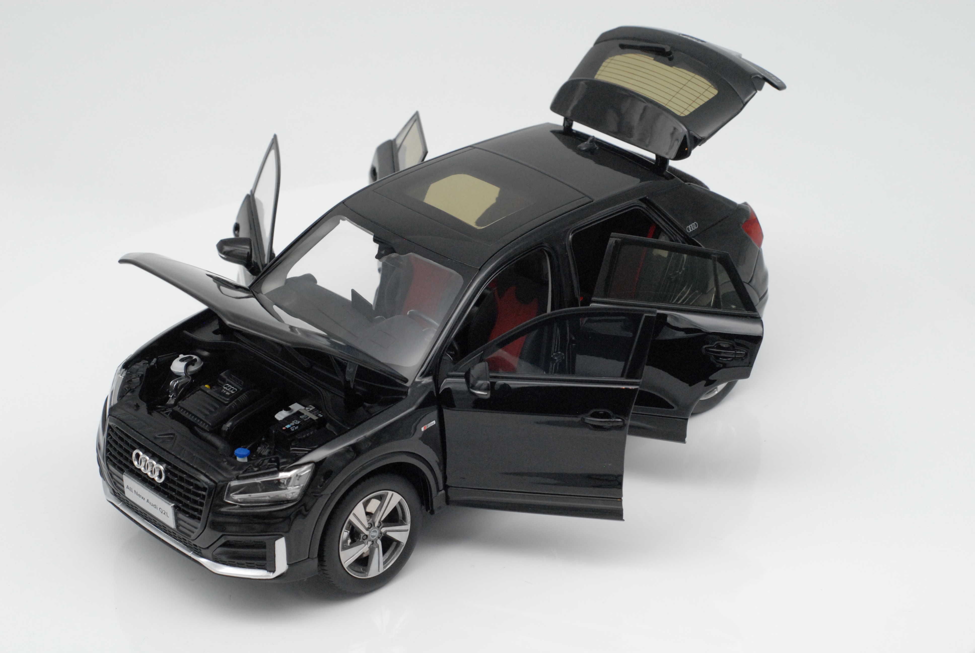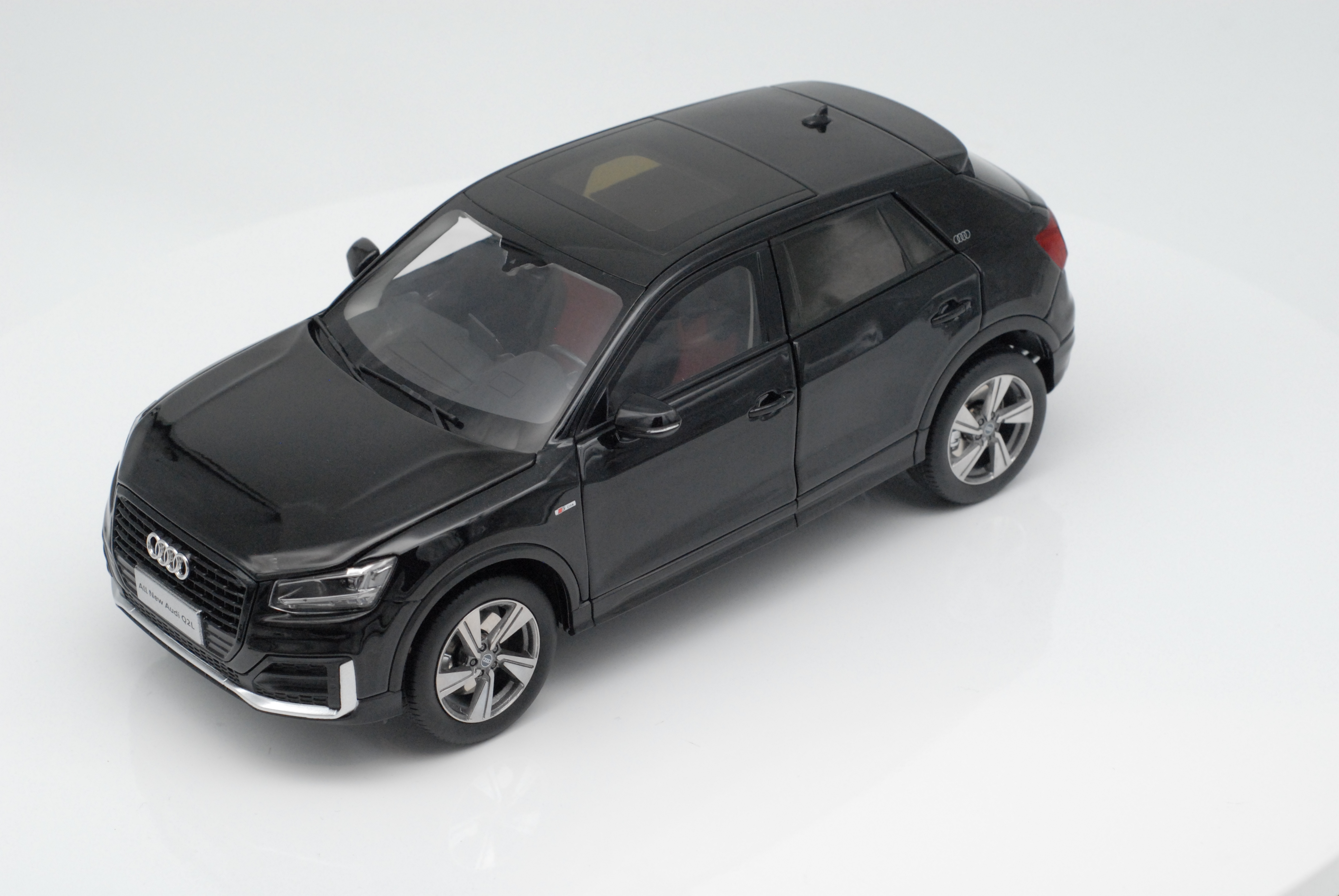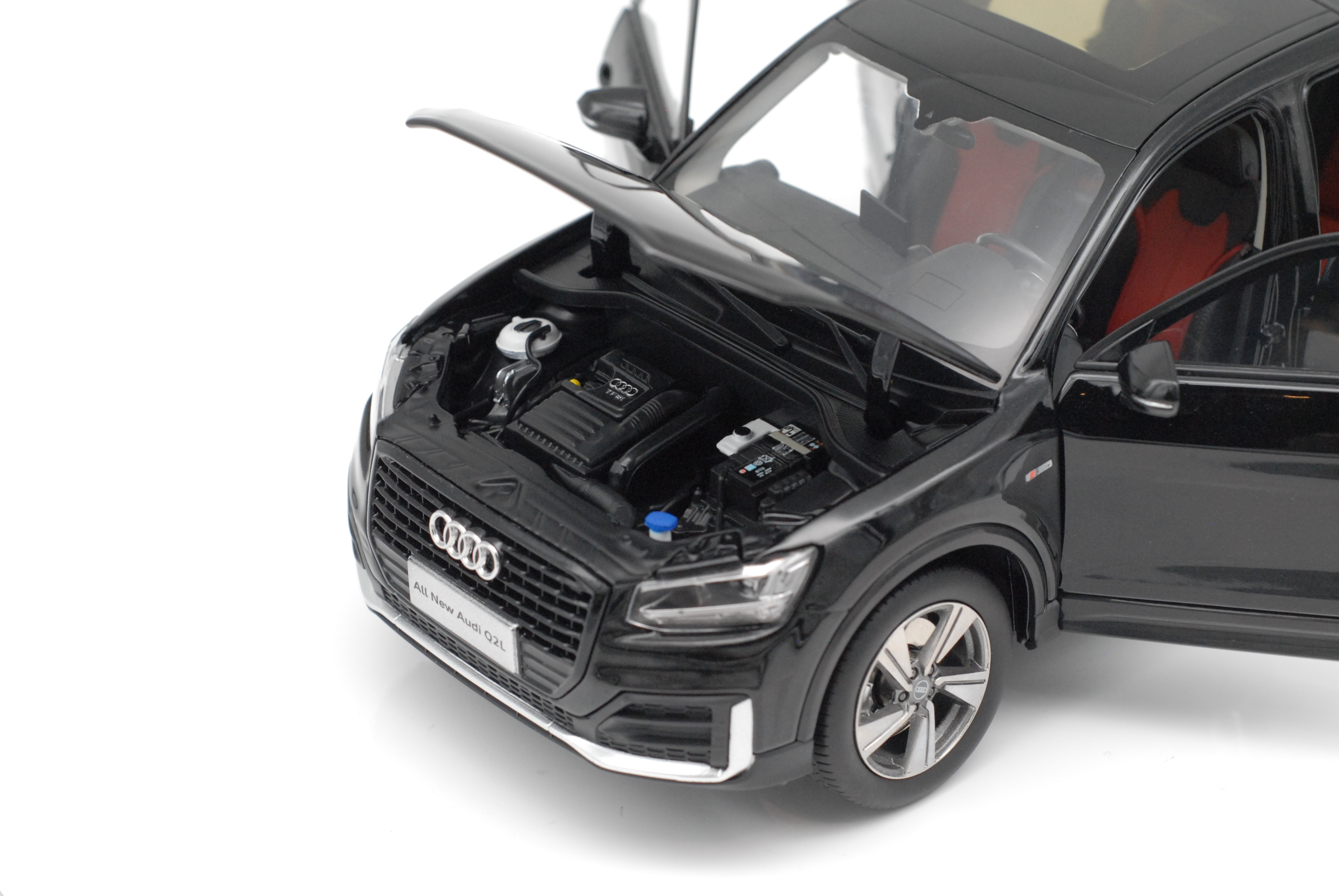 按1:18比例缩小精制而成,整体效果逼真。合金车身,光亮动感。四轮可转,四车门、引擎盖,行李箱盖均可开启。引擎盖开启后可见发动机等机器部件。方向盘可传动前轮转向。驾驶室内,仪表盘、中控台清晰可见。制作精良,外表美观。