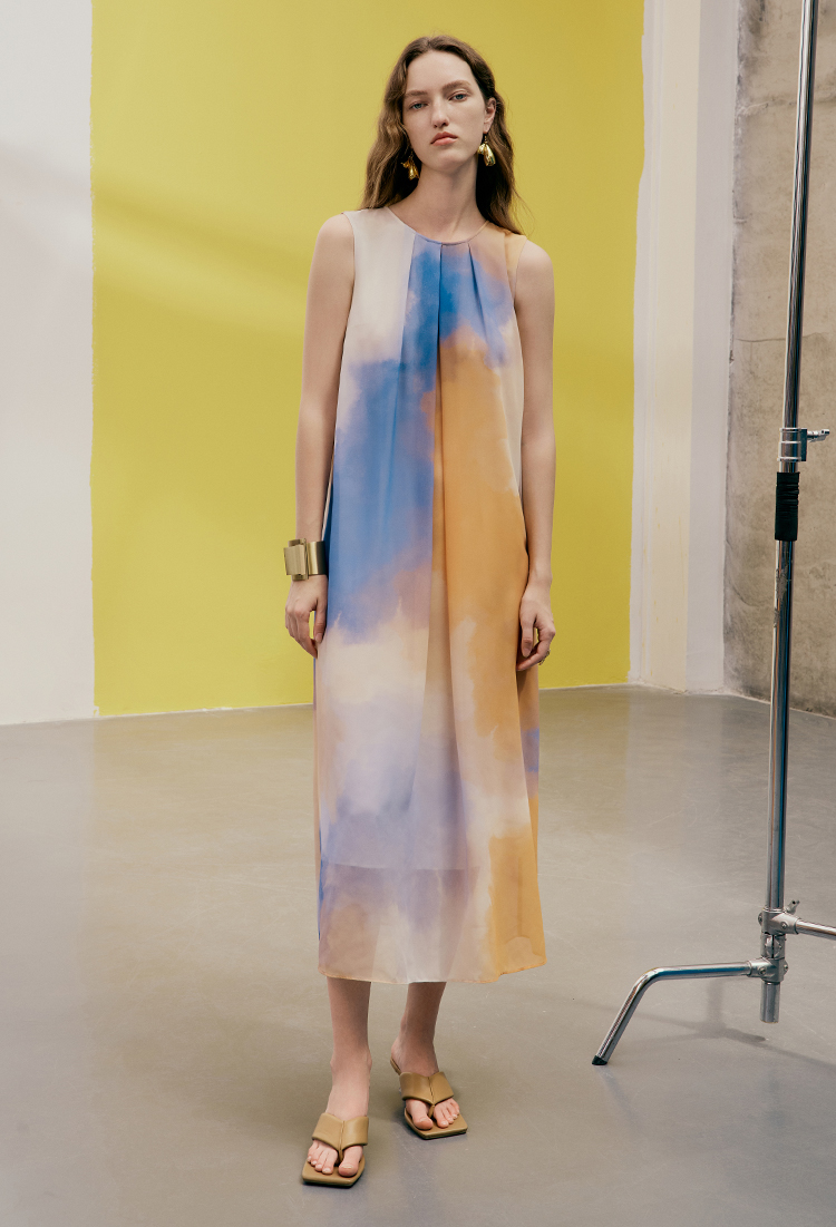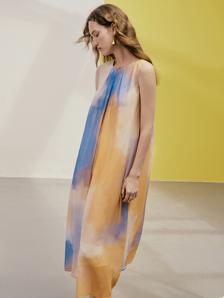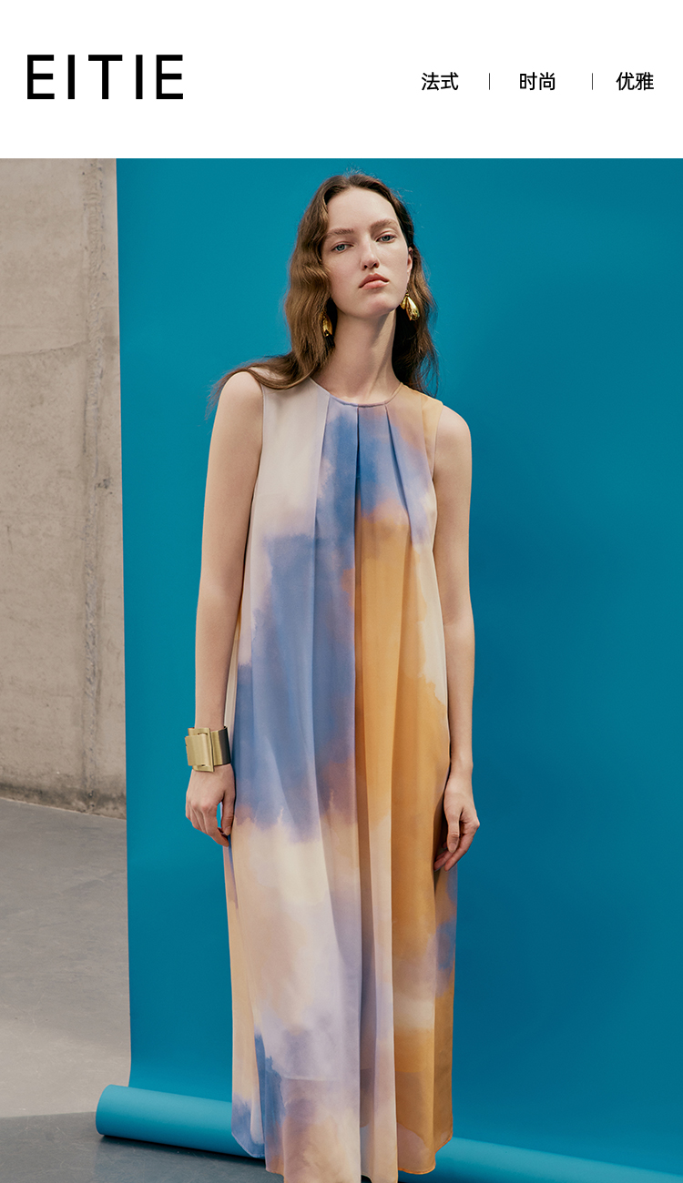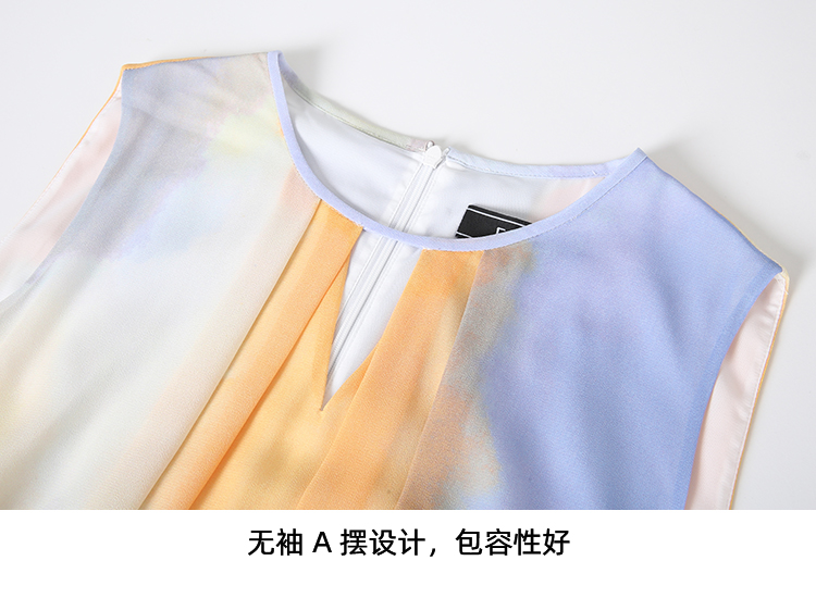 EITIE爱特爱夏季新款时尚个性扎染撞色印花无袖连衣裙女7407162