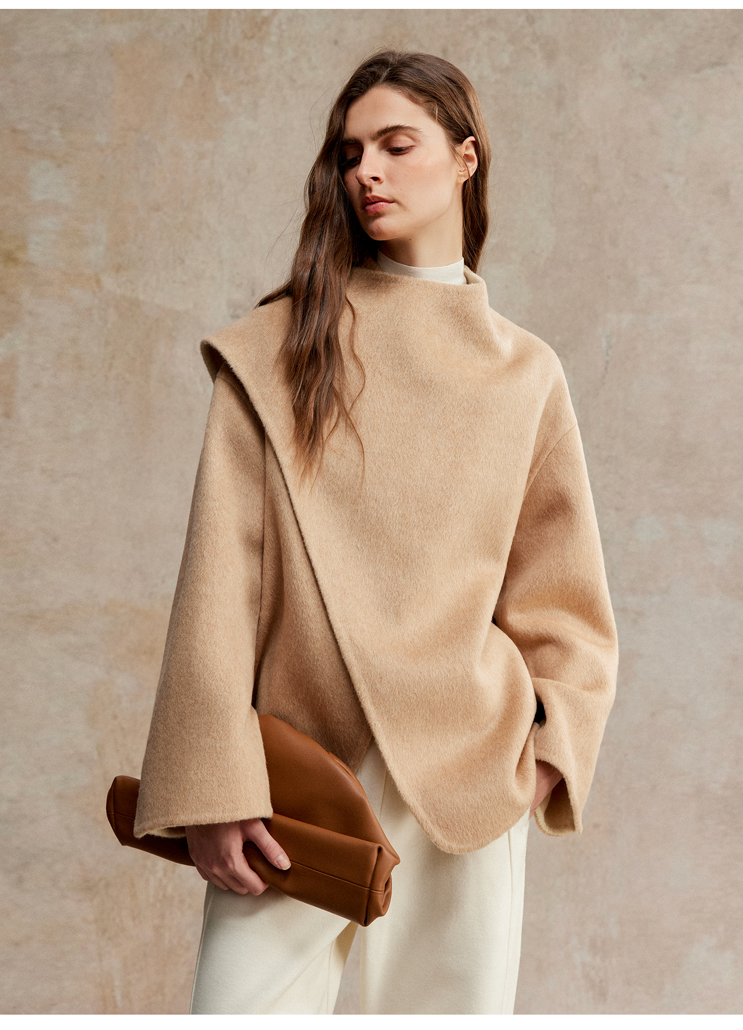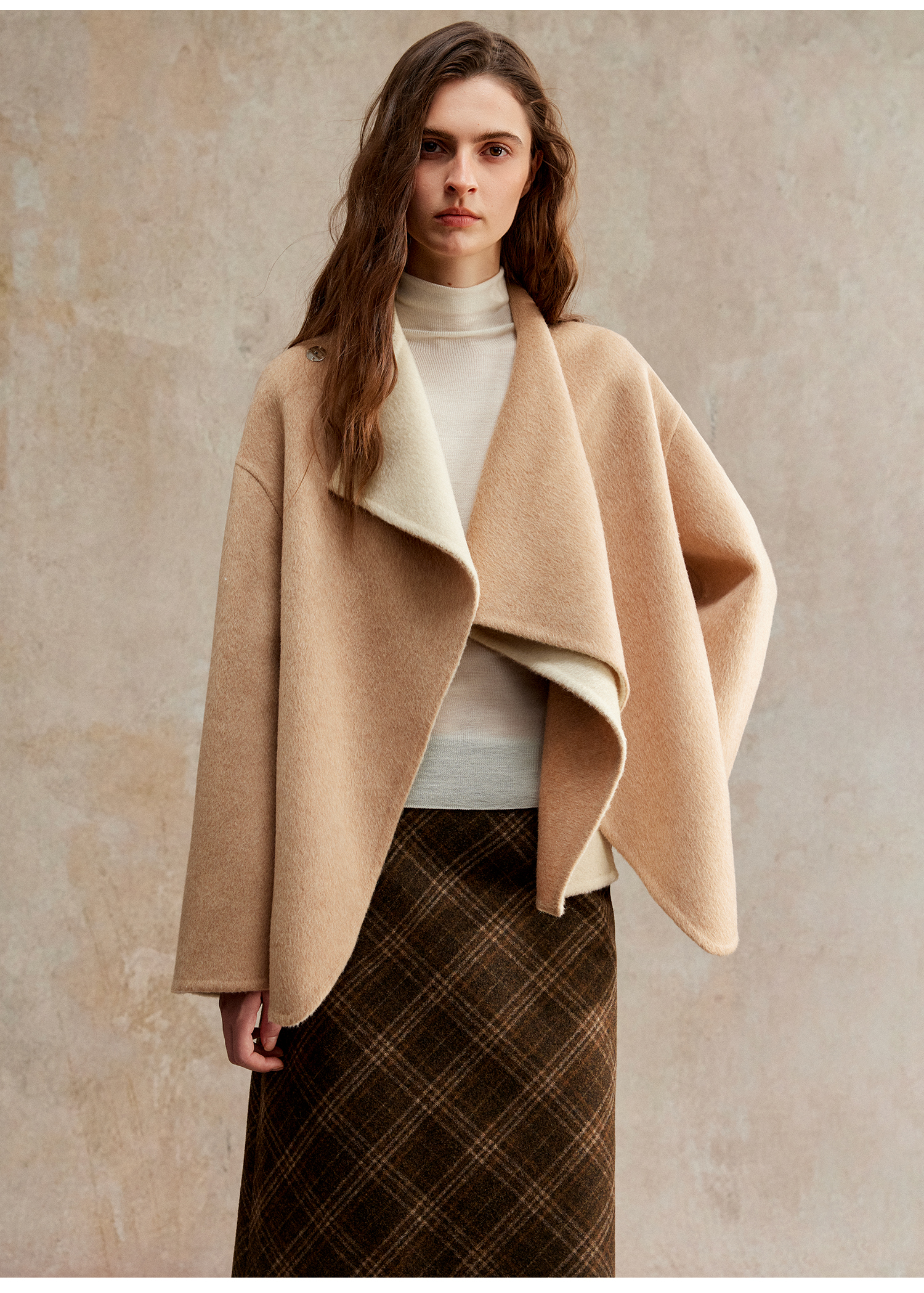 羊毛不规则围巾领双色双面尼25新款廓形短大衣WT2504028