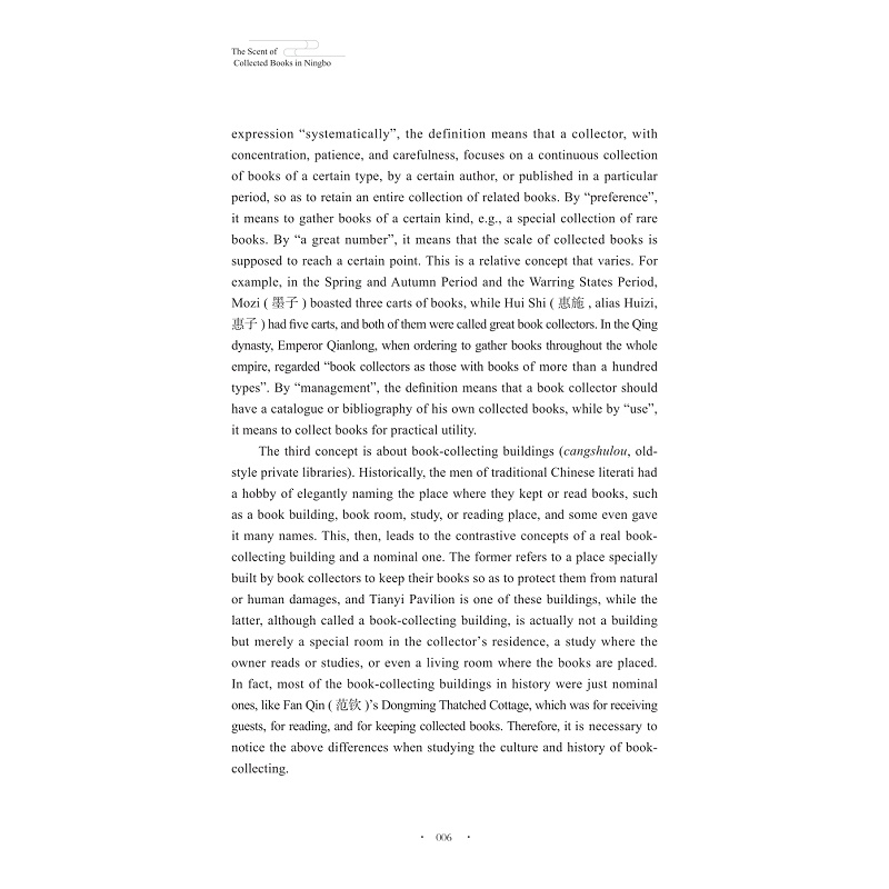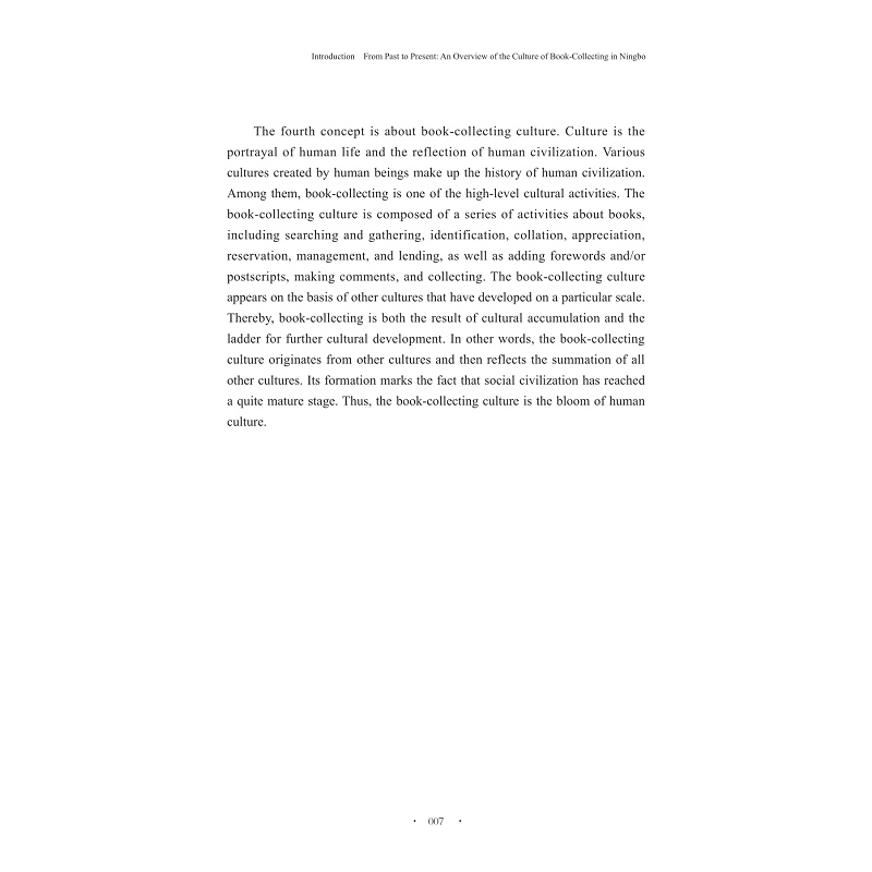 本书从藏书的种种概念谈起,综述中记述了藏书的历史、宁波的藏书史、宁波藏书人收藏精神、宁波的藏书楼、宁波的藏书名家等。用四十七篇文章讲述了宁波四十七个藏书人的故事,以诗歌开头,故事生动具体,让读者对藏书人的故事有了一个直观的认识。本书语言精练,故事丰富,用藏书故事把书藏古今的宁波藏书文化做了一个更生动的阐释。本书以宁波藏书文化为切口,视角独特,特色鲜明,资料翔实,彰显其在专门领域全面而深入的扎实写作风格。 本书的英文翻译,对于宁波文化和浙江文化的外宣,具有重要意义。