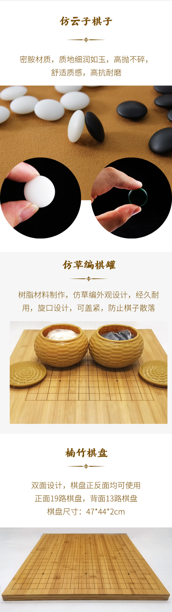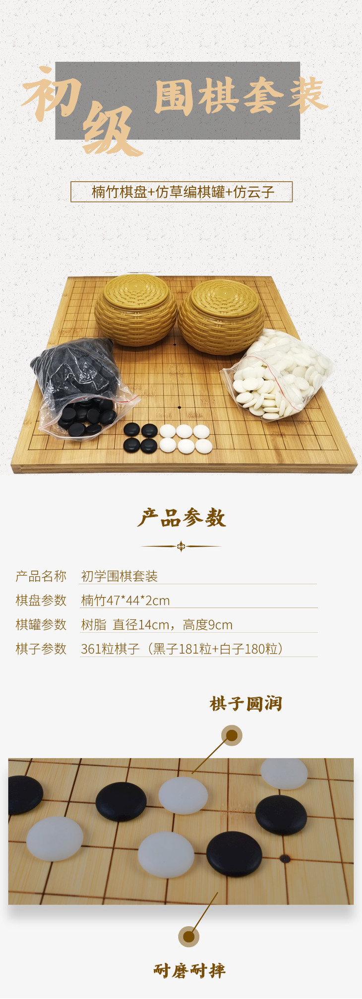 围棋棋具 | 初级围棋套装 竹盘+仿草编棋罐+仿云子