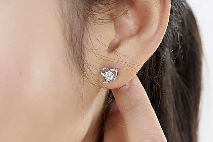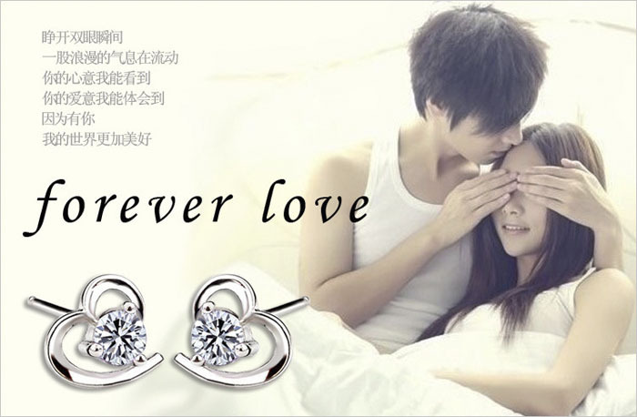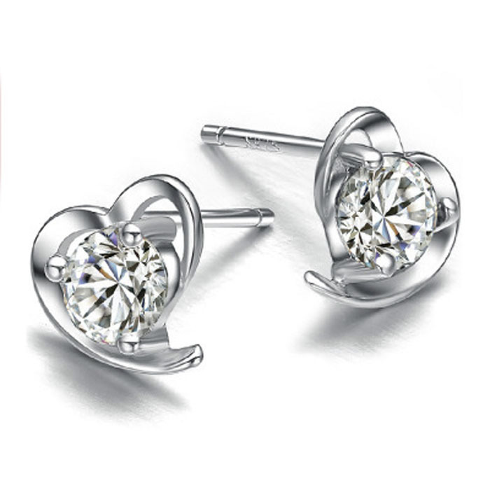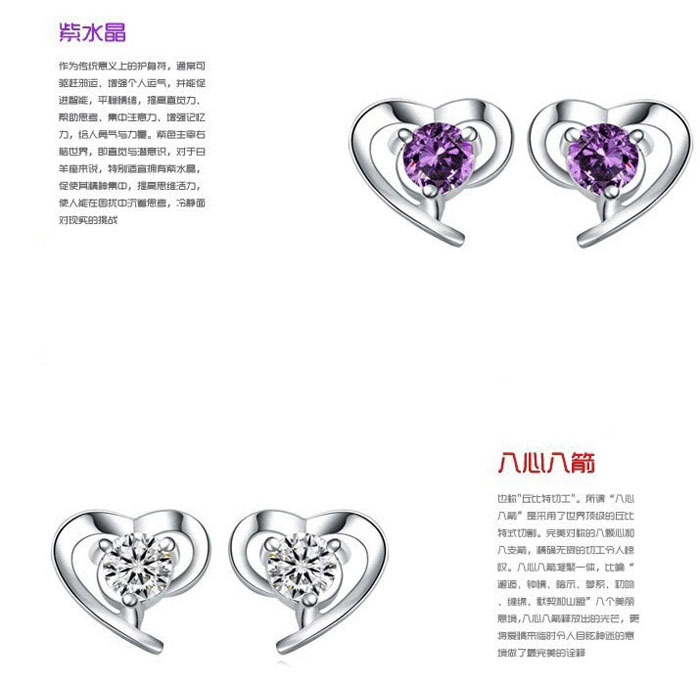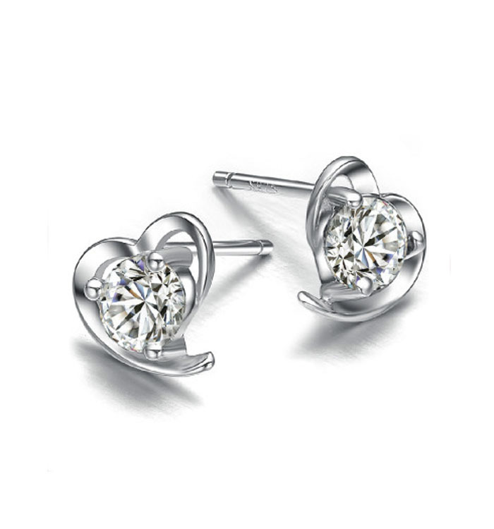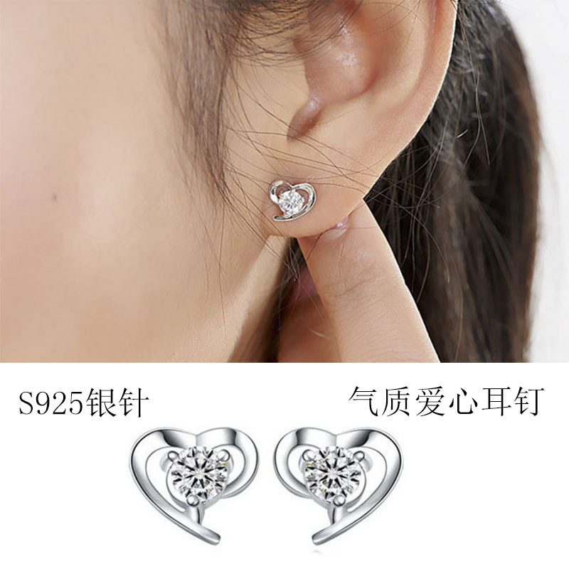 JU-ERDZHN034521情女爱心耳钉耳环女 镀银时尚清新柔美心形耳钉 韩版甜美饰品