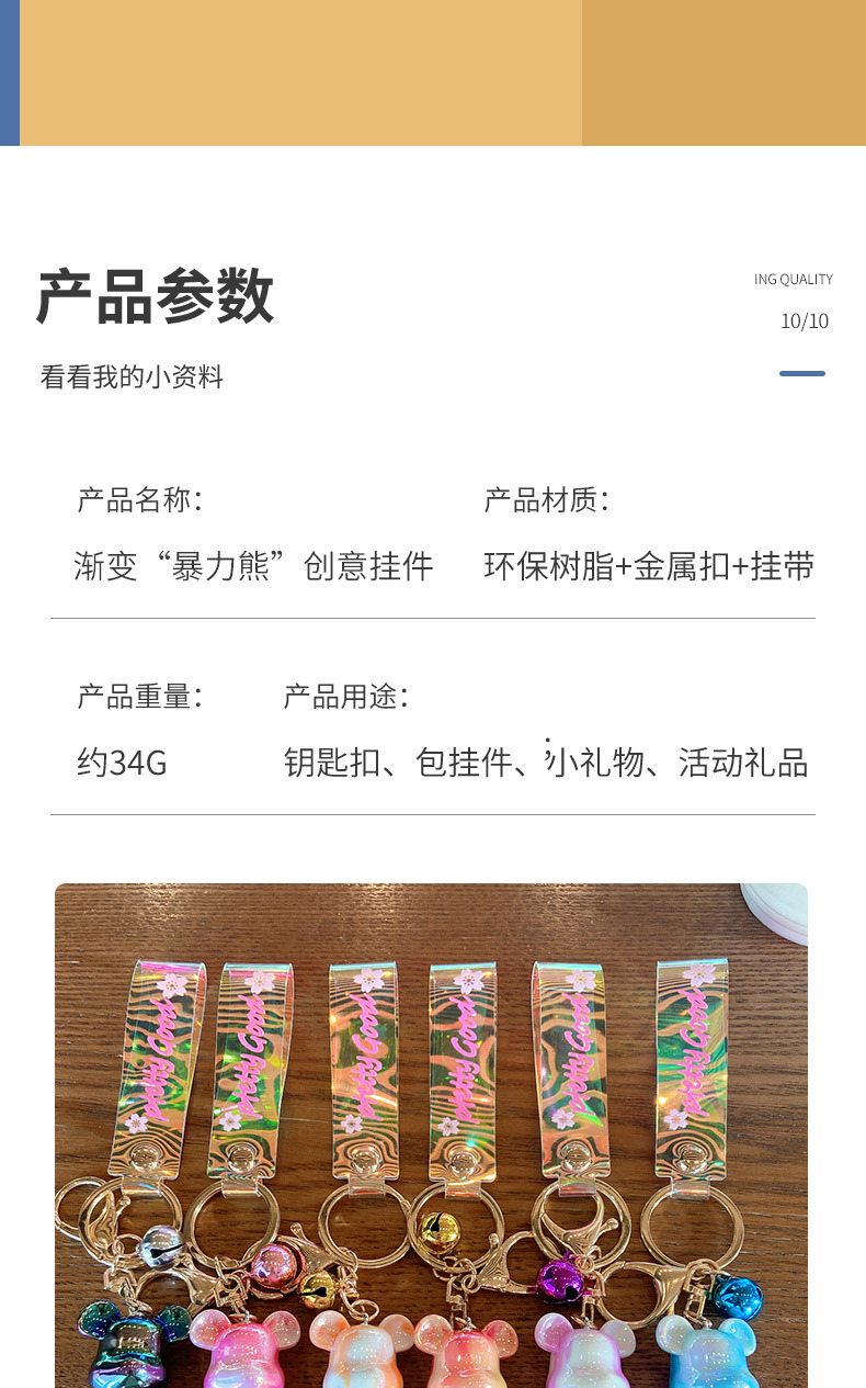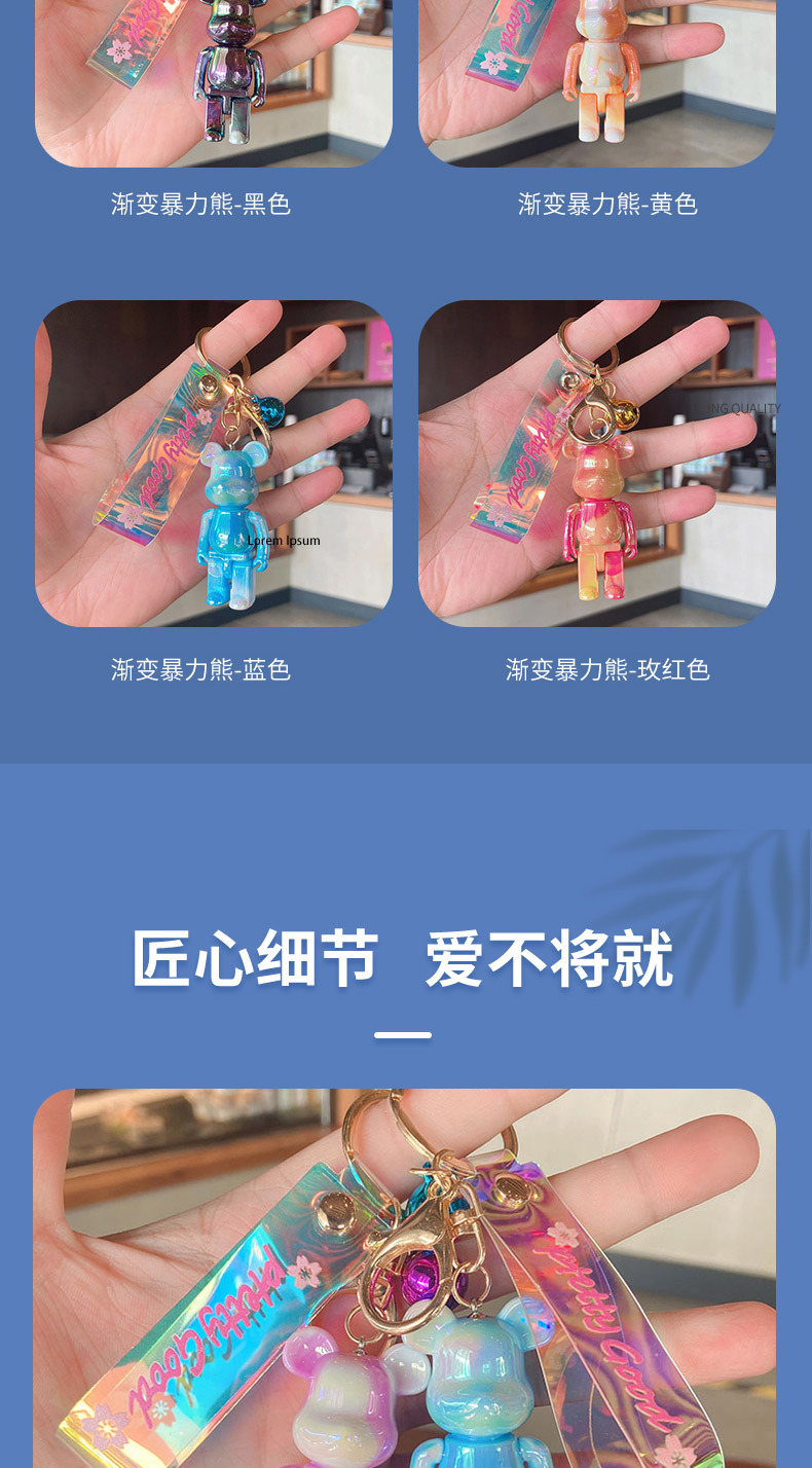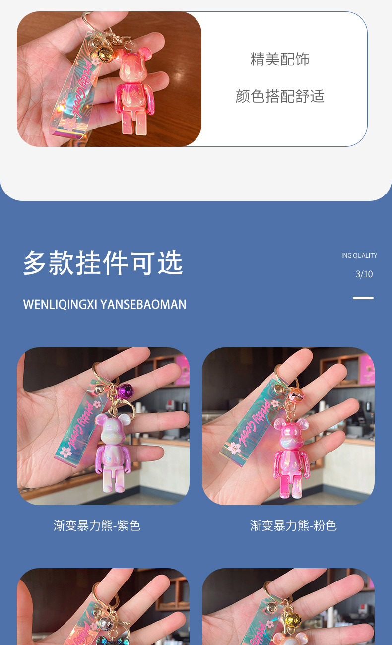 【渐变“暴力熊“,创意可爱挂件,钥匙扣来啦!】卡通暴力熊 可爱钥匙链 情侣小礼品 公仔书包挂件 包包挂饰钥匙扣,书包挂坠挂链硅胶新款,个性十足 随心搭配-QQ