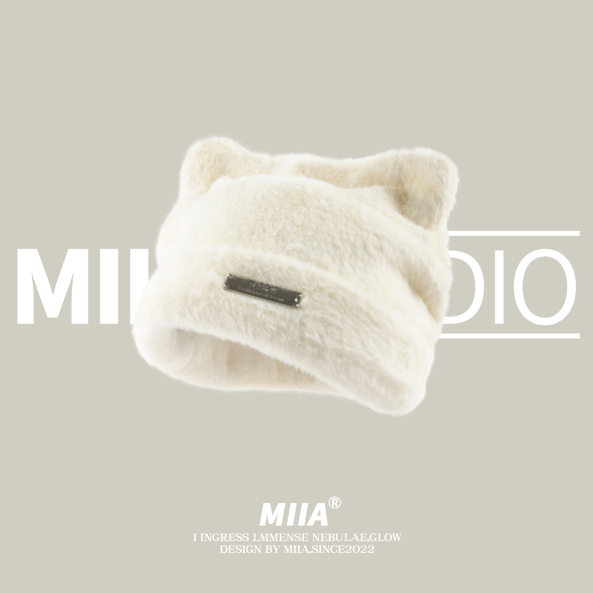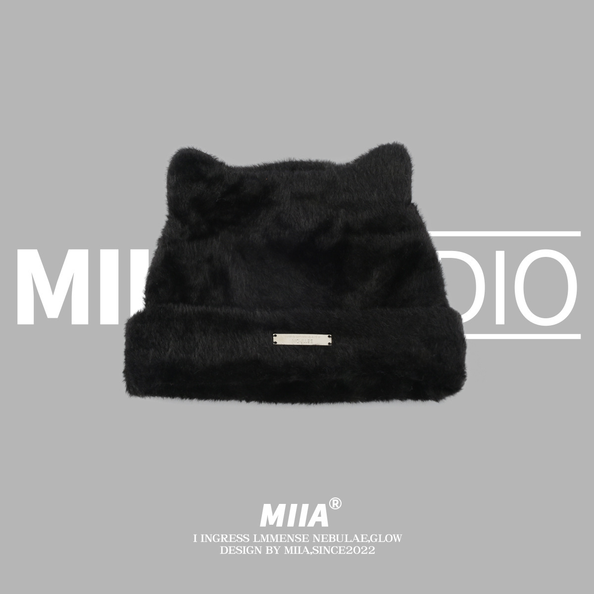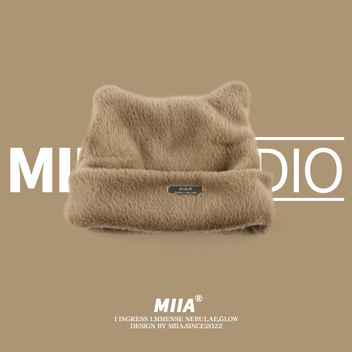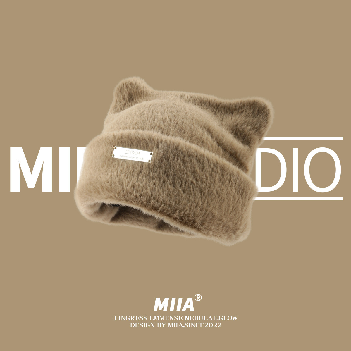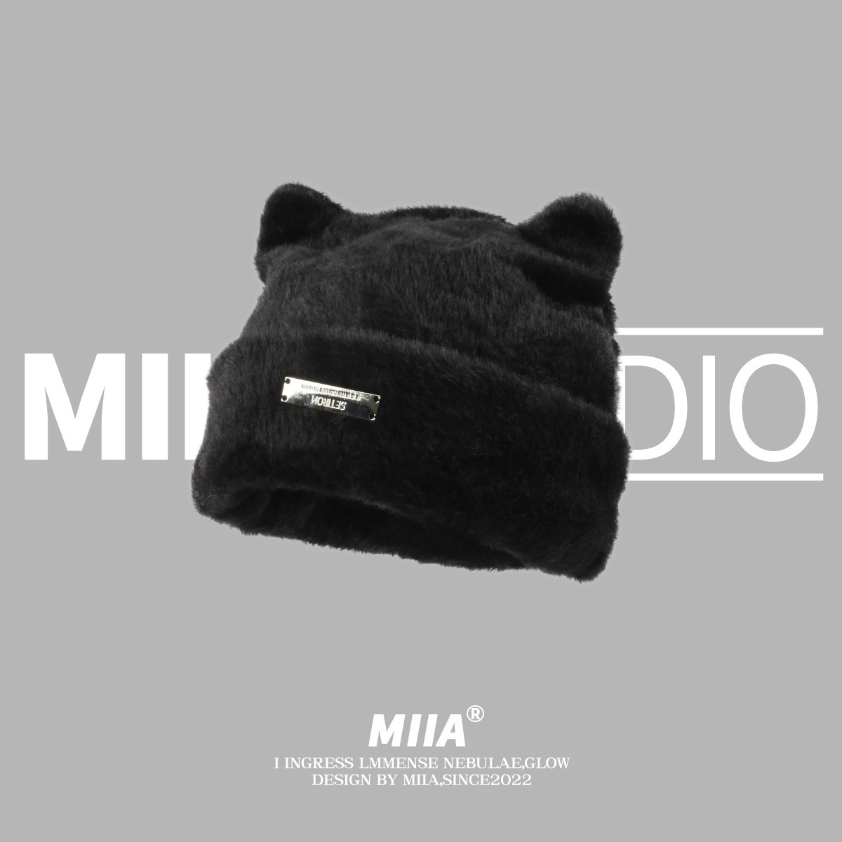 双12抢先购!【魅力绽放!时尚新款】韩国新款可爱猫耳朵仿貂毛针织帽,冷帽毛线帽子女时尚百搭包头帽潮,多色可选 手感舒适 柔软包裹,温暖呵护