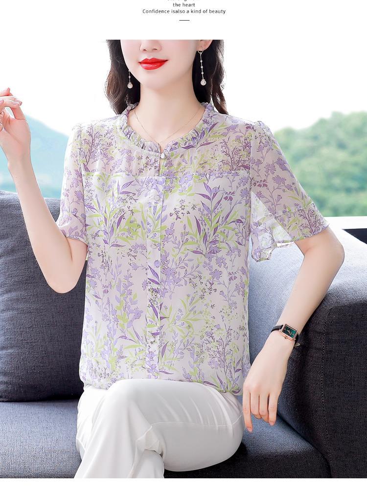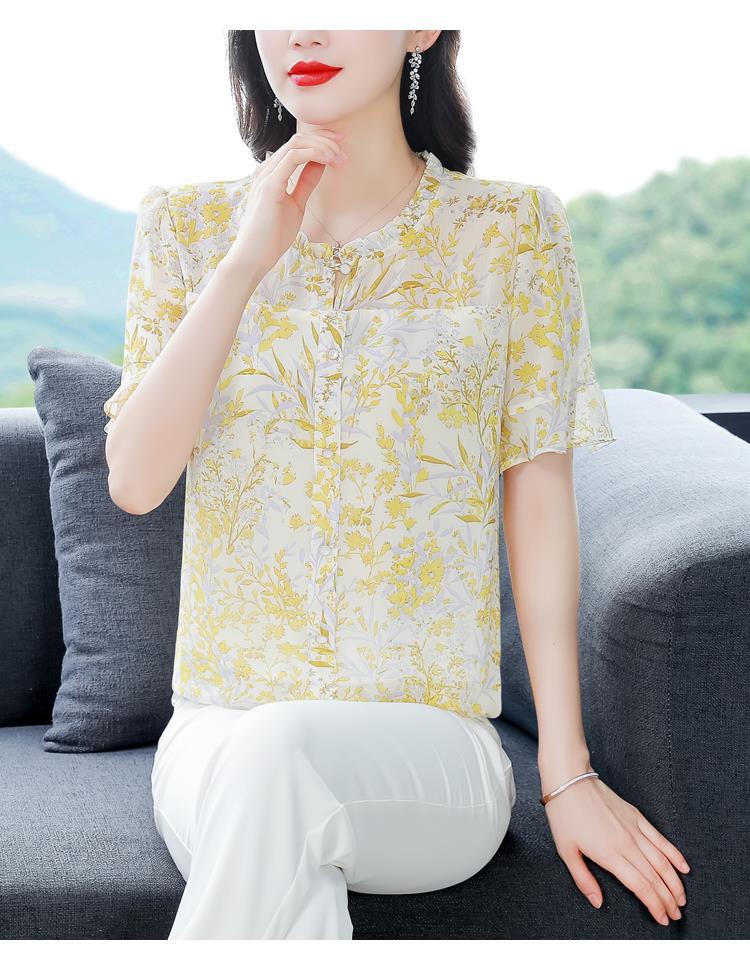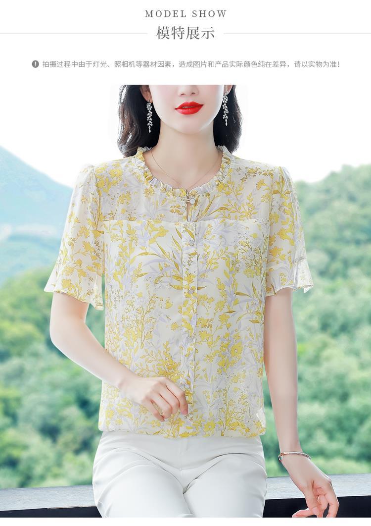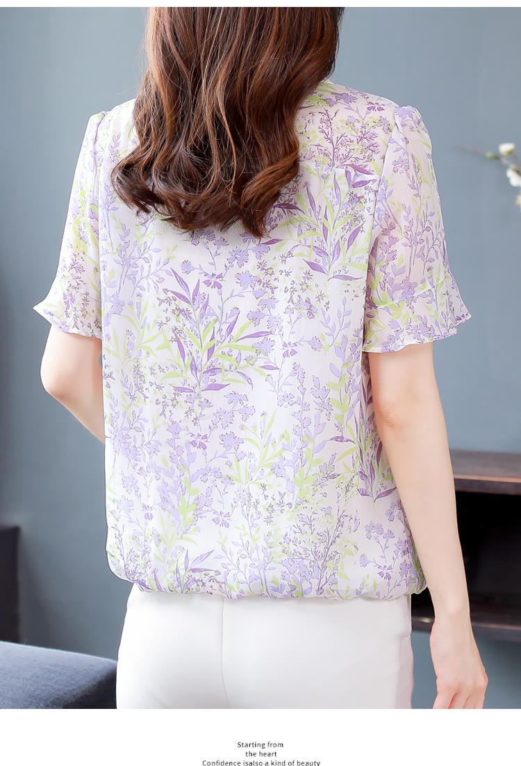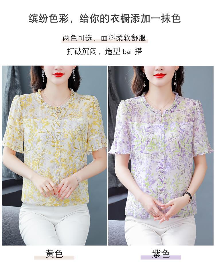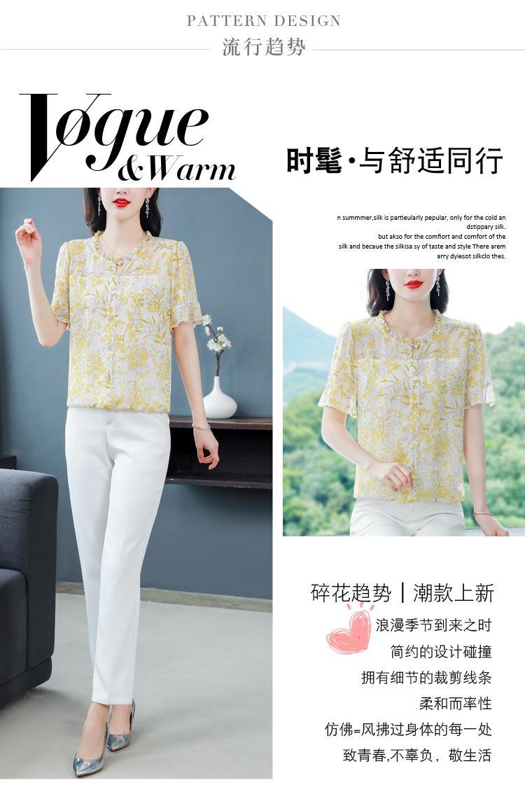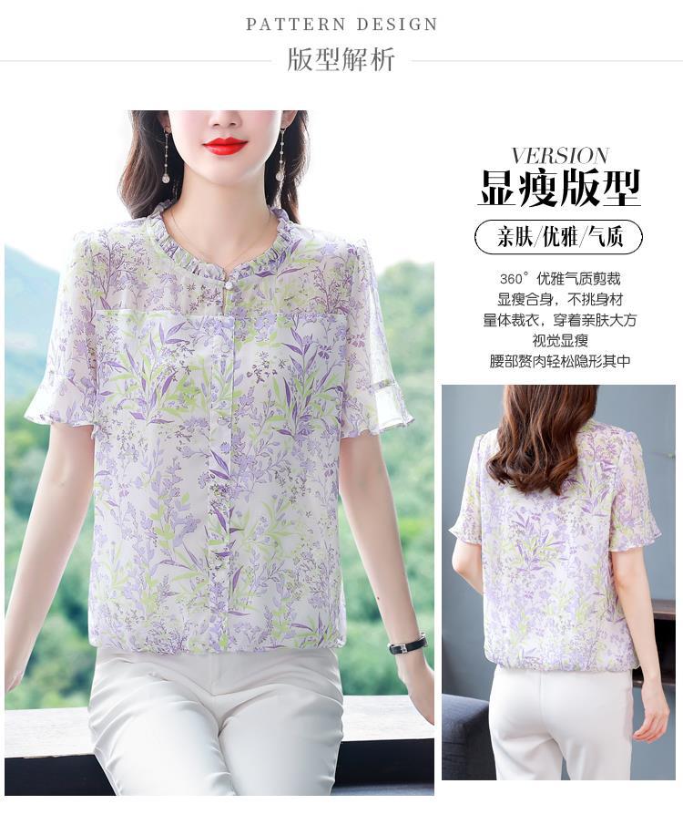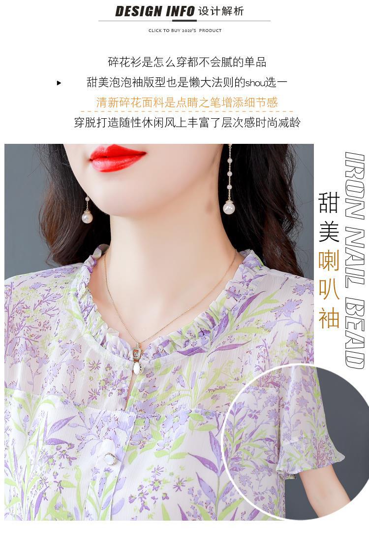 KQLC22N2903 2023夏季新款短袖上衣女士时尚印花衫百搭套头小衫宽松妈妈装