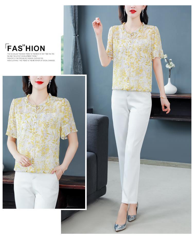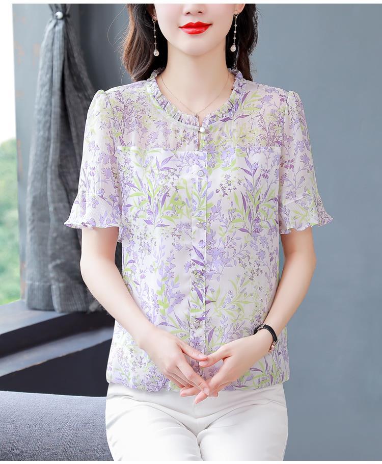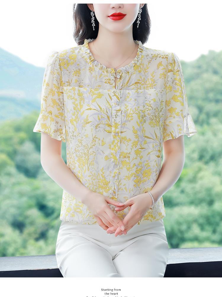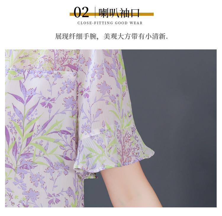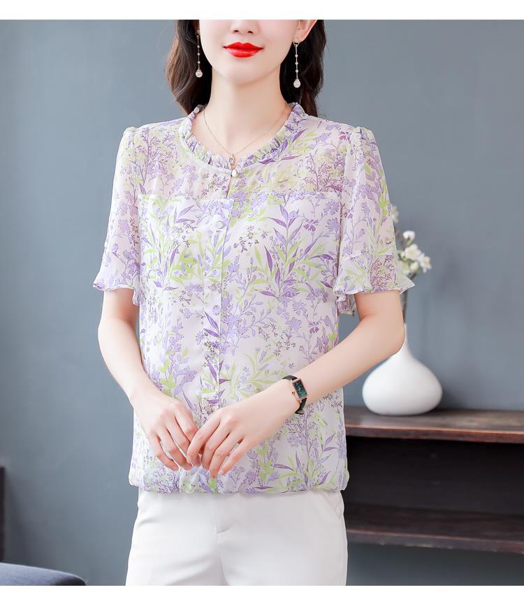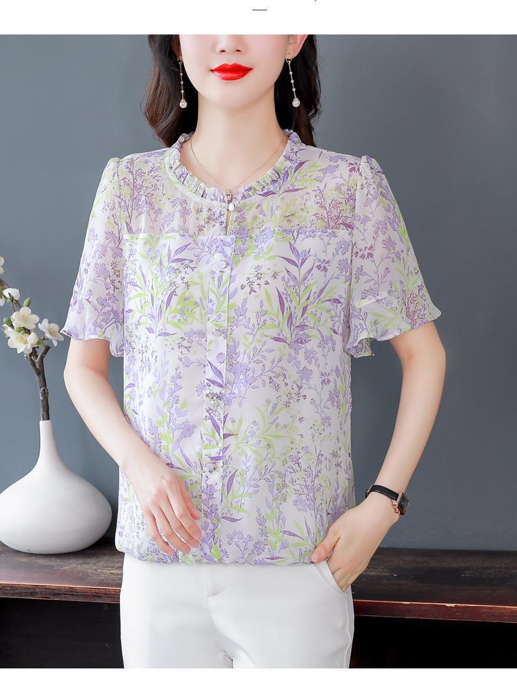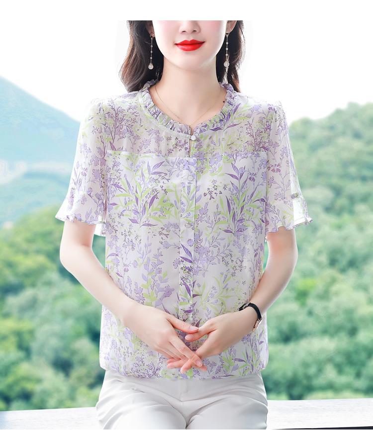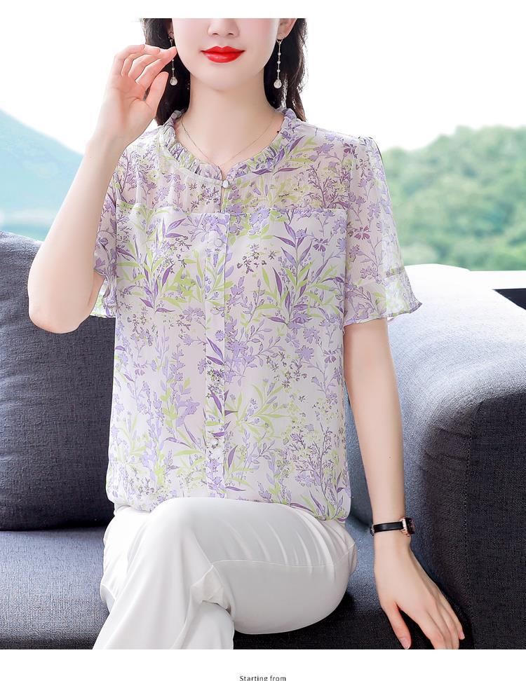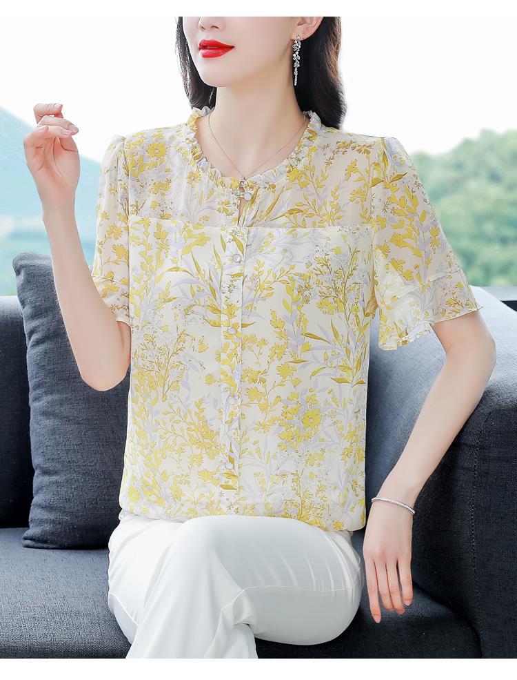 KQLC22N2903 2023夏季新款短袖上衣女士时尚印花衫百搭套头小衫宽松妈妈装