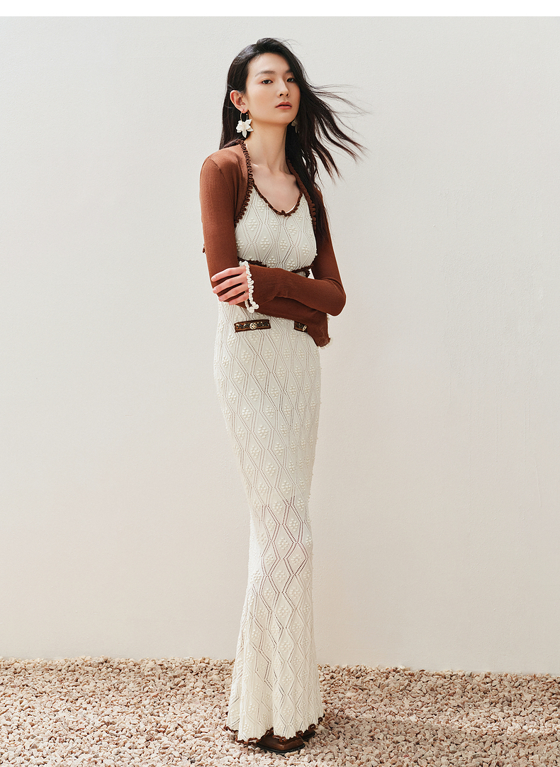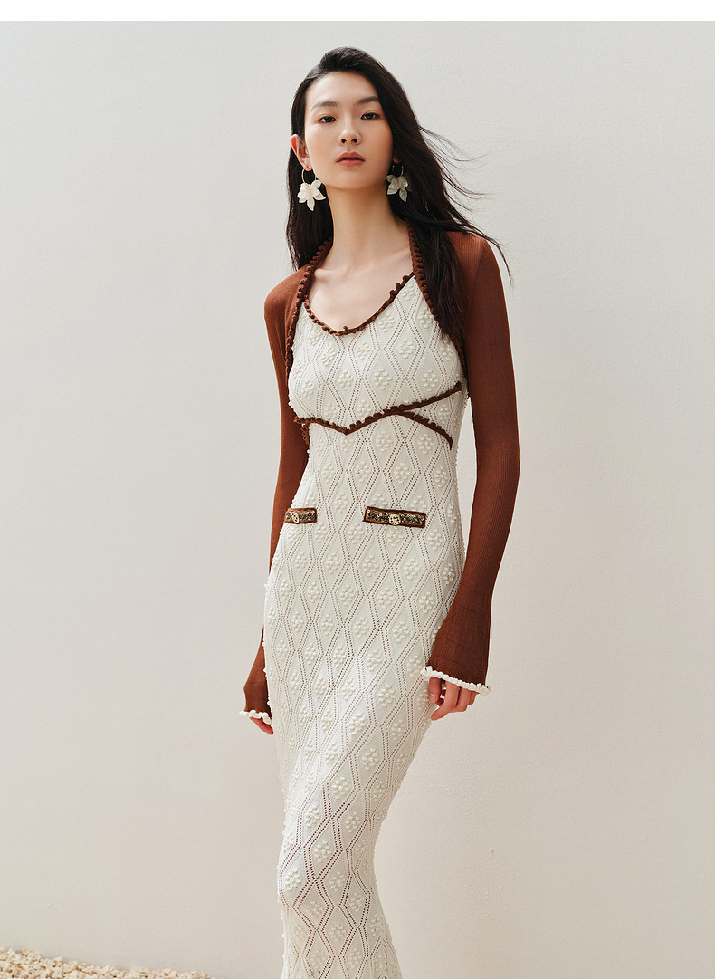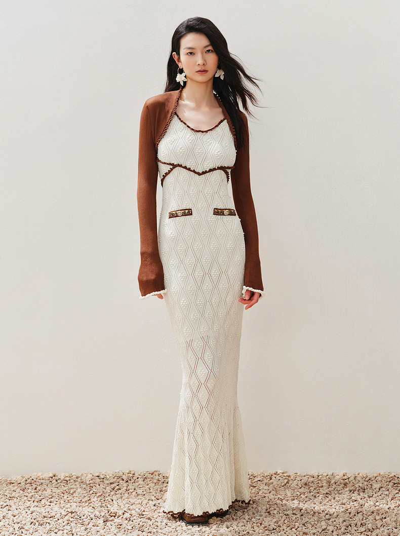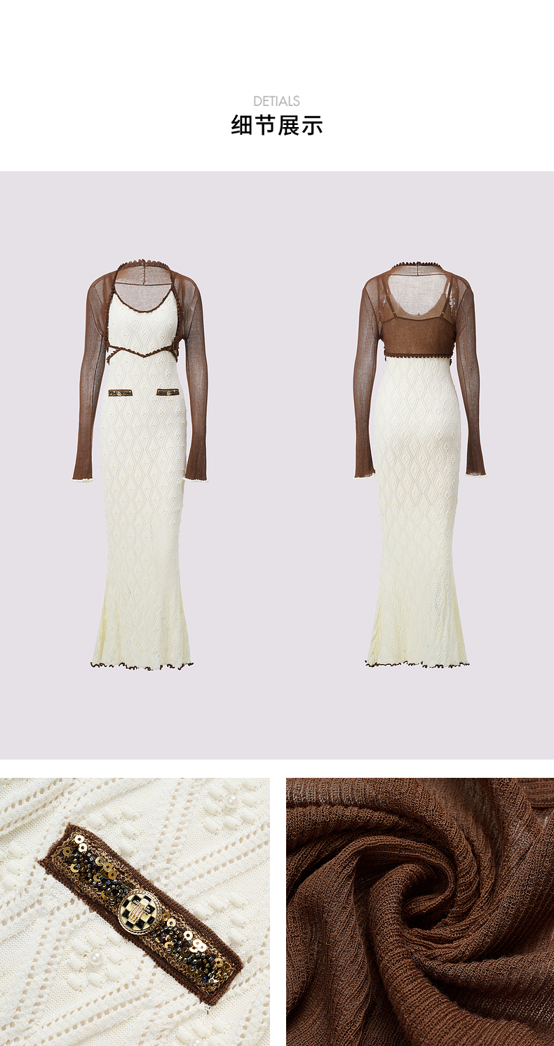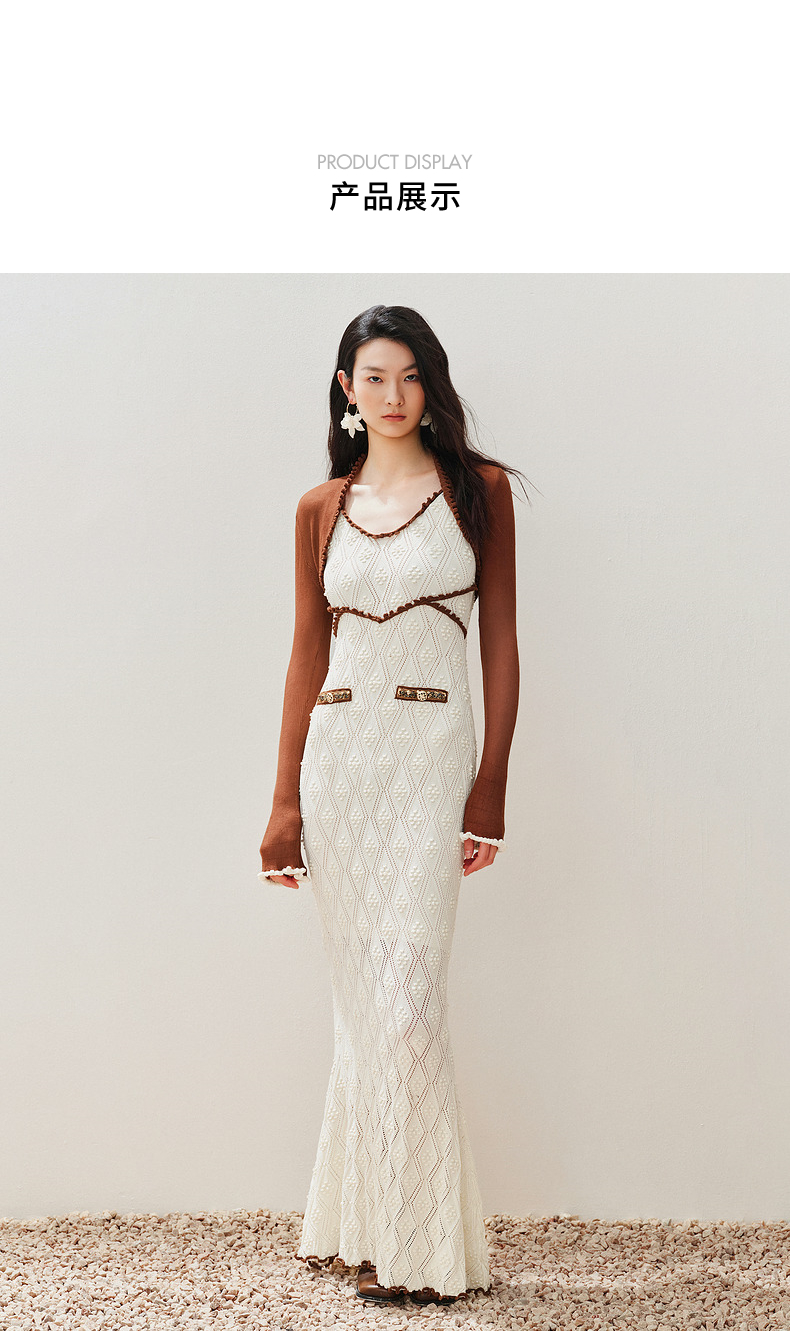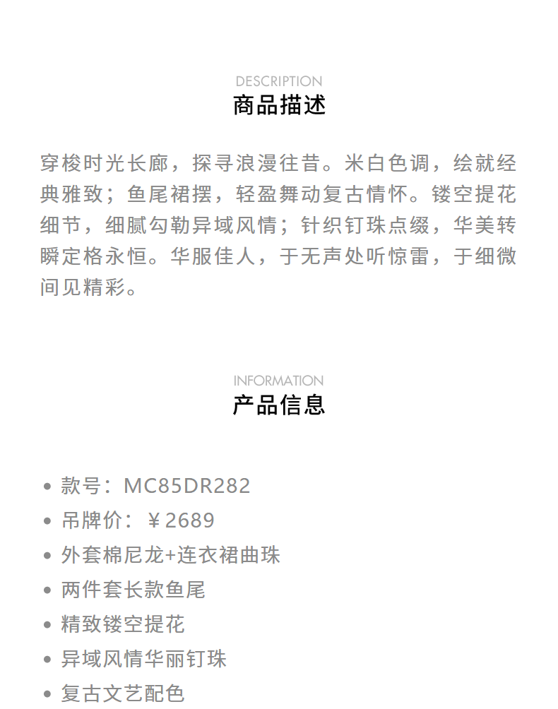 【异域·摩洛哥-商场同款】MAXRIENY复古浪漫鱼尾钉珠连衣裙长款(货号:MC85DR282)