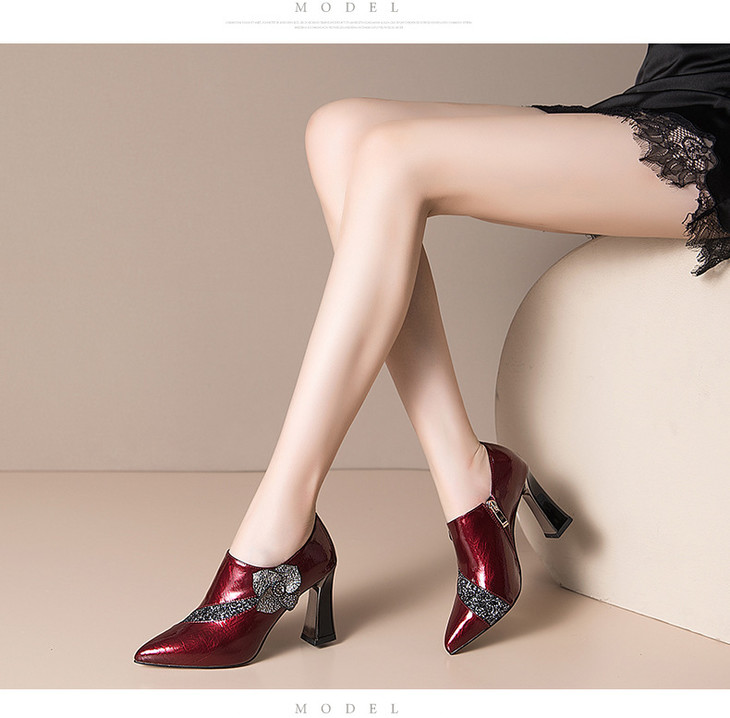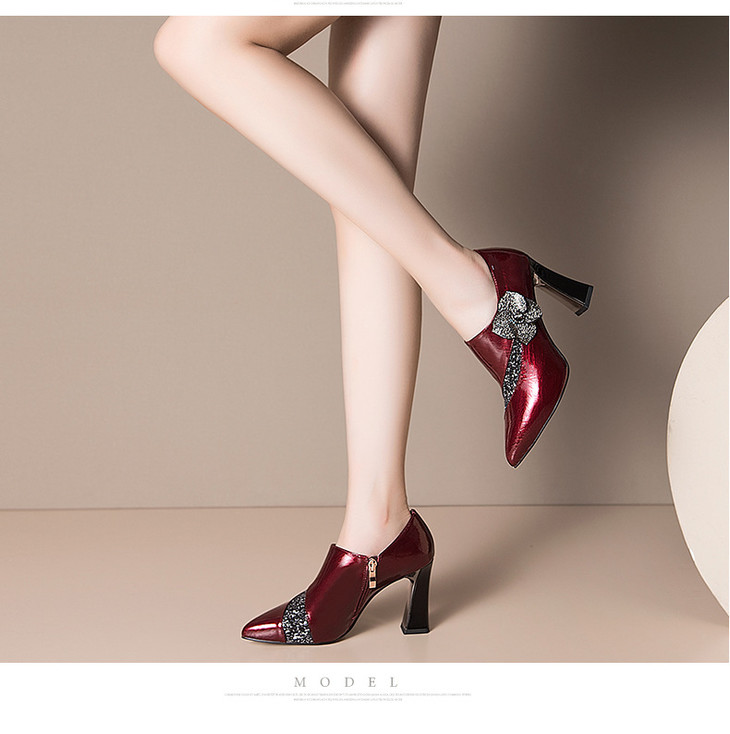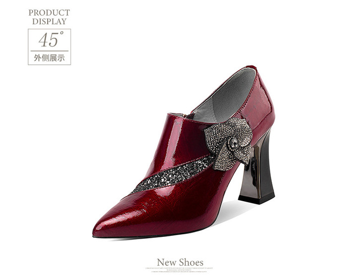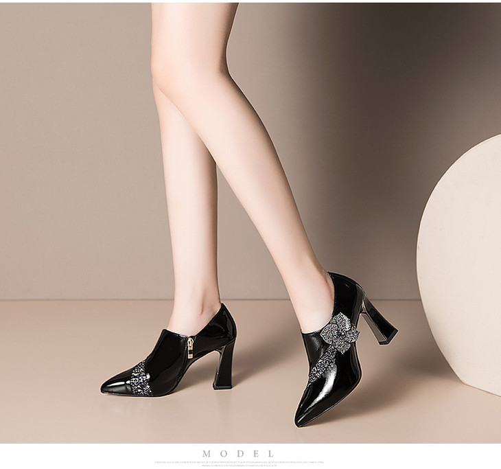 KBY-H2241秋季新品粗跟尖头深口单鞋时尚水钻舒适高跟鞋