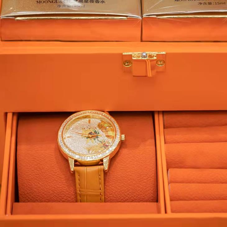 礼盒中的手表,则将梵高的向日葵画作3D打印技术复刻在手表里。
