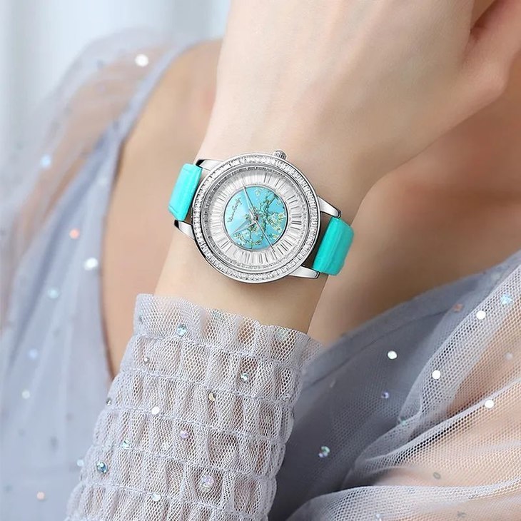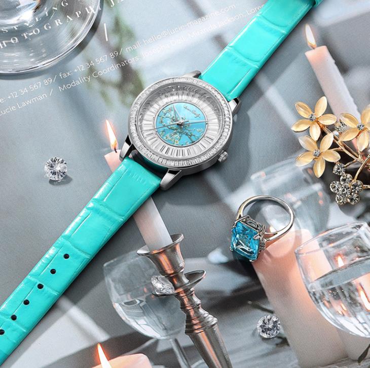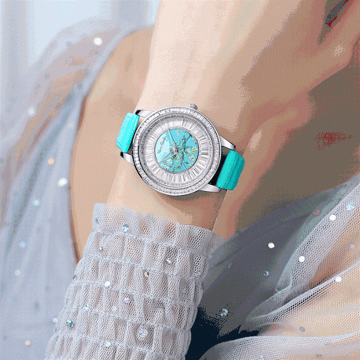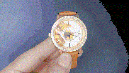 表盘外圈则是奥地利水晶镶嵌围绕,表盘内则是类似小细钻,抬手就像星河璀璨的闪耀。