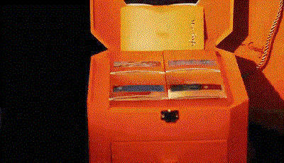 月光宝采用双层设计,拉开底下一层看到里面以梵高作品《向日葵》为灵感主题的手表。