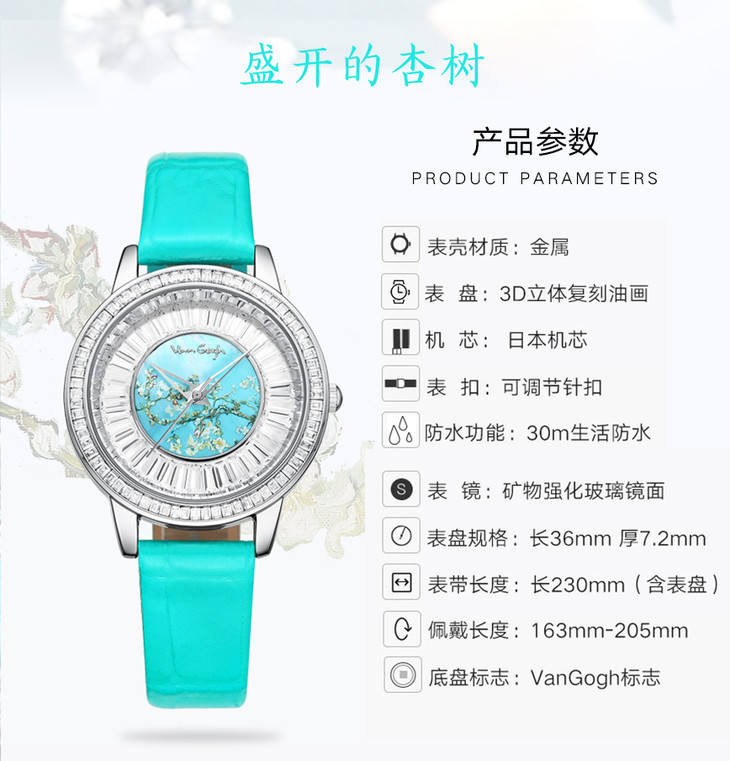 它是临近画家梵高诞辰160周年之际,荷兰梵高艺术博物馆授权,推出的 “Van Gogh”品牌油画腕表。