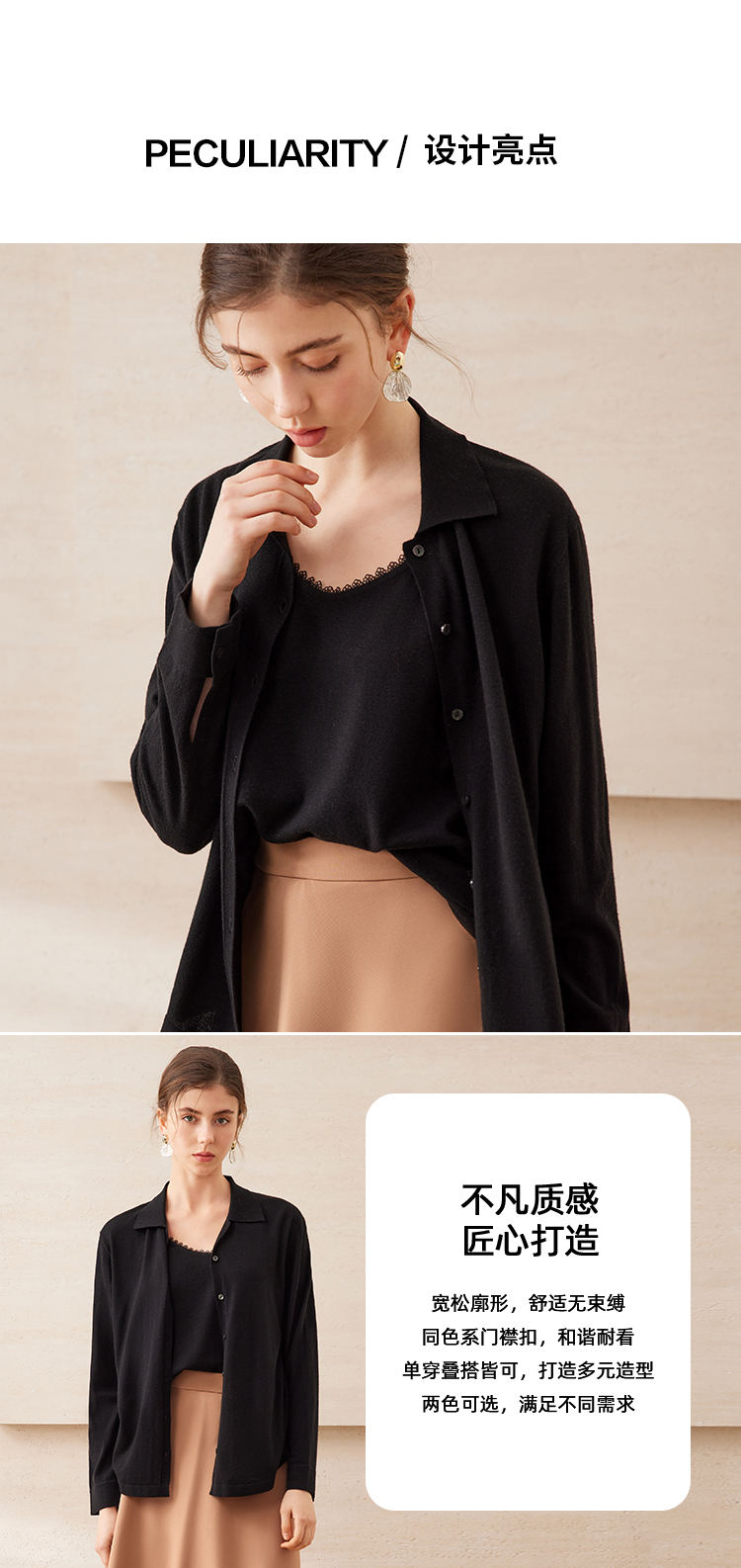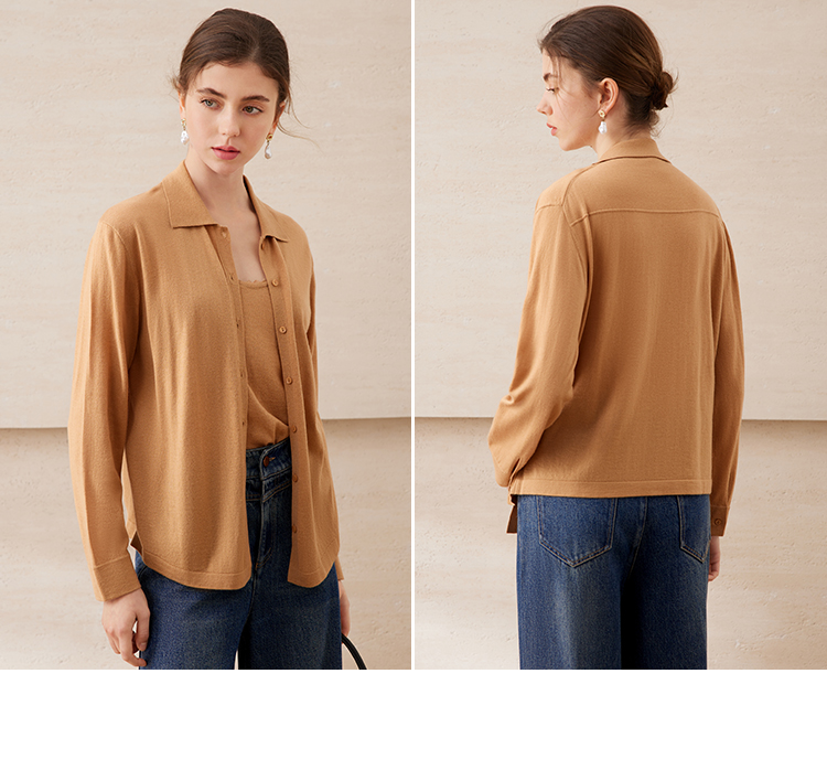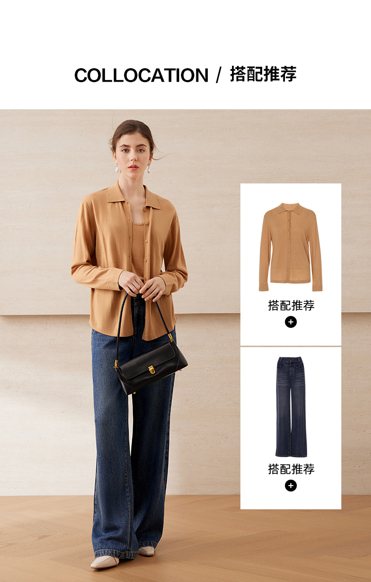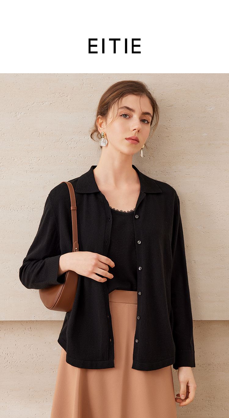 EITIE爱特爱衬衫式高级通勤显瘦松弛感假两件针织衫2025春夏新款A2501501