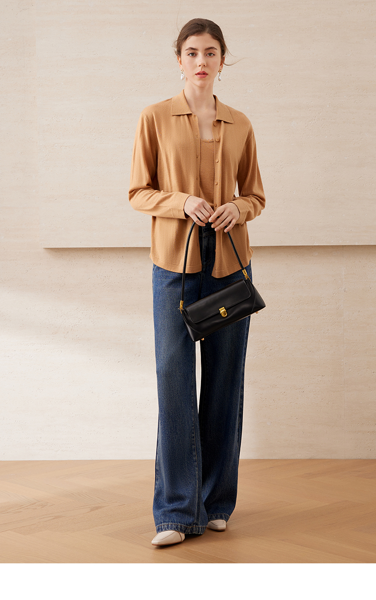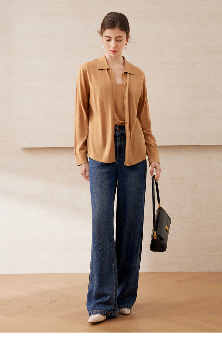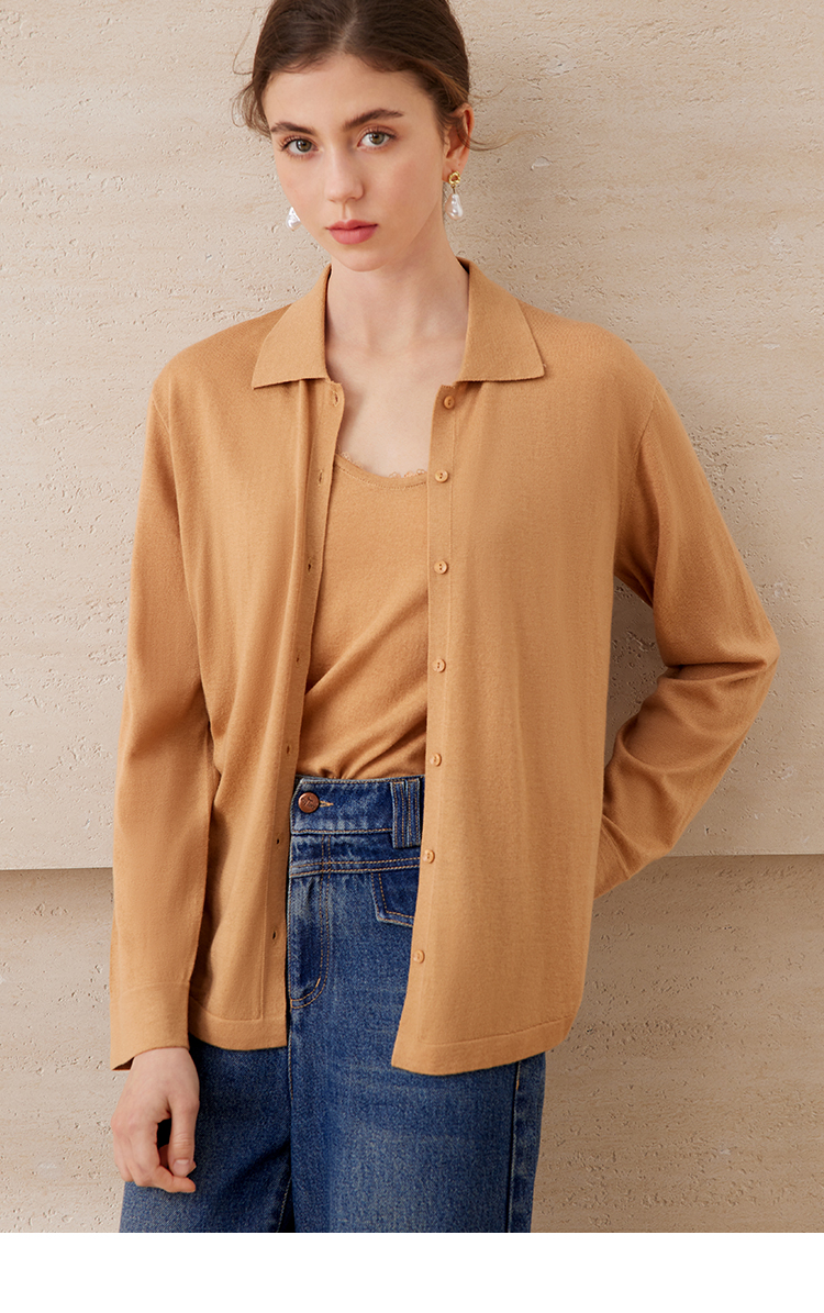 EITIE爱特爱衬衫式高级通勤显瘦松弛感假两件针织衫2025春夏新款A2501501